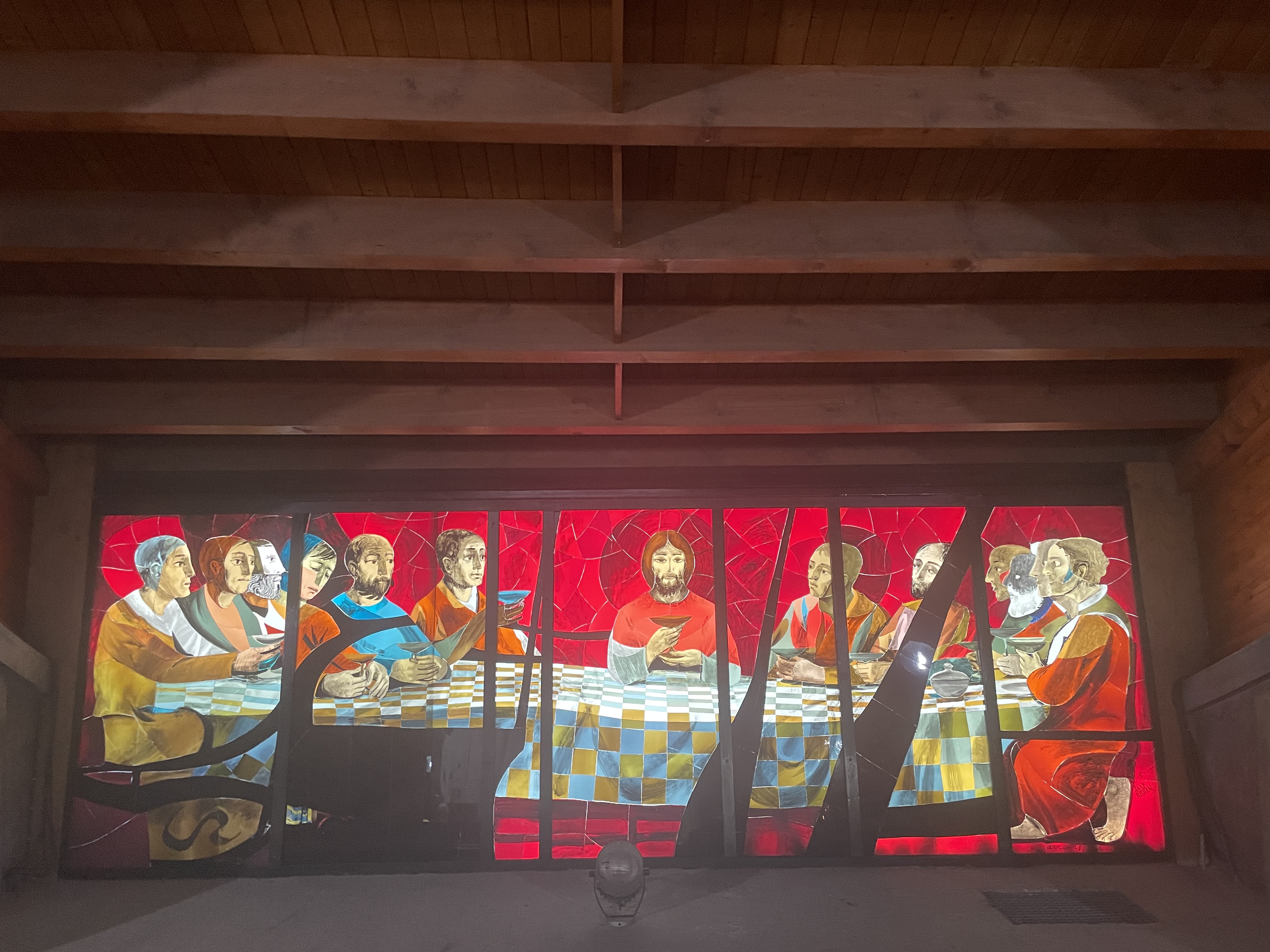 Architecture moderne et vitraux faisant presque le tour de l'église. Ah j'oubliais l'orgue, celui-ci est en forme de main. A ne pas manquer