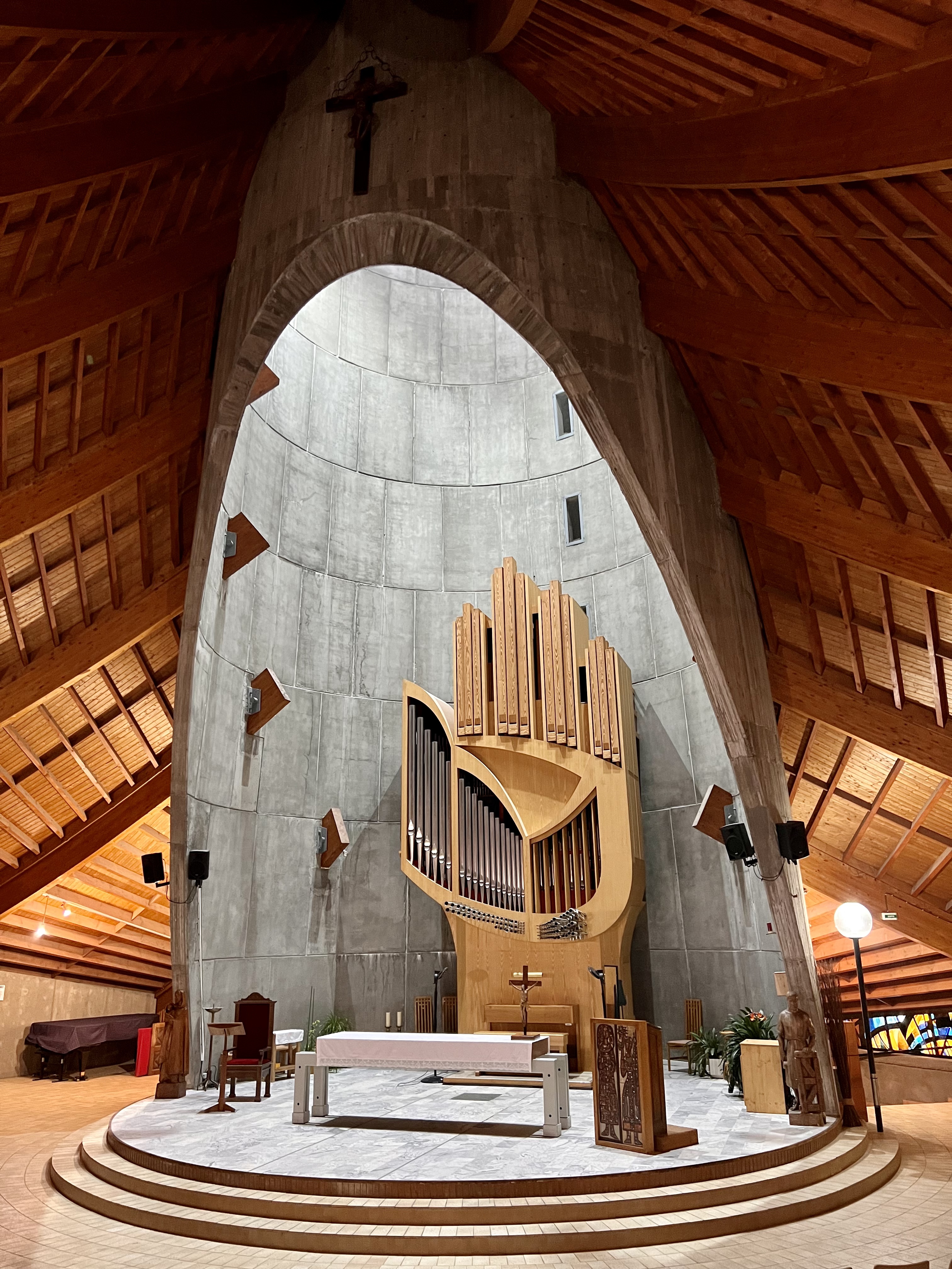 L'œuvre d'un architecte et d'un prêtre Hollandais. A visiter absolument. La bâtisse est moderne et incroyable. Les vitraux sont remarquables. L'orgue est unique.