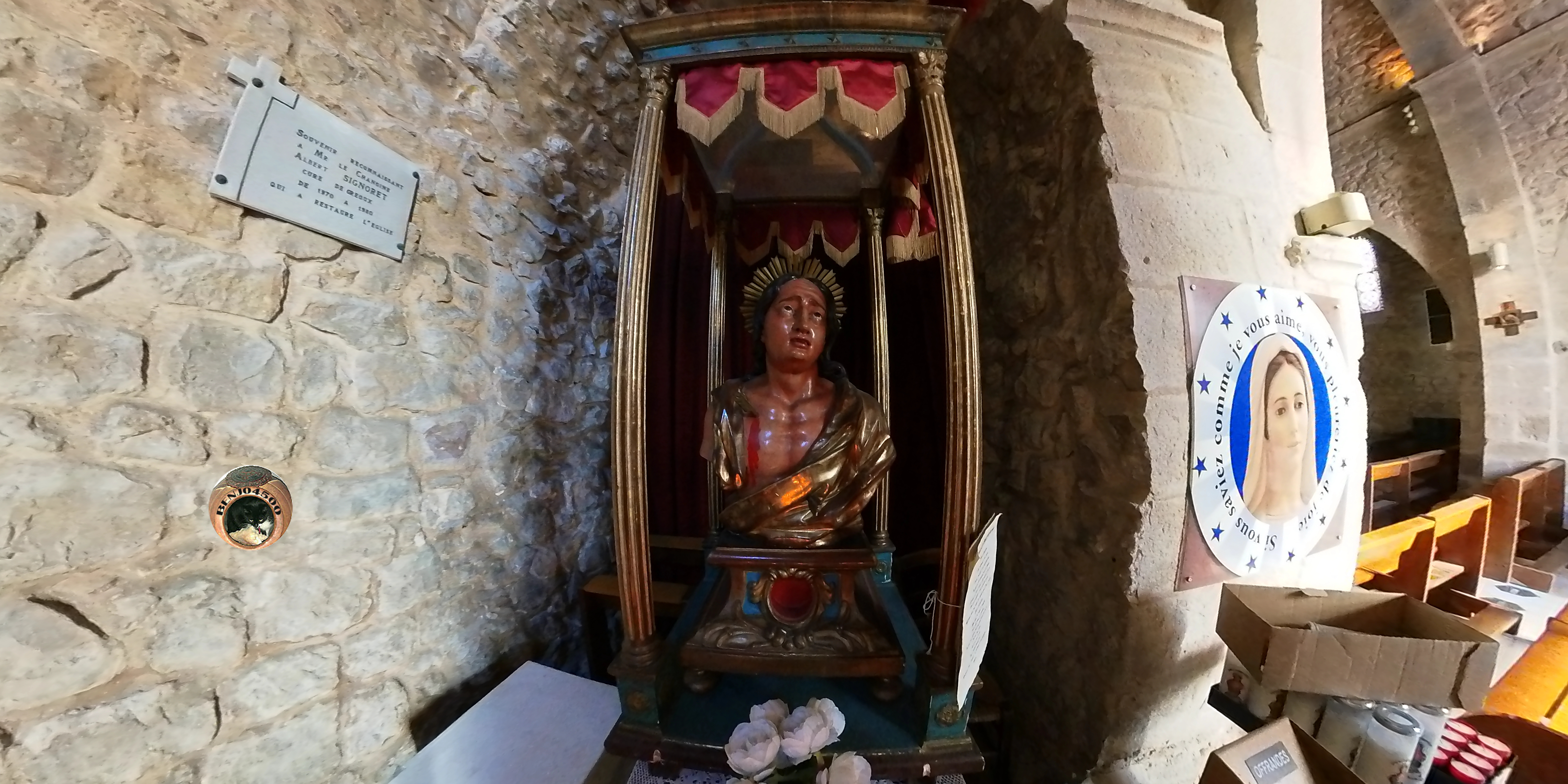 Très belle église à voir Avec un St Sébastien (martyr romain) Elle est accueillante et très fraiche en été
