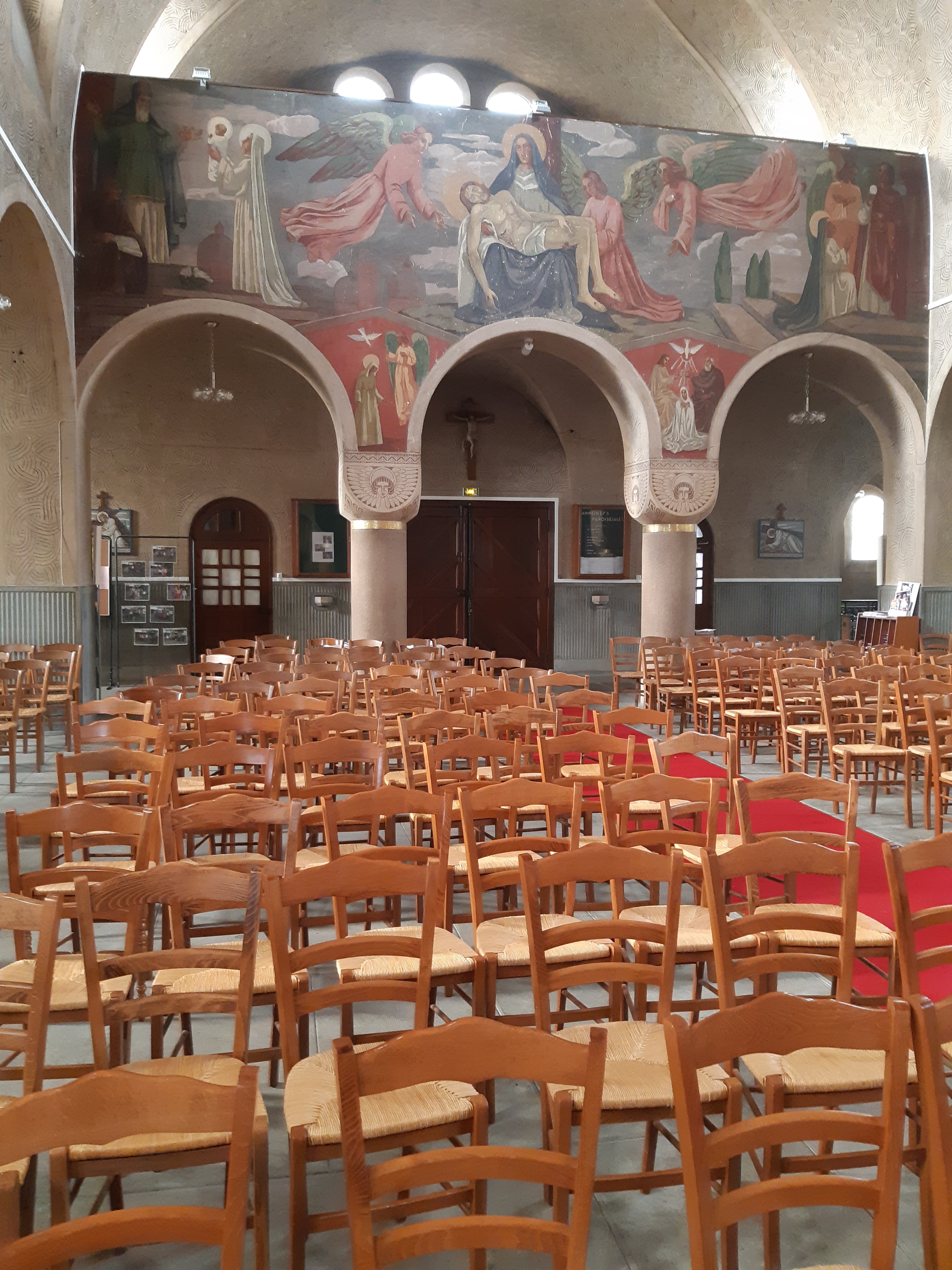 Belle église, moderne, avec des tableaux de la passion du Christ de bonne facture.... A visiter