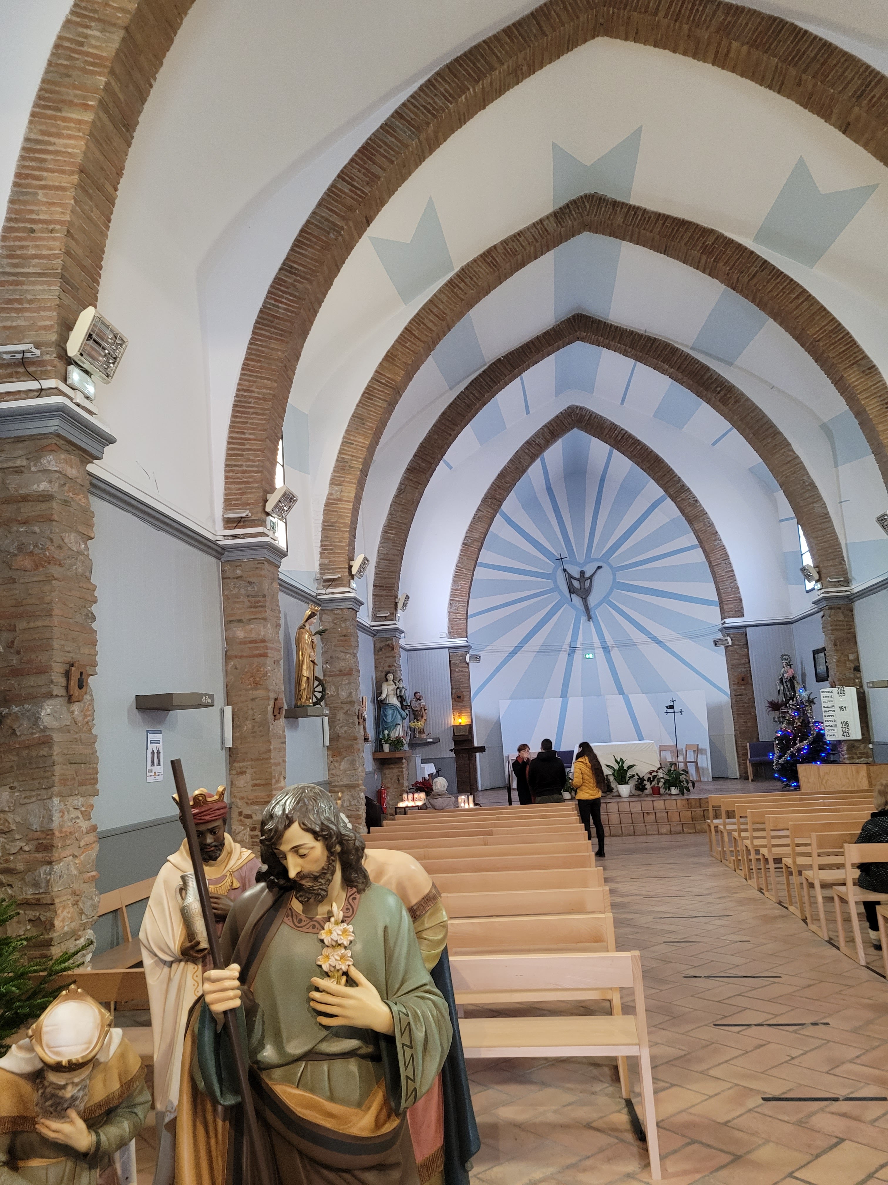Très belle église catalane surtout en ce moment de Noël avec sa crèche et ses illuminations .