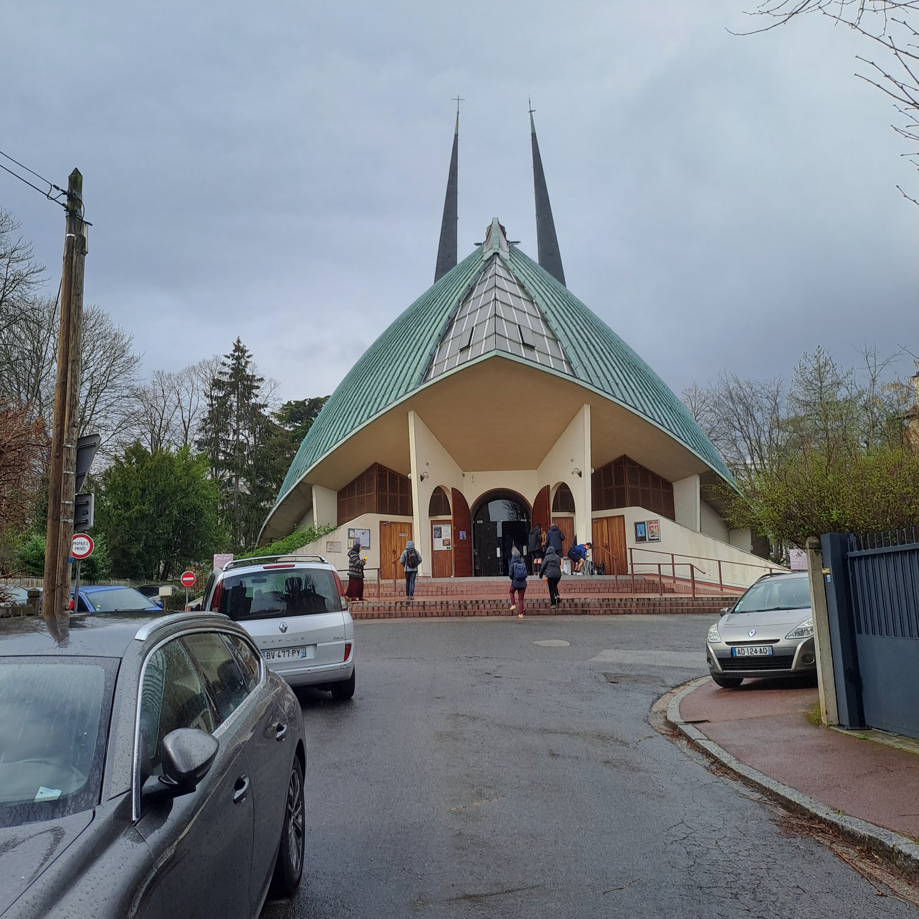 J'habitais Viroflay il y a 37 ans et je jouais de la musique ici. Je reviens juste pour rendre visite à des amis et j'ai dû m'arrêter et prendre des photos pour mes enfants. Cette église est toujours impressionnante et originale après toutes ces années !