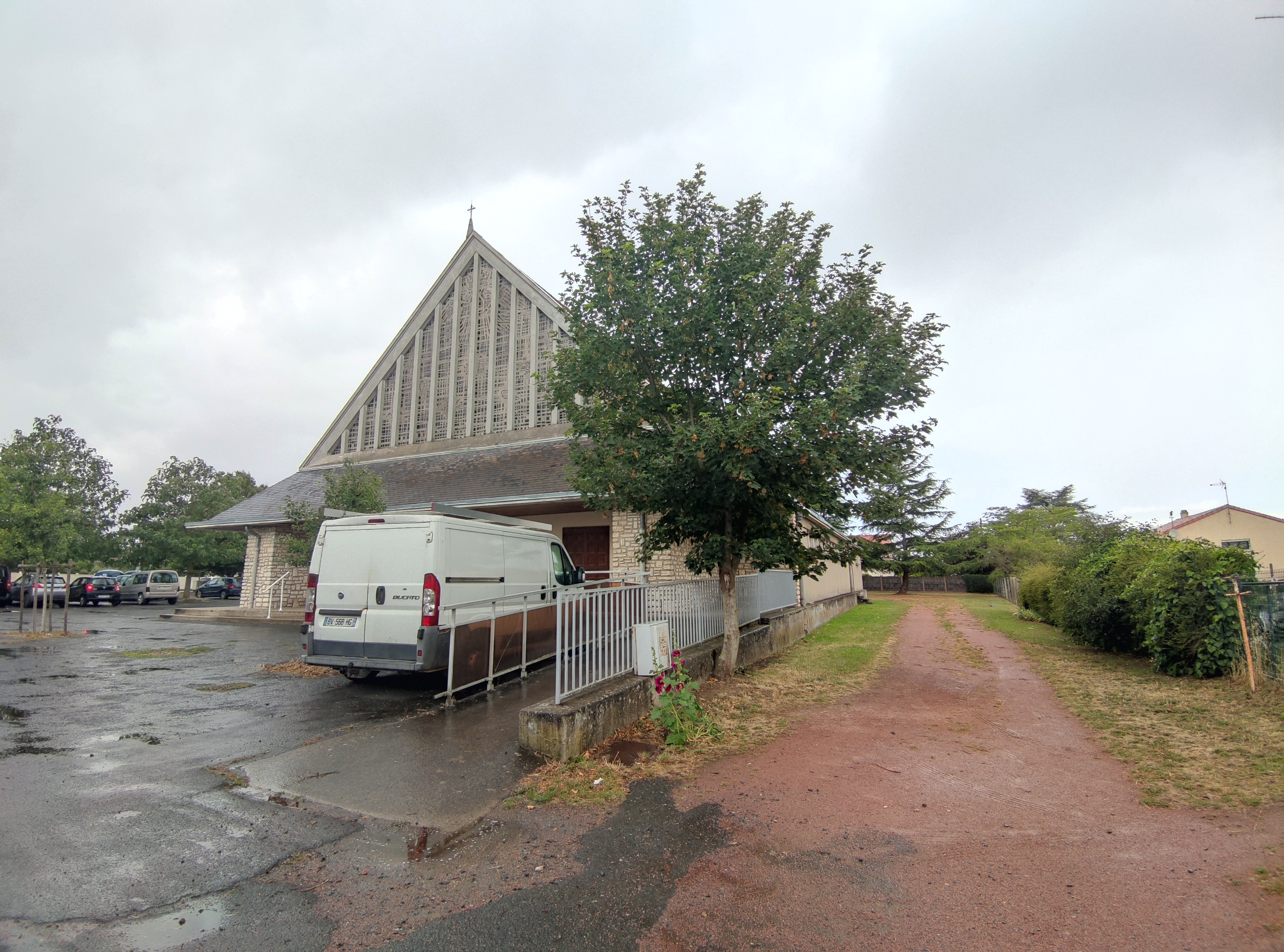 L'église était fermée, aucune indication quant aux possibilités de visites. Déçu car j'habite Poitiers, qui possède 2 églises contemporaines de l'église Notre-Dame du Cottage. L'église Saint-Cyprien, classée par les M.H. en patrimoine contemporain et l'église Saint-Paul dont les vitraux en dalles de verre sont aussi classés. L'emplacement l'église Notre-Dame ne la valorise pas, ce parking n'a aucun charme, les clôtures de l'école voisine idem. A peine plus de 60 ans et quelques désordres dans les parties bétonnées sont visibles.