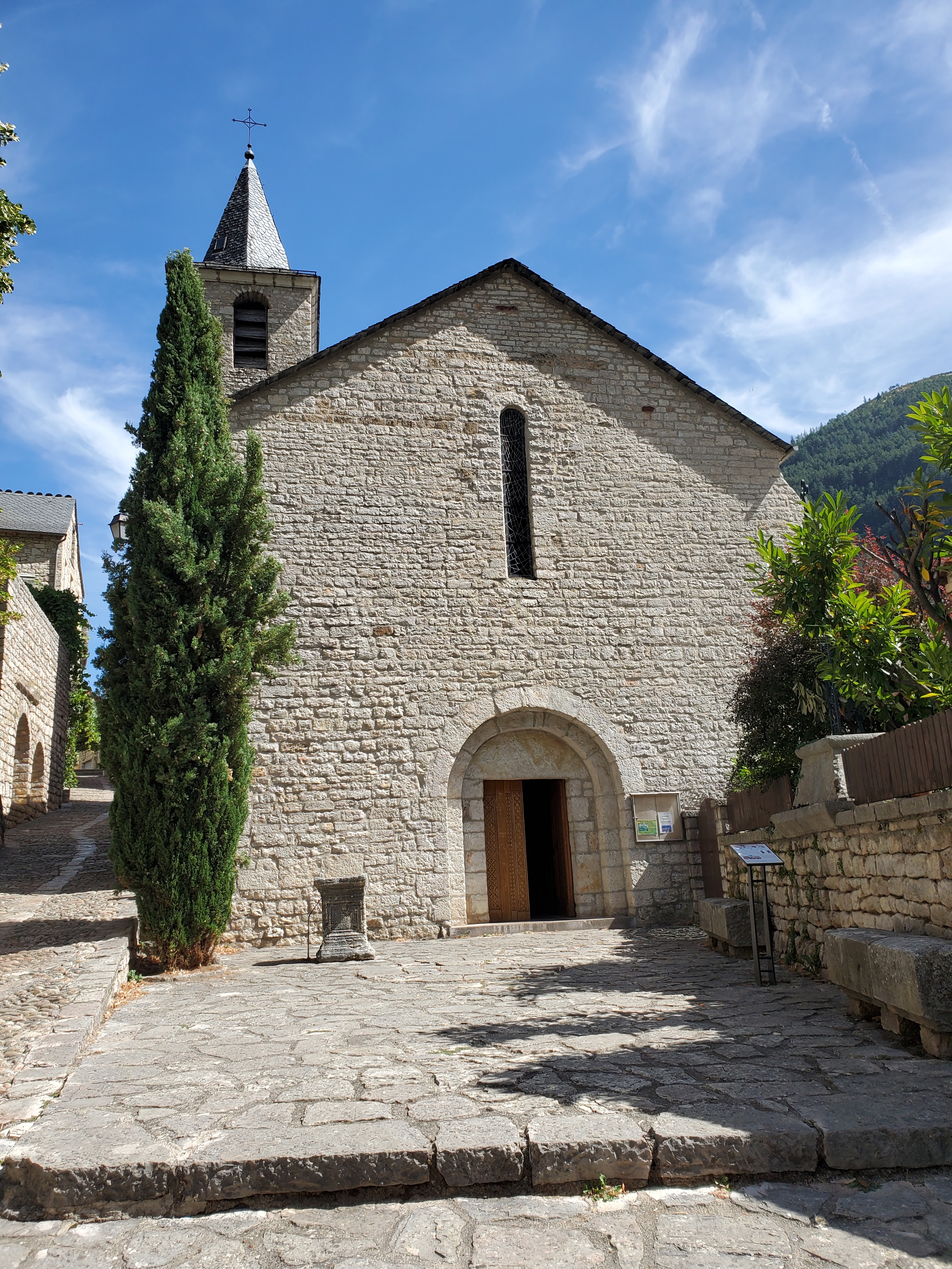 Jolie petite église au pied du village de Sainte Enimie. De style roman tardif, elle est simple avec peu de décoration mais a son charme.
