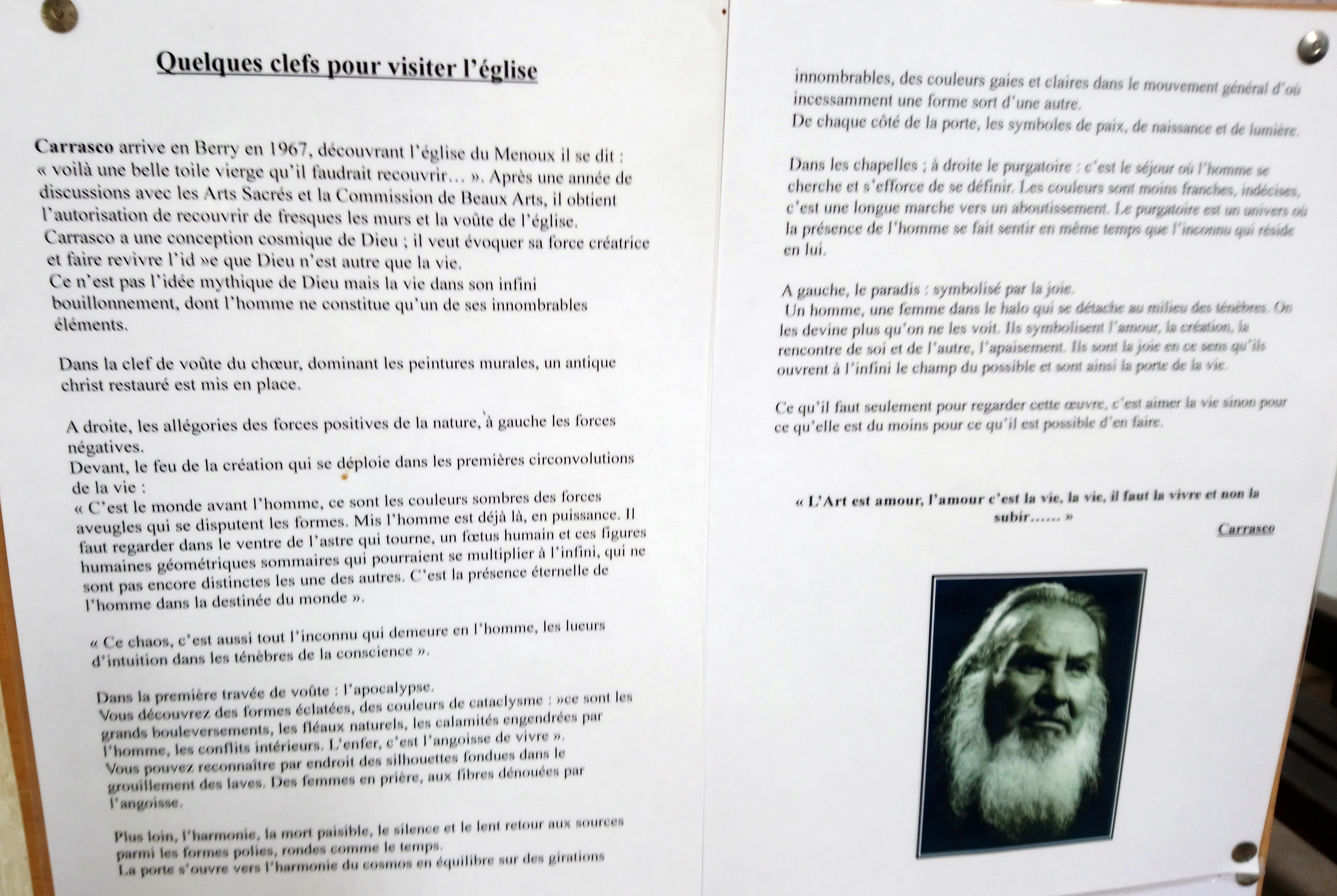 Visite guidée de la sublime église de Menoux peinte par Jorge Carasso. Nous avons eu le bénéfice d'avoir une visite guidée, réaliser par son dernier fils. Je vous invite à la faire pour découvrir les nombreuses signification de cette fresque.