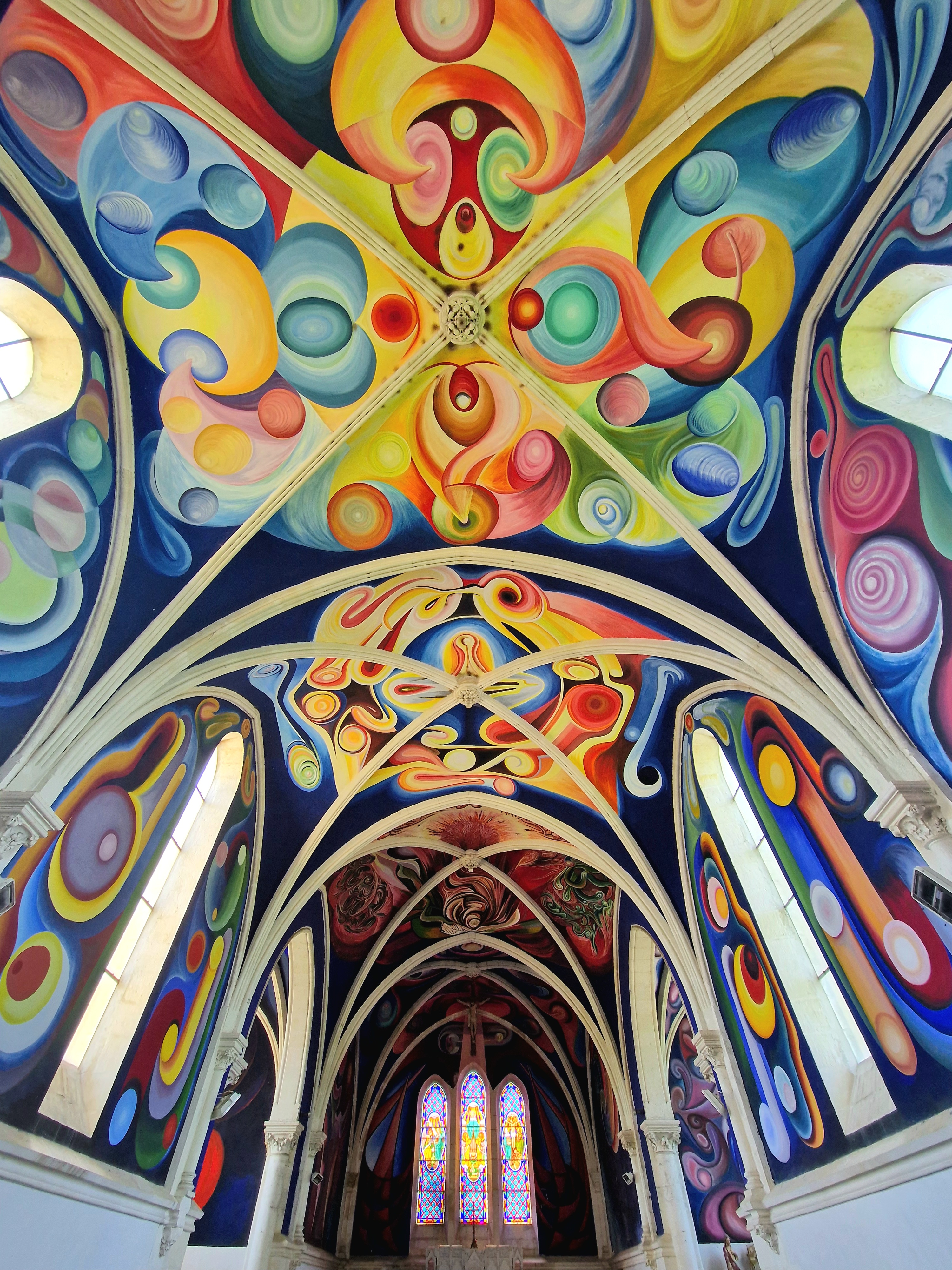 Spectaculaire! On aime ou pas mais on ne peut pas rester indifférent devant les fresques réalisées par Jorge Carrasco dans cette église de village.