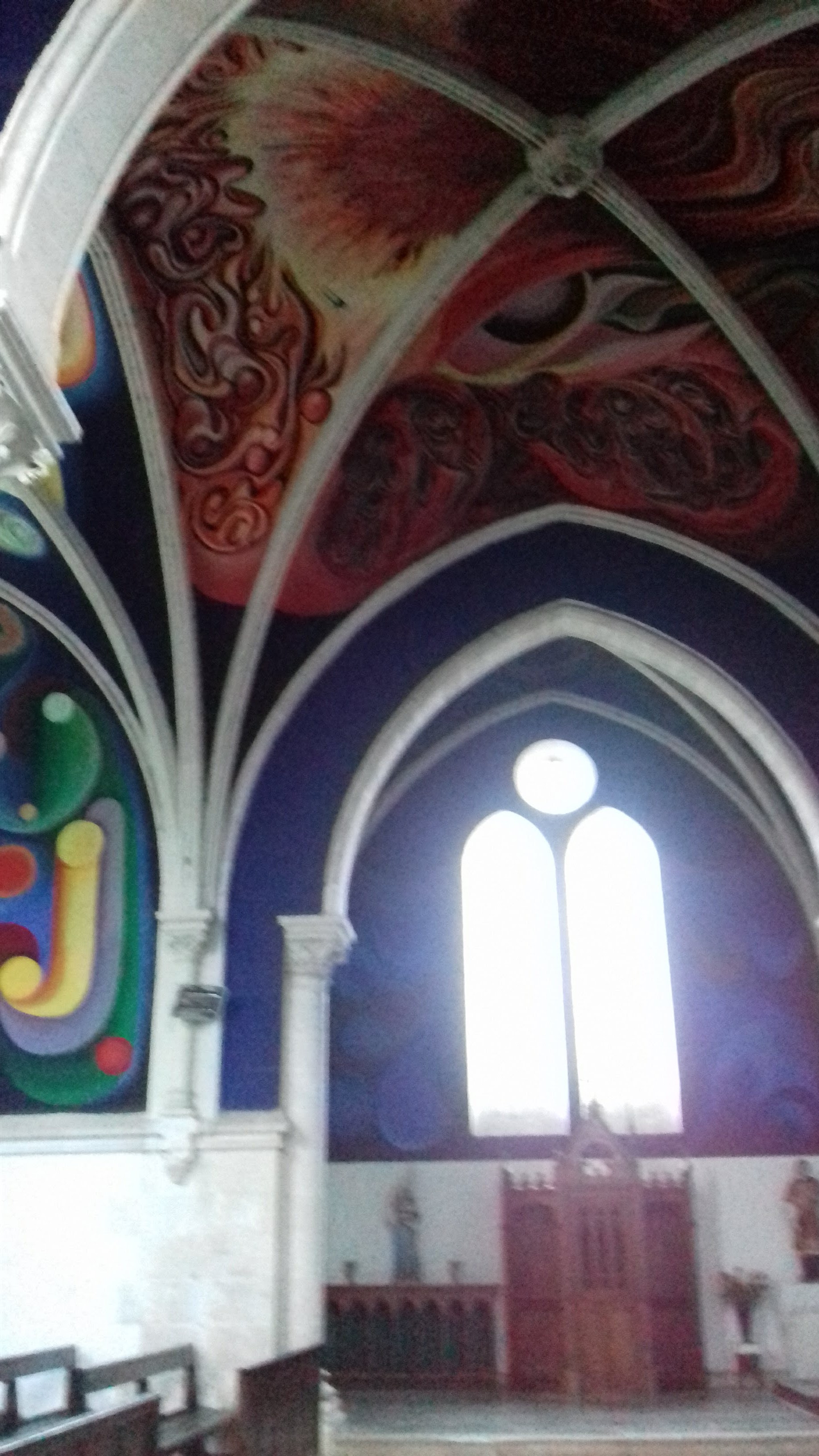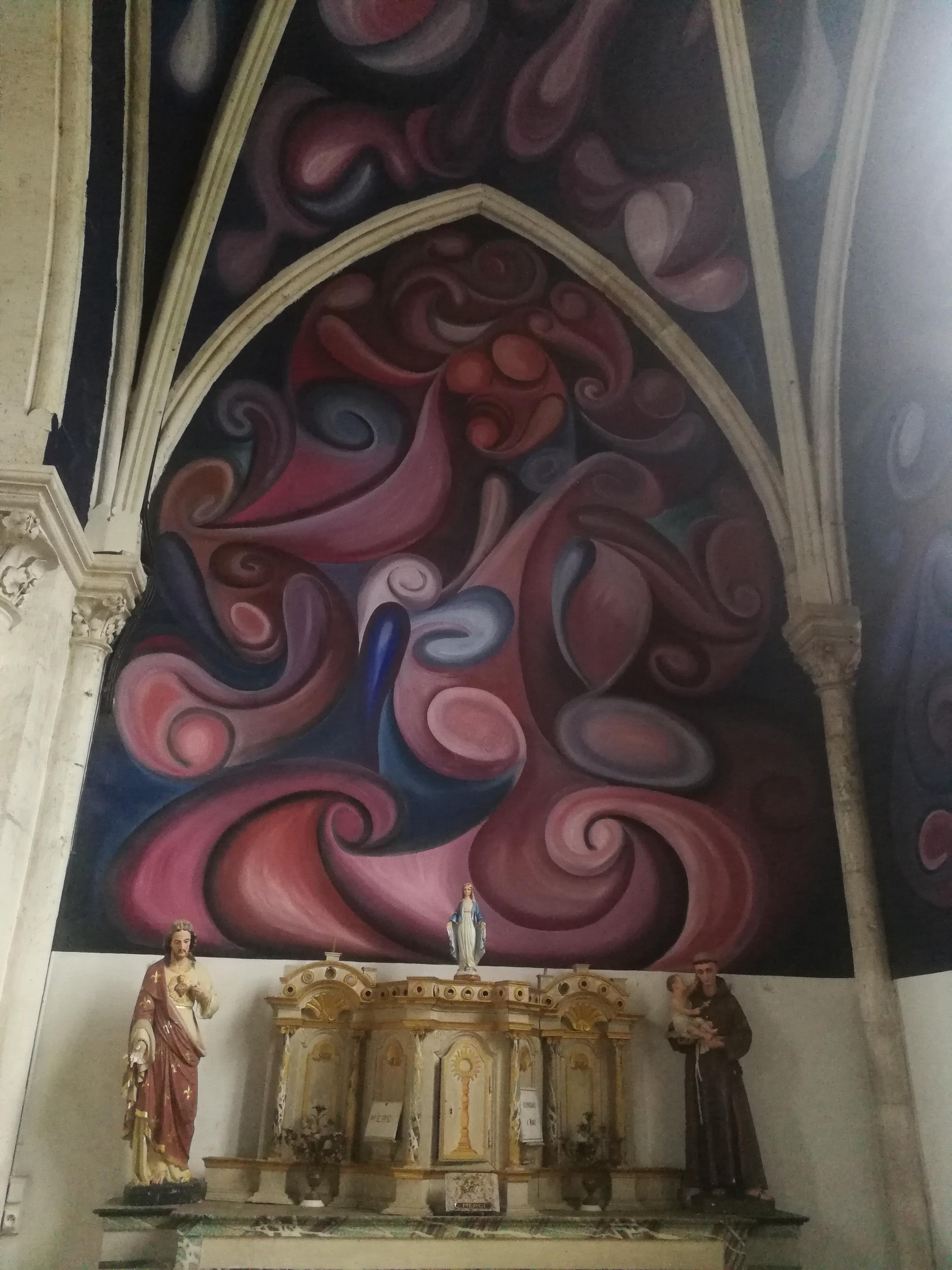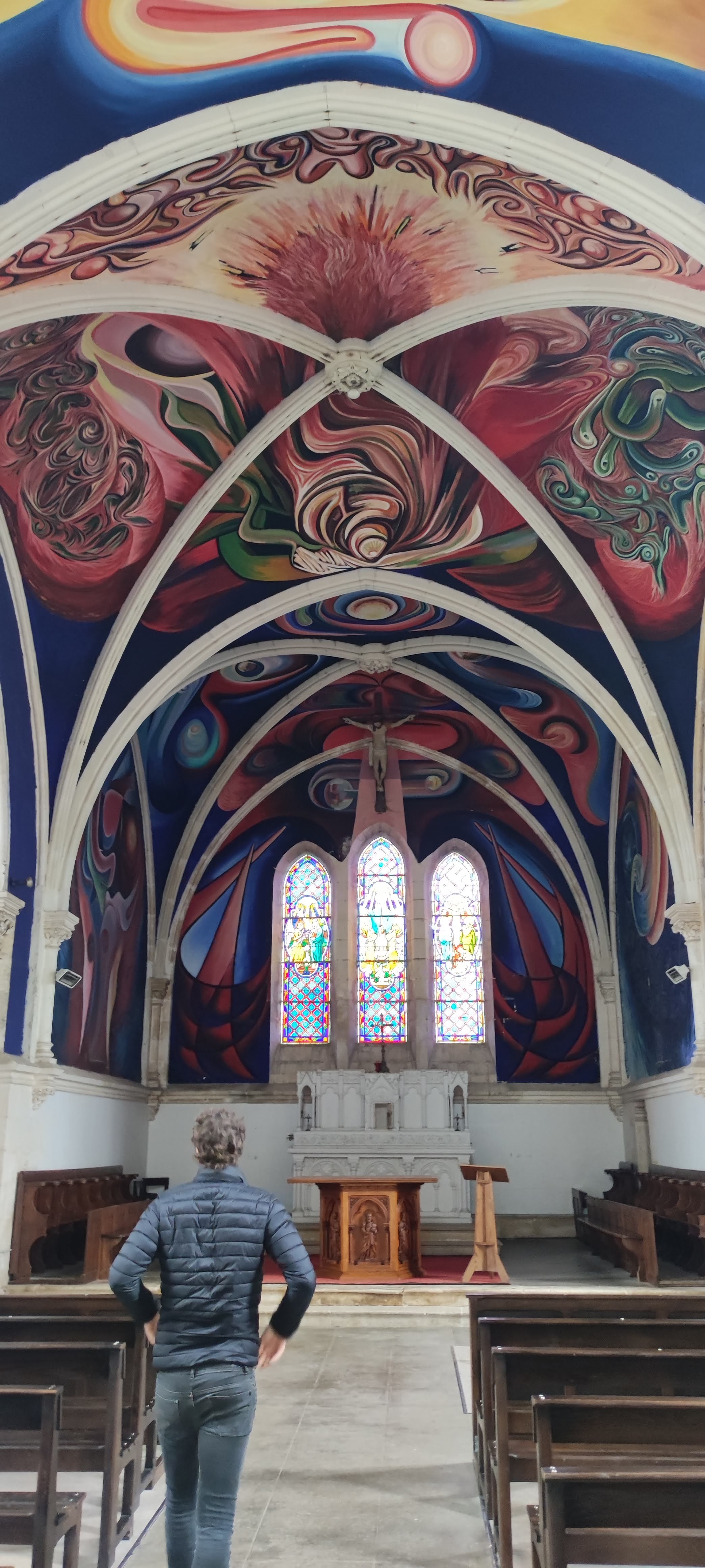 Magnifiques peintures dans cette église. On ne s'y attend pas. N'oubliez pas de visiter l'atelier de l'artiste.