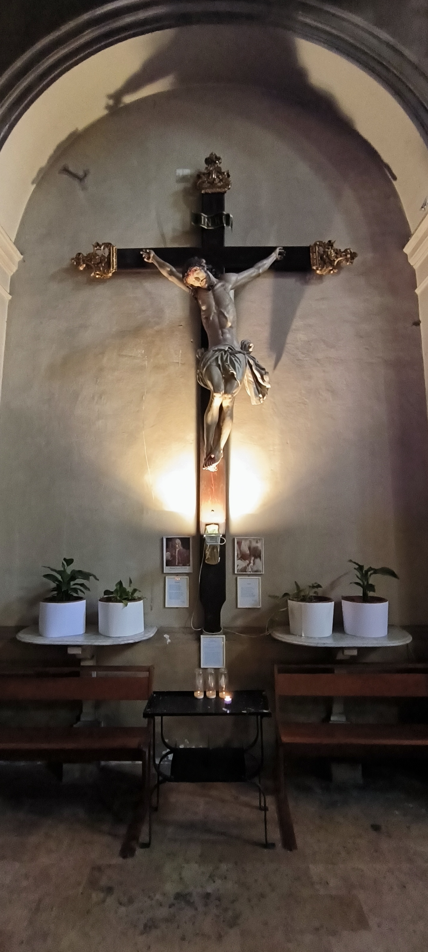En entrant dans l eglise sur le cote droit il y a le Christ mort sur la Croix une tres grande souffrance que la mort du fils de Dieu .heureusement 3 jours apres le miracle de la resurrection. Cette eglise meriterai d etre renove