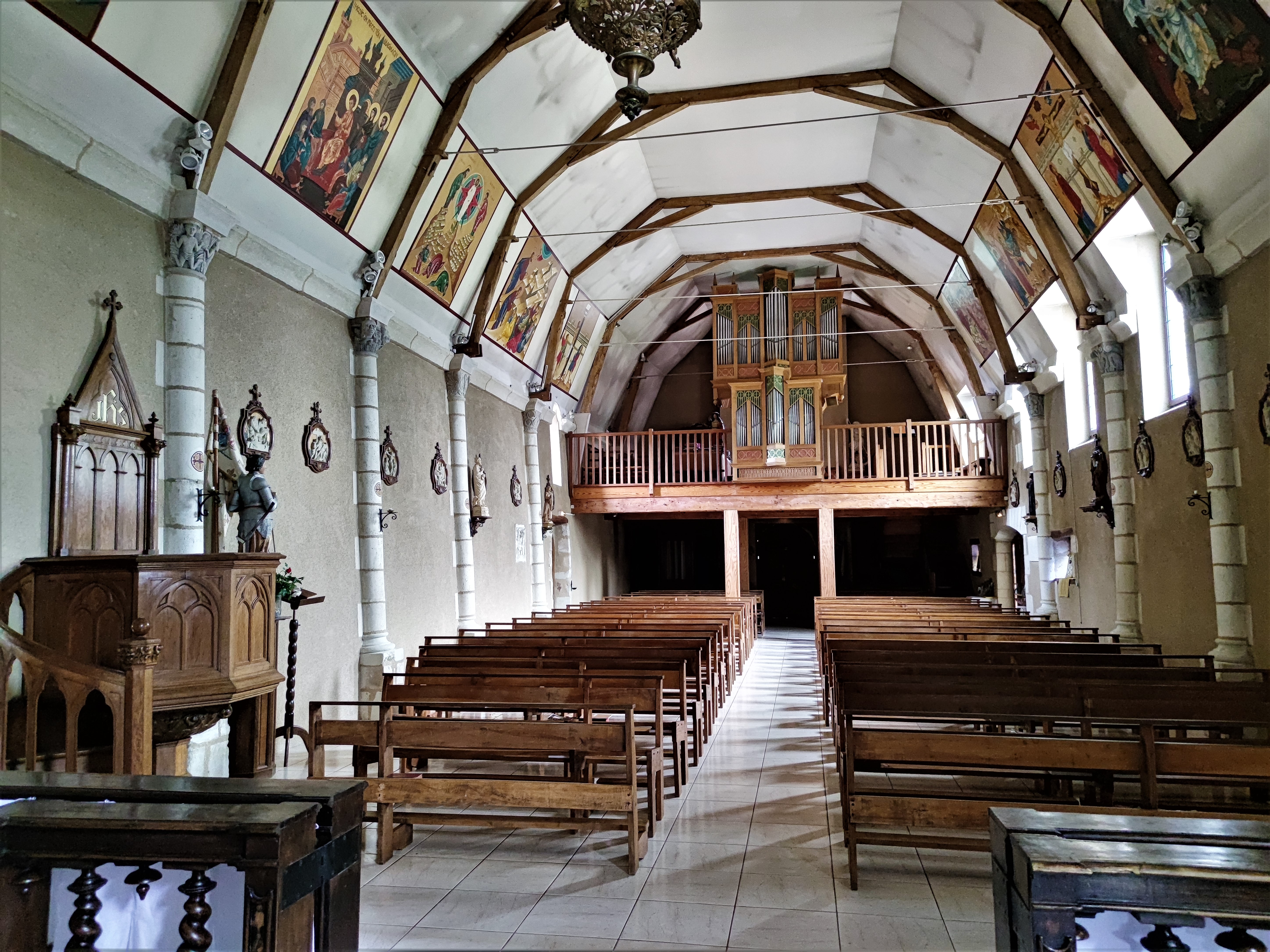 Consacré en 1992, la beauté, expression de la foi dans l'église catholique est présente dans cette église ou les messes traditionnelles en latin sont célébrées. l'église est accessible en dehors des offices. Voici la présentation officielle transmise par le secrétaire du Centre grégorien Saint Pie X : Le Centre grégorien Saint-Pie X, oeuvre sous l'égide de la Fraternité de la Transfiguration (Mérigny), avec la collaboration du district de France de la Fraternité Saint Pie X. Il a pour but de favoriser l'étude et la pratique du chant grégorien dans un cadre liturgique. Pour cela, il se place dans la lignée de l'interprétation de Dom Gajard et, dans le cadre des sessions qu'il organise, fait participer quotidiennement au chant de la messe et des complies. L'enseignement dispensé s'attache à couvrir l'ensemble des besoins, des débutants jusqu'aux chefs de chœur, en passant par les organistes et les camps pour enfants.