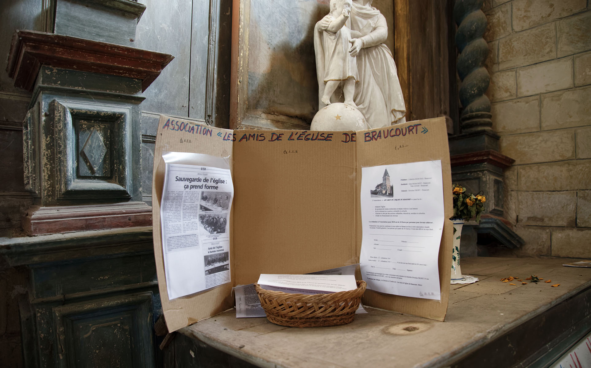 Jolie petite église. L'association Les amis de l'église de Braucourt met tout en oeuvre pour assurer sa sauvegarde. Construction 12è et 13è siècles pour la nef et les bas-côtés. Edifice remanié au 19è siècle par la reconstruction du clocher et du choeur, la réfection de la façade occidentale, et l'adjonction d'une sacristie au sud. (Portail du patrimoine culturel, site de Champagne-Ardenne)