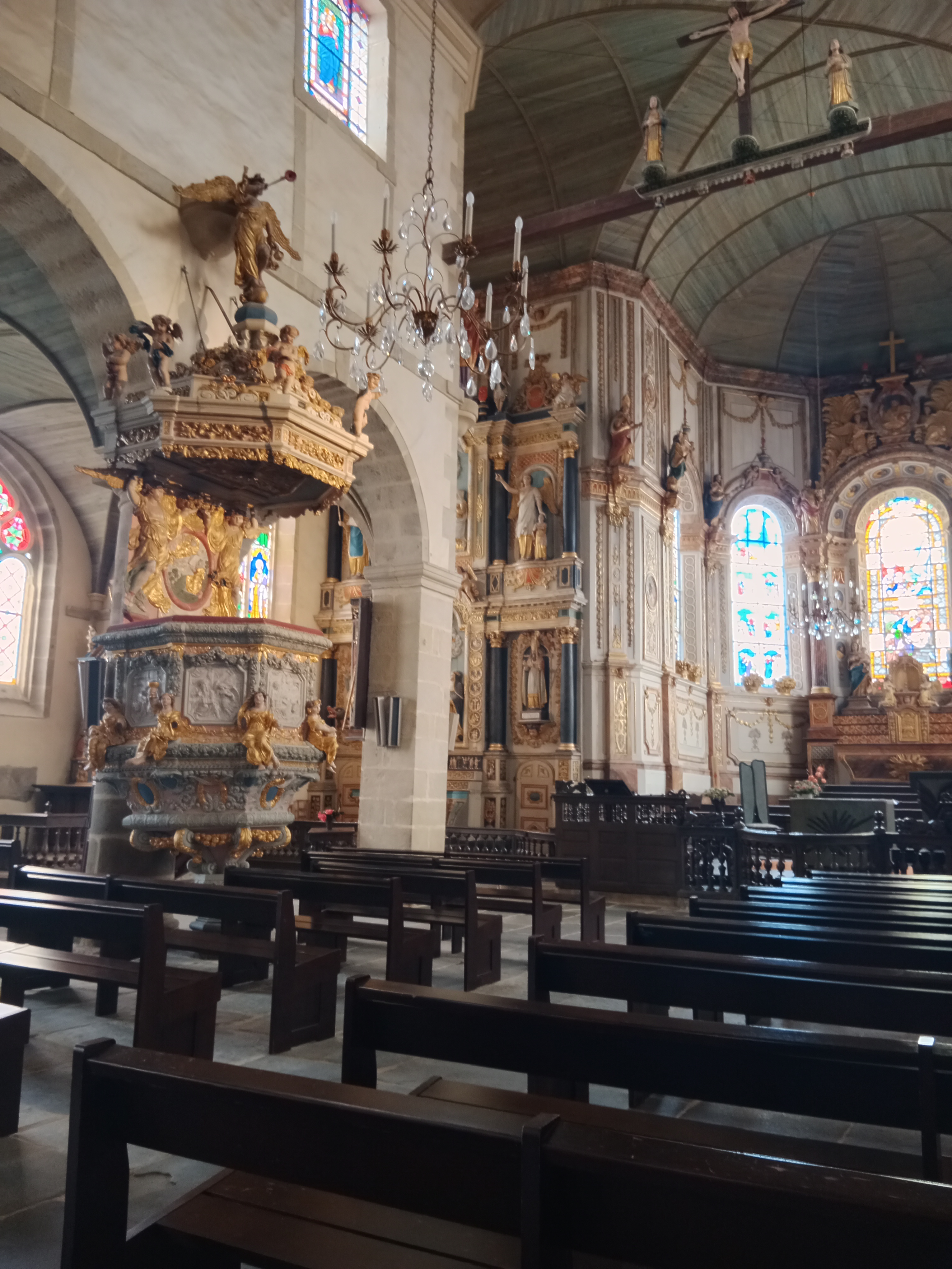 C'est une église richement décorée, tant à l'extérieur qu'à l'intérieur (sculpture, retable, calvaire,etc...) et dont les couleurs tant des vitraux que des sculptures illuminent et enjolivent l'intérieur. Un détour pour la visiter est obligatoire. Il y a également des explications sur l'économie du lin ainsi que sur l'incendie qui ravagea une partie de l'église en 98