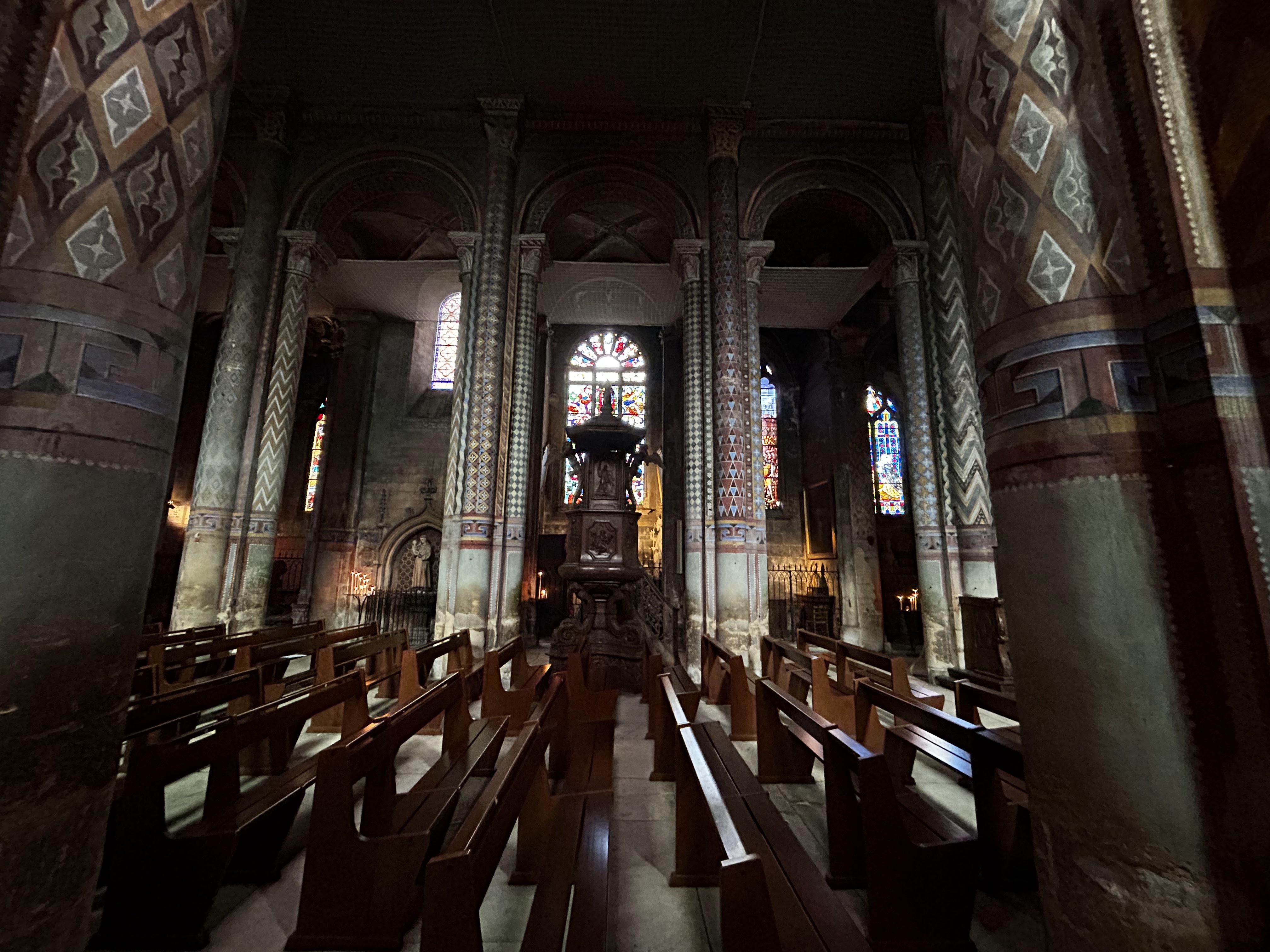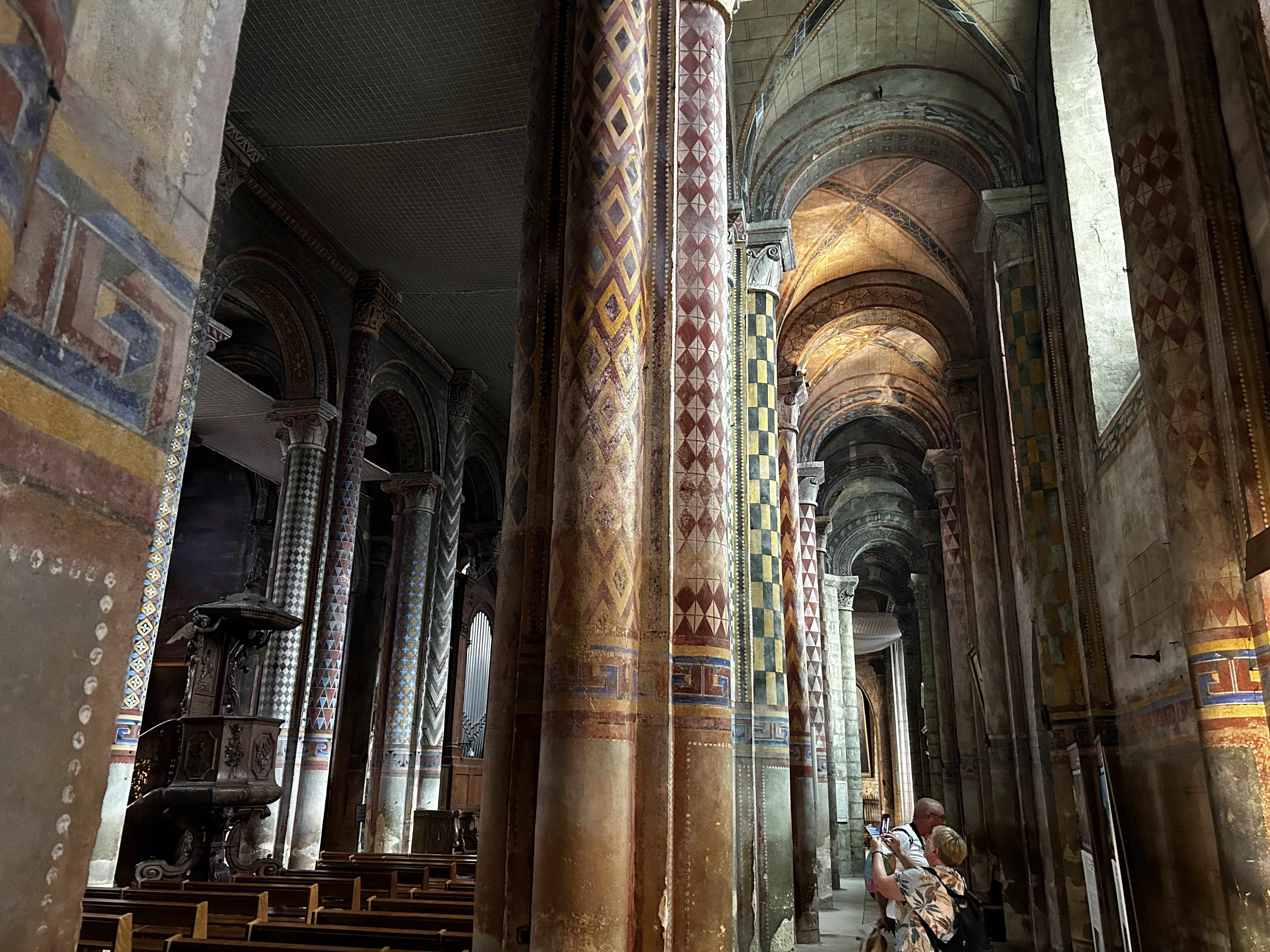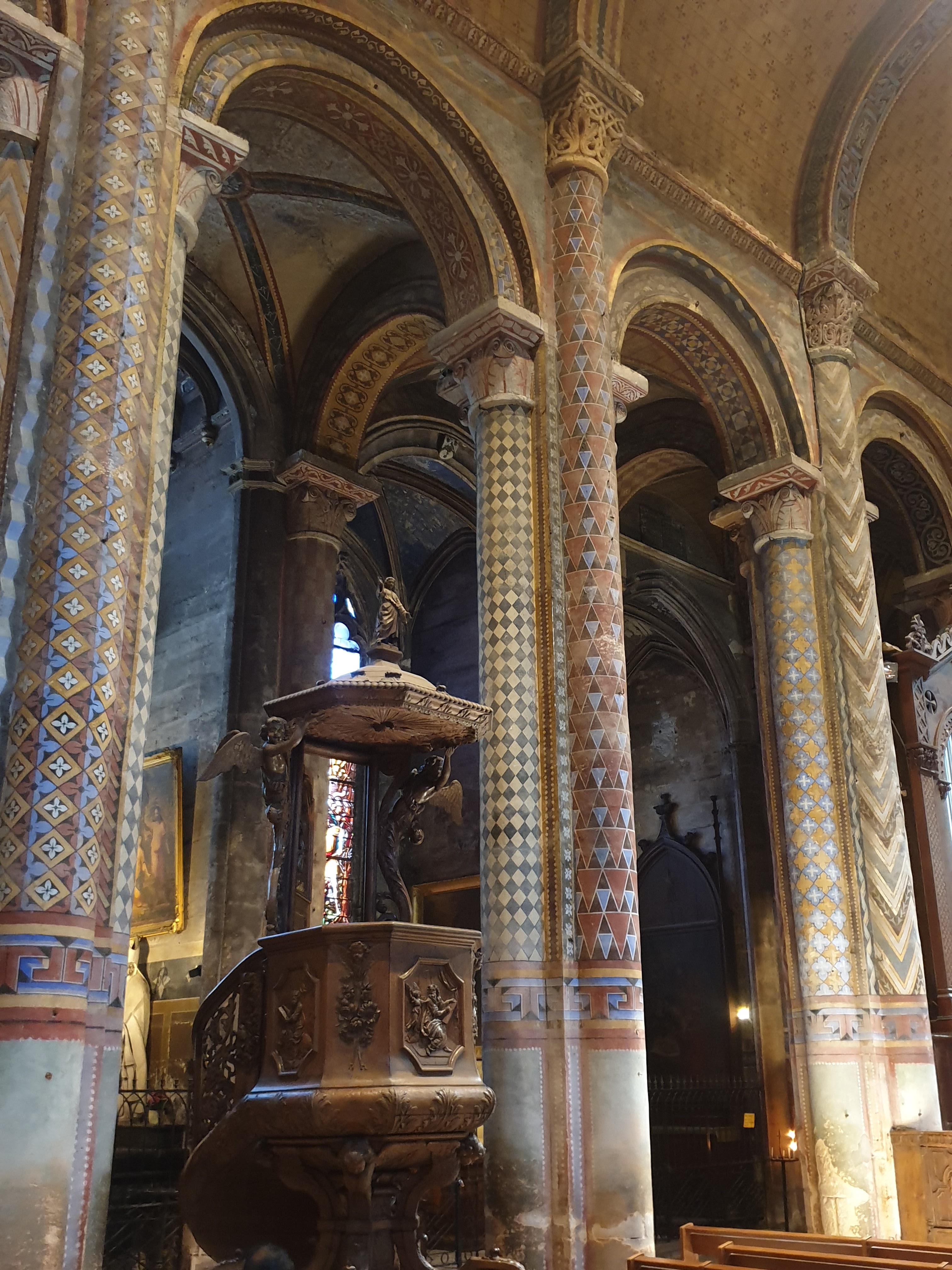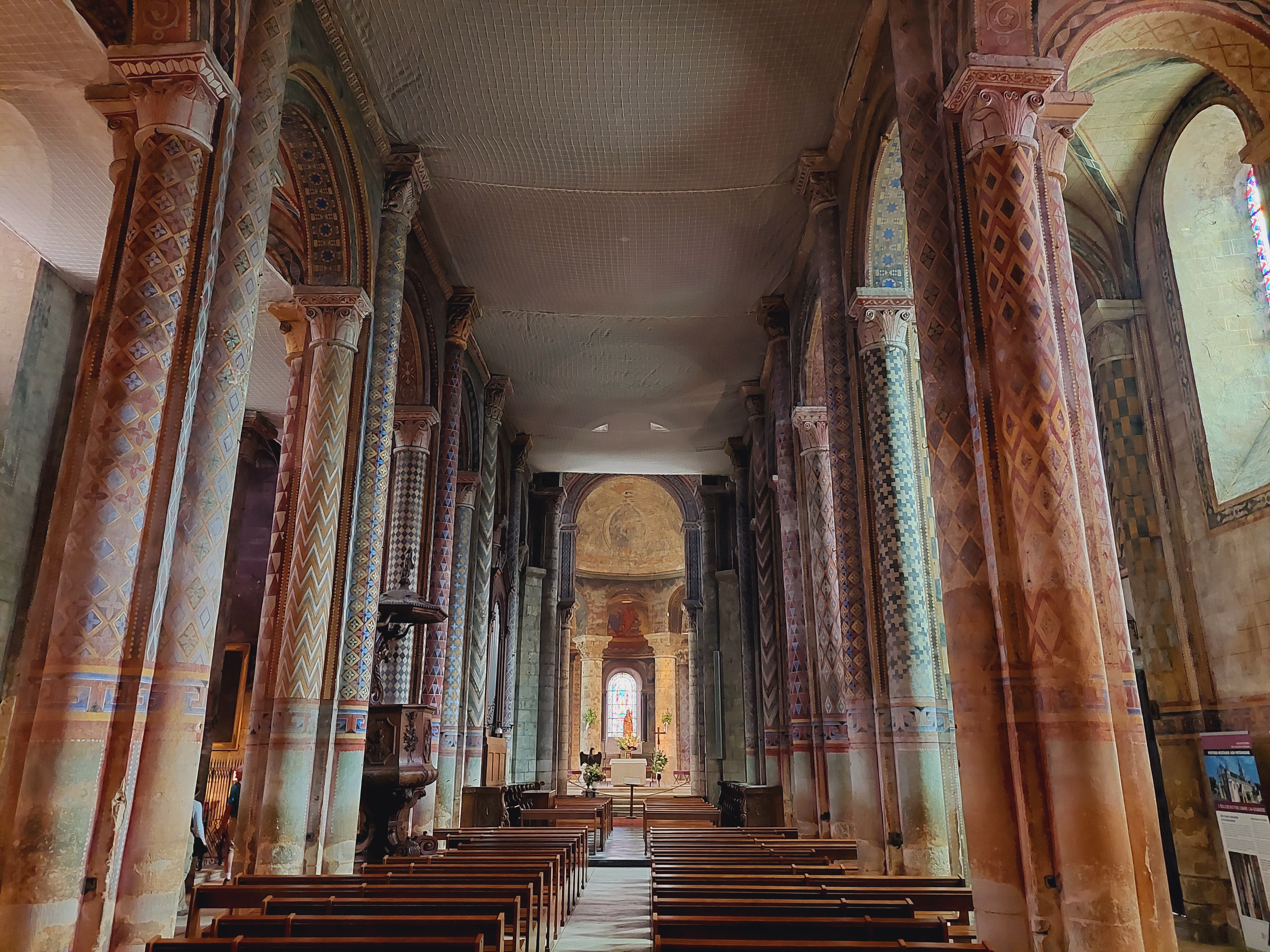 Son architecture extérieure est l'amuse bouche de la visite, l'orgue est son entrée, en plat principal les peintures ornementale sur piliers et plafonds sont magistrales et la douceur des courbes de la nef romane enchantera vos sens en fin de visite 😉