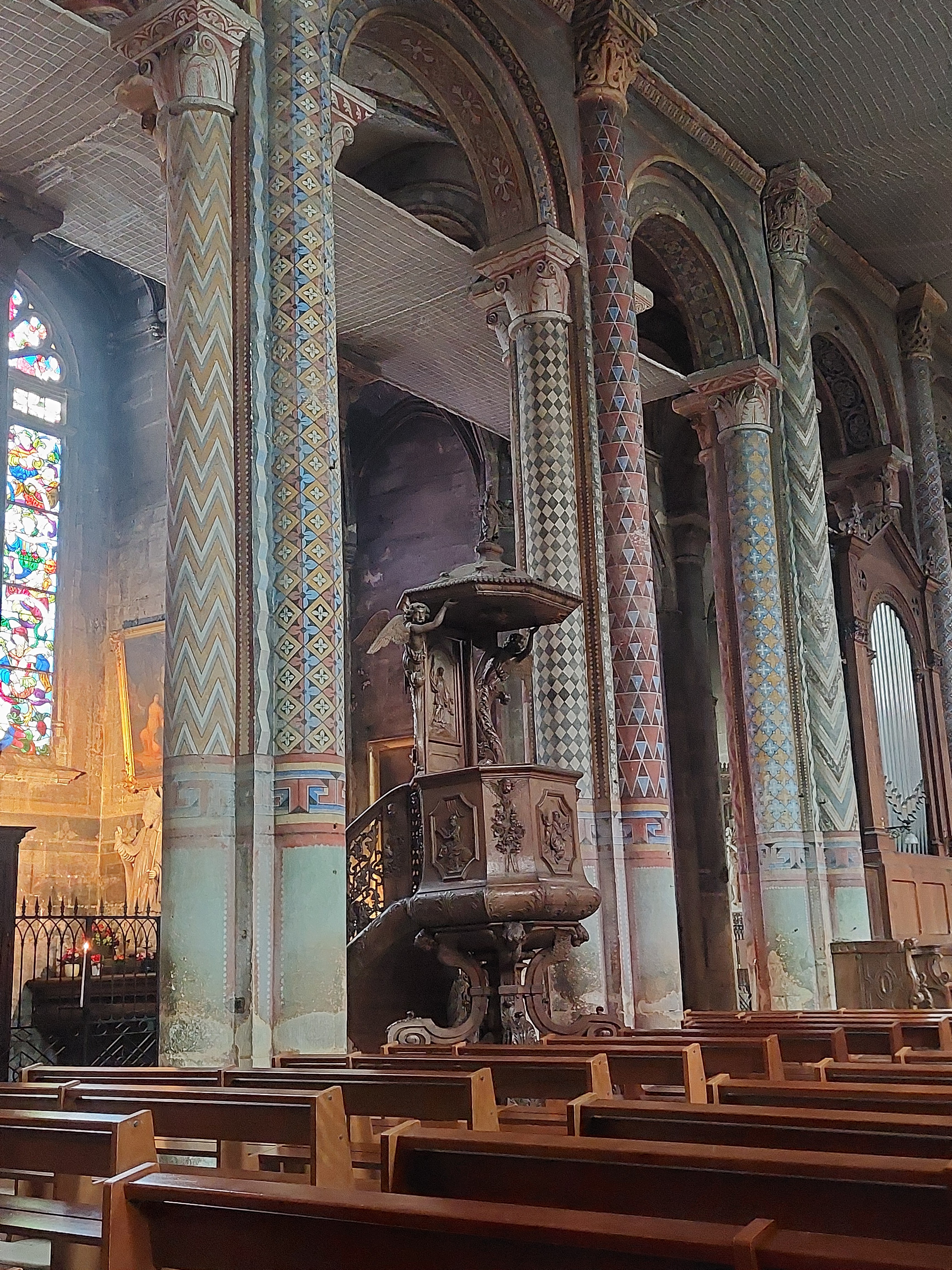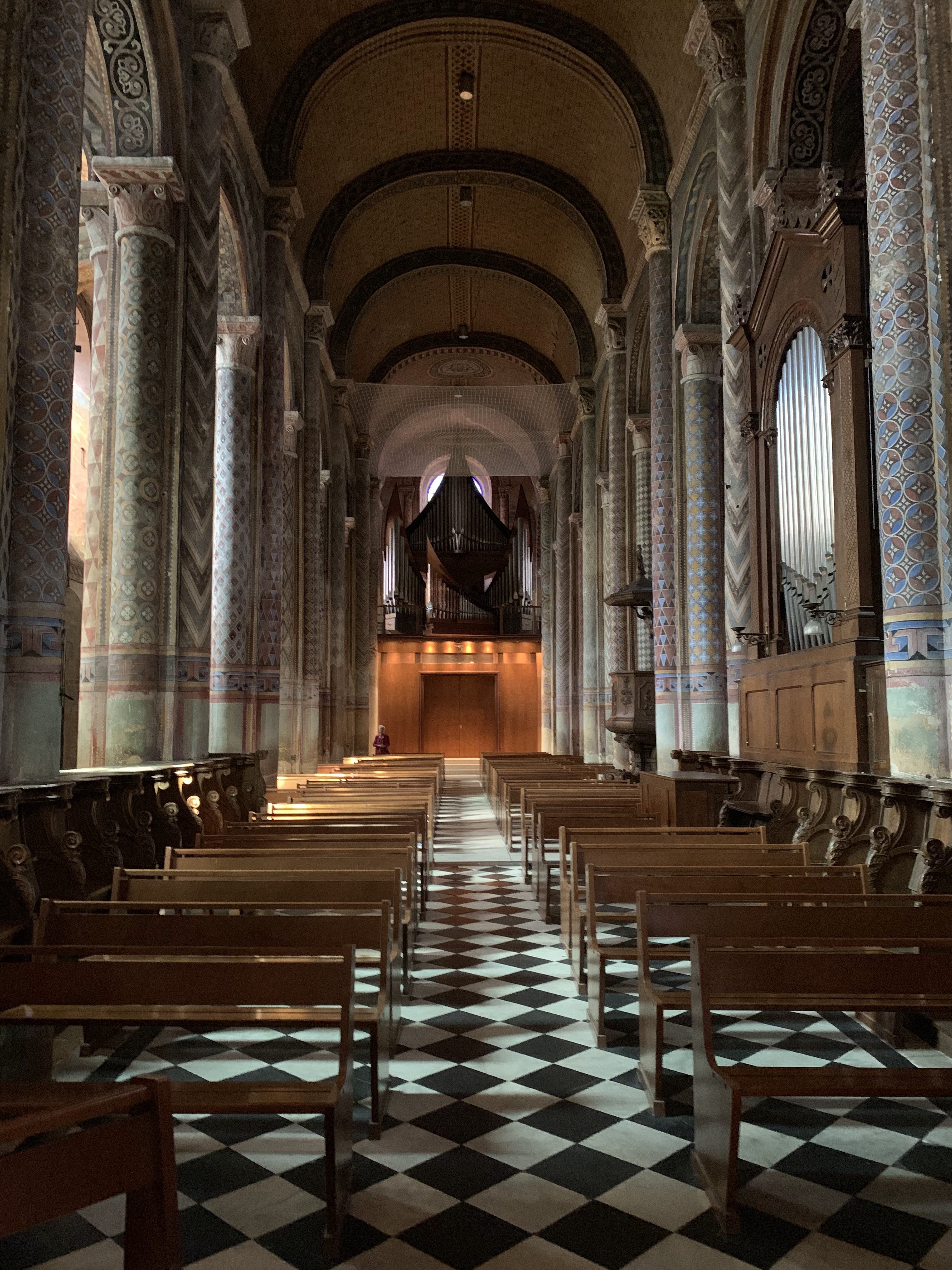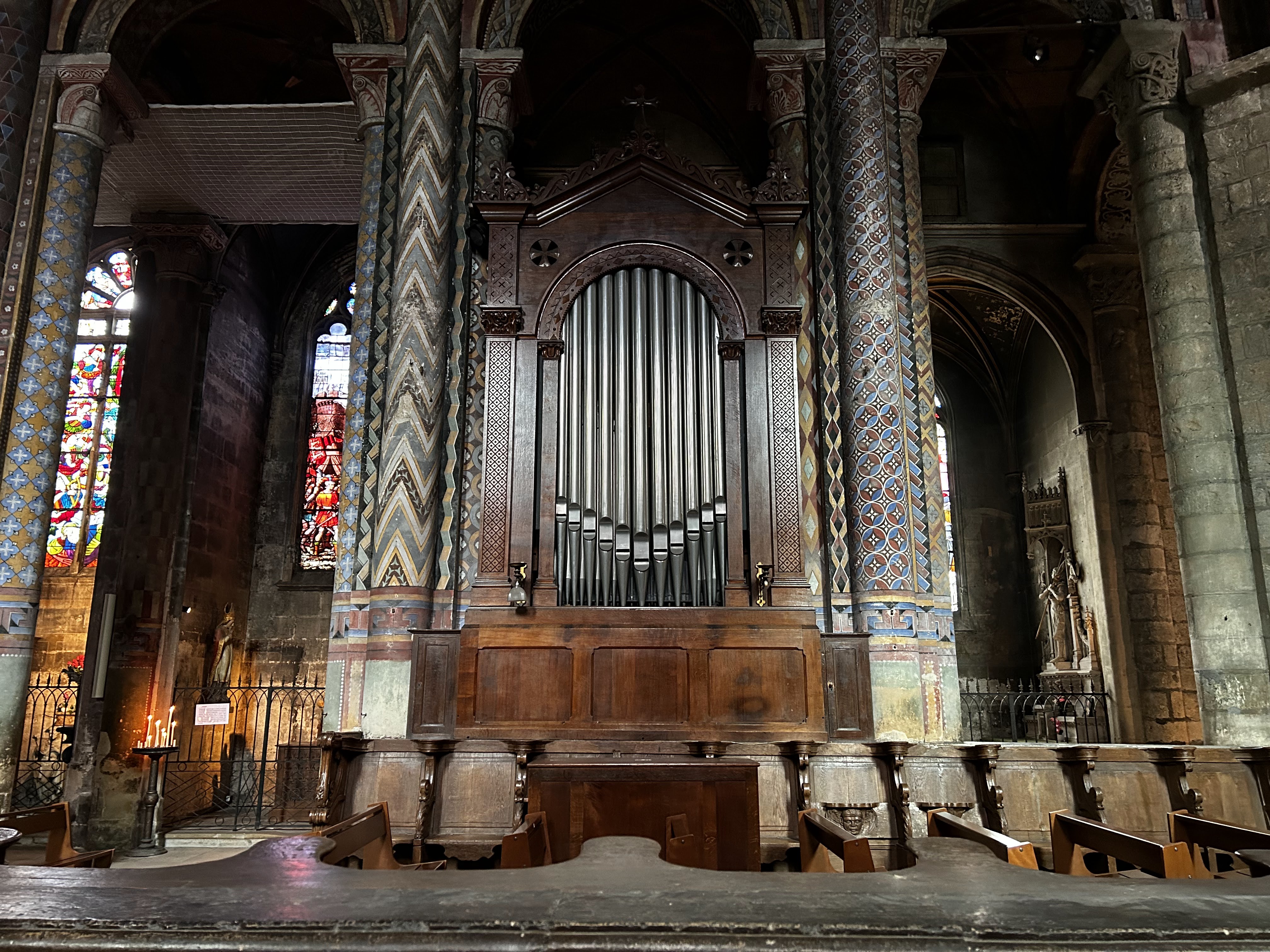 Son architecture extérieure est l'amuse bouche de la visite, l'orgue est son entrée, en plat principal les peintures ornementale sur piliers et plafonds sont magistrales et la douceur des courbes de la nef romane enchantera vos sens en fin de visite 😉