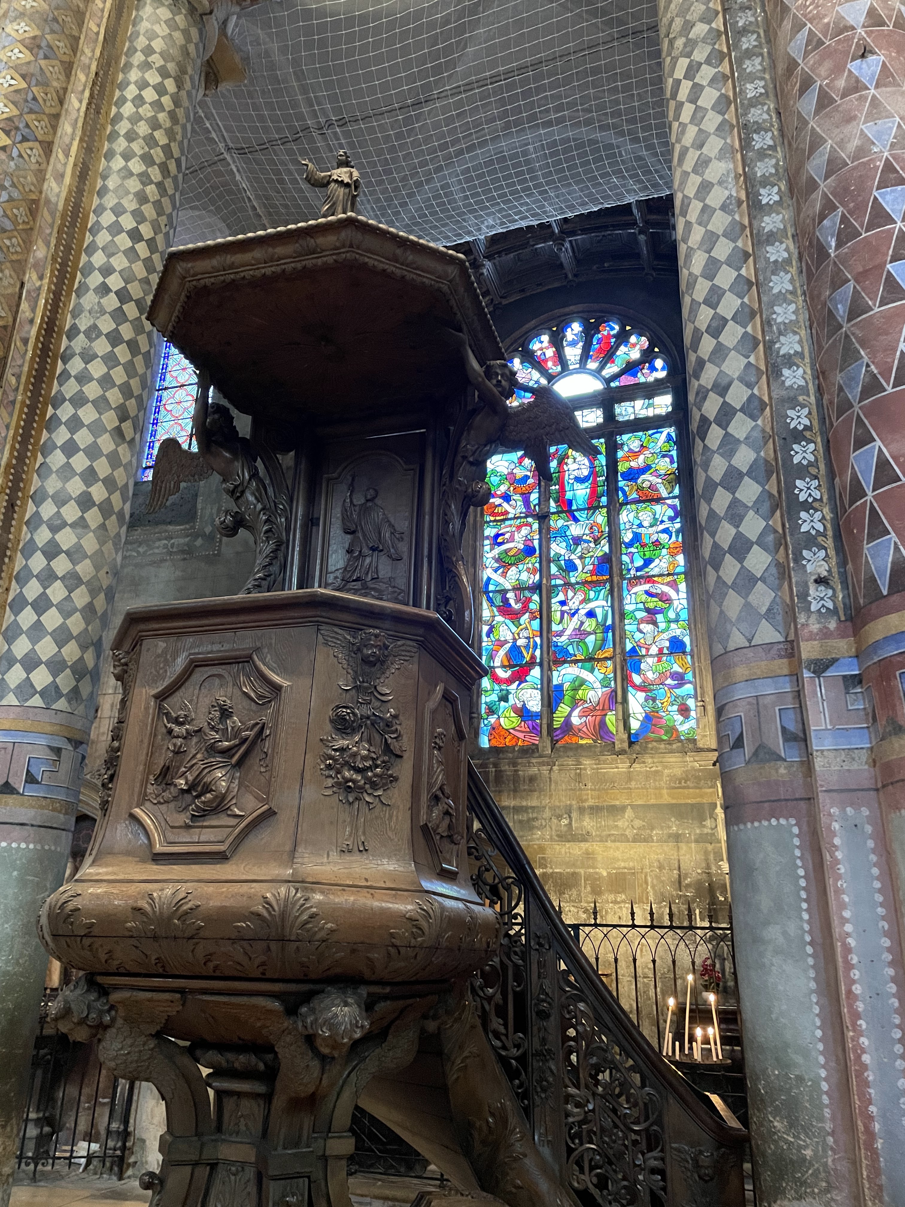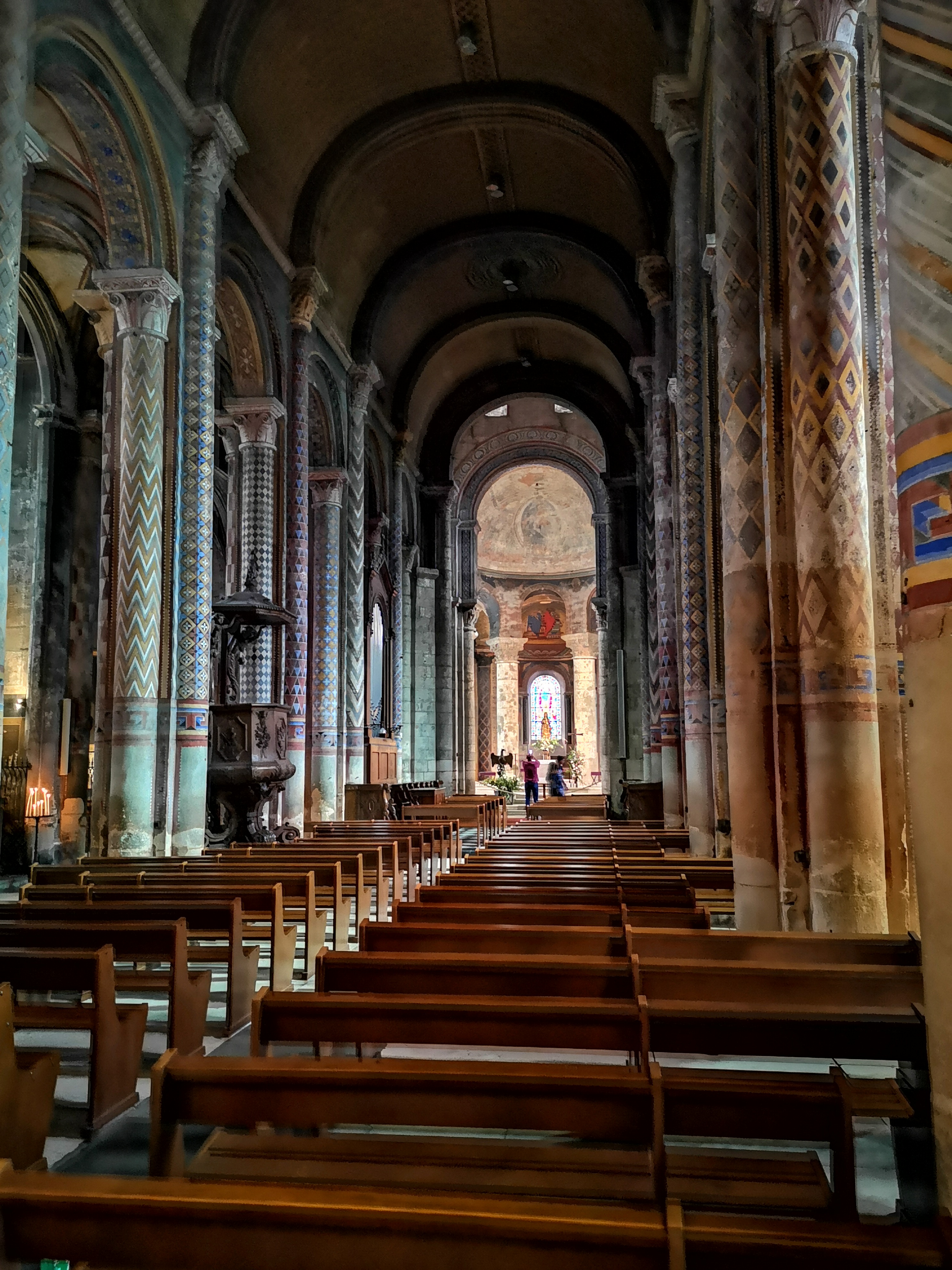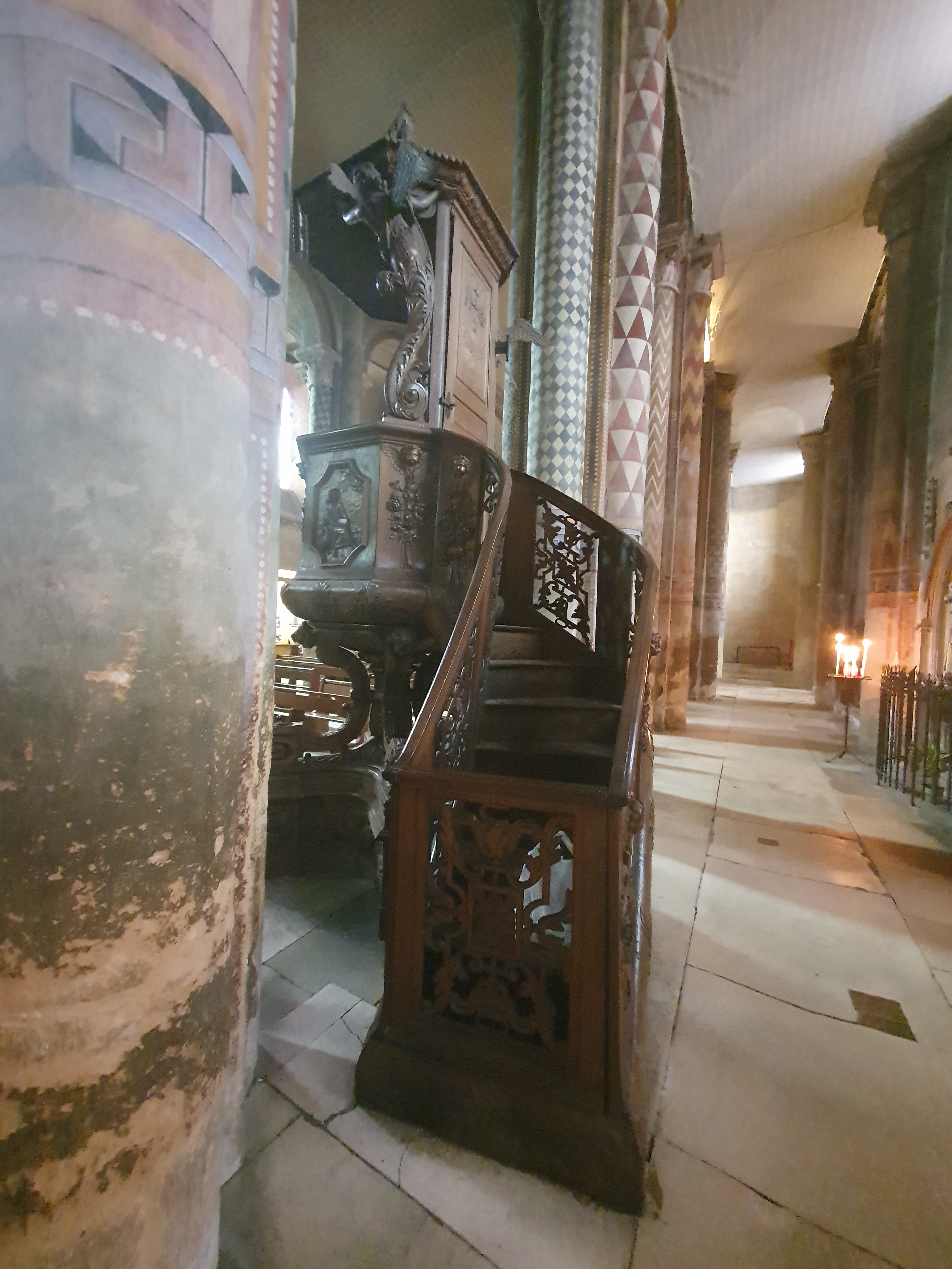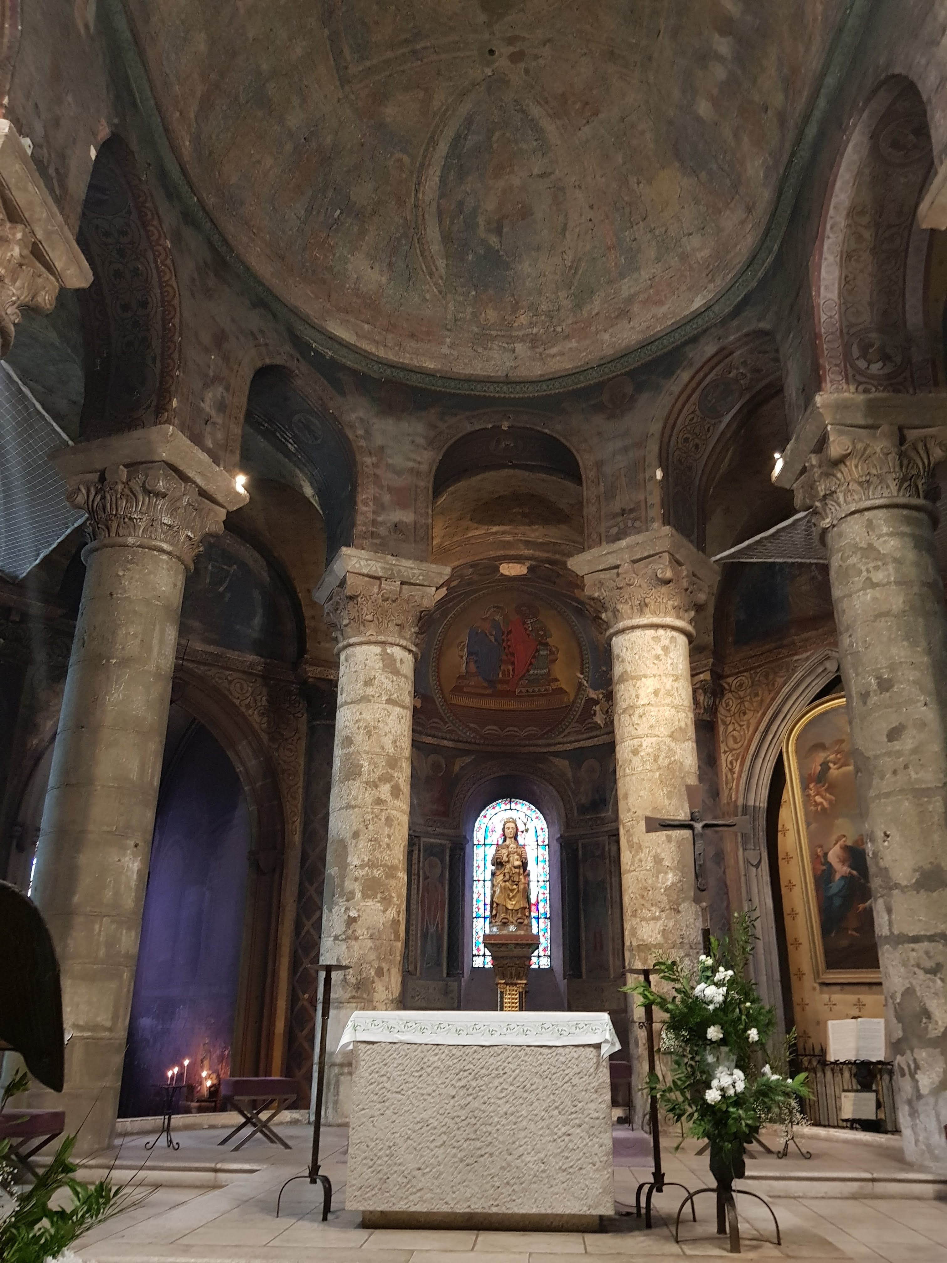 Son architecture extérieure est l'amuse bouche de la visite, l'orgue est son entrée, en plat principal les peintures ornementale sur piliers et plafonds sont magistrales et la douceur des courbes de la nef romane enchantera vos sens en fin de visite 😉