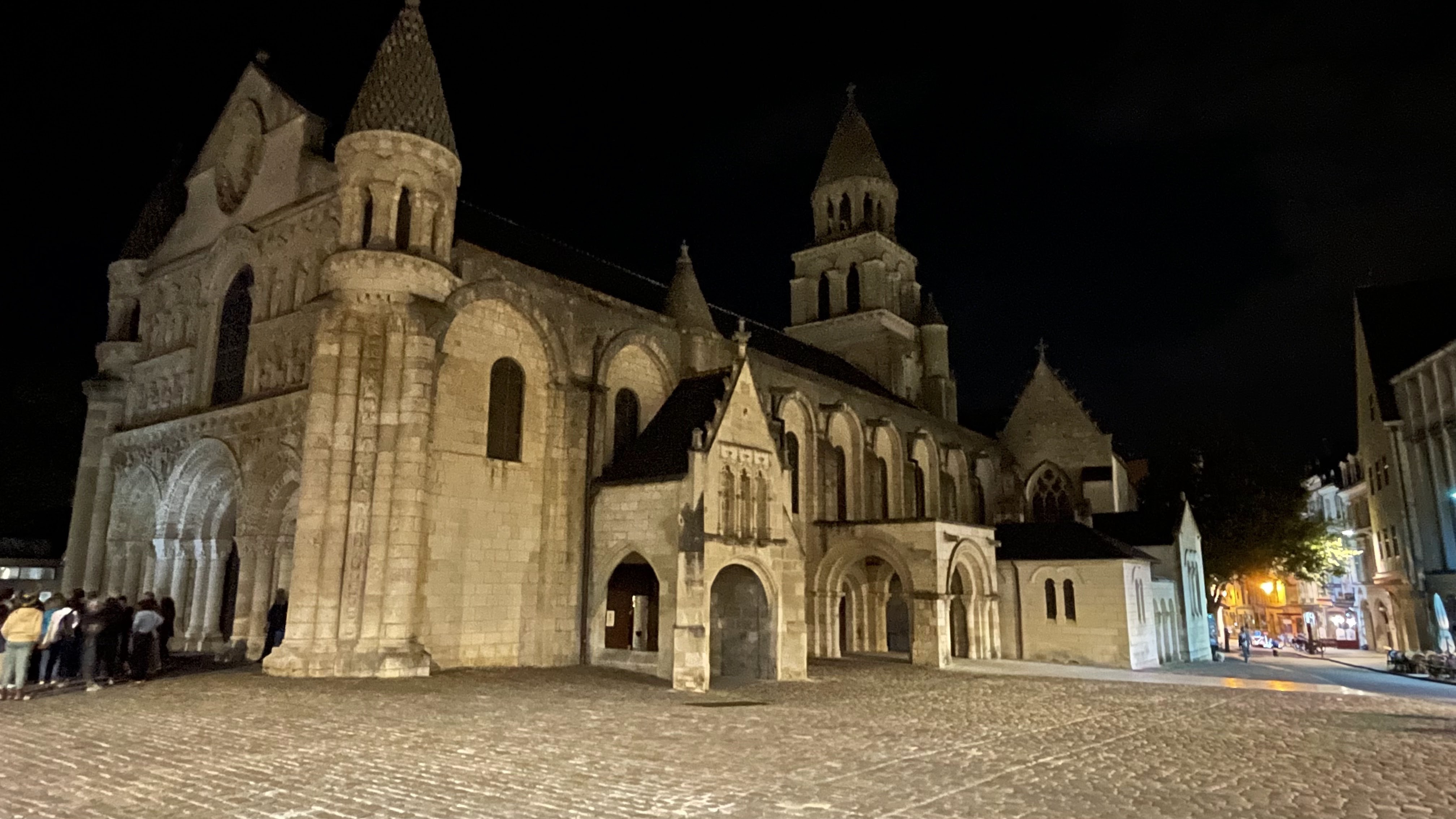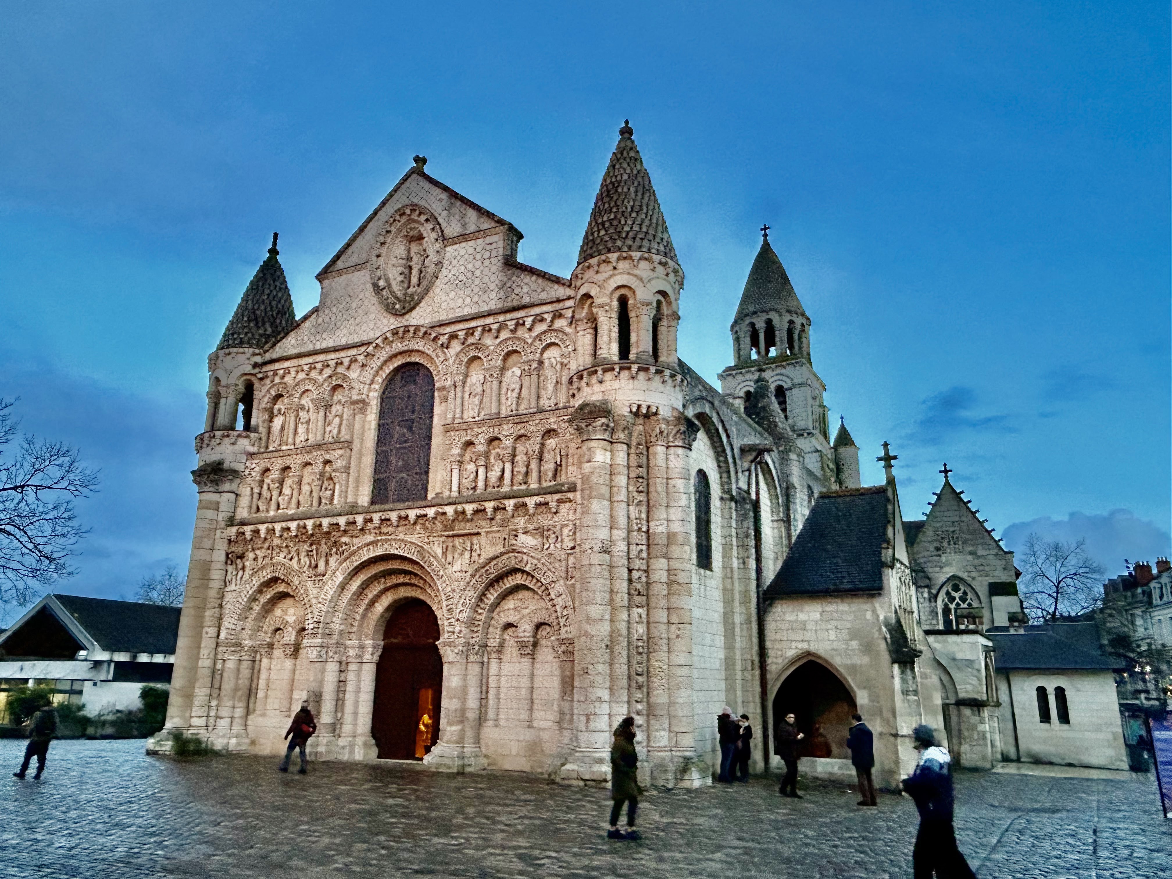 Le symbole de Poitiers et de sa période romane. Cependant, elle a tendance a éclipser les autres églises, ainsi que la cathédrale. Elle reste magnifique pendant les illuminations. D'ailleurs pour quoi ne pas la repeindre comme a l'époque romane. Sur ce point Poitiers ressemble a une carrière, des pavés, des églises et beaucoup moins de vie. Tout devient minéral.