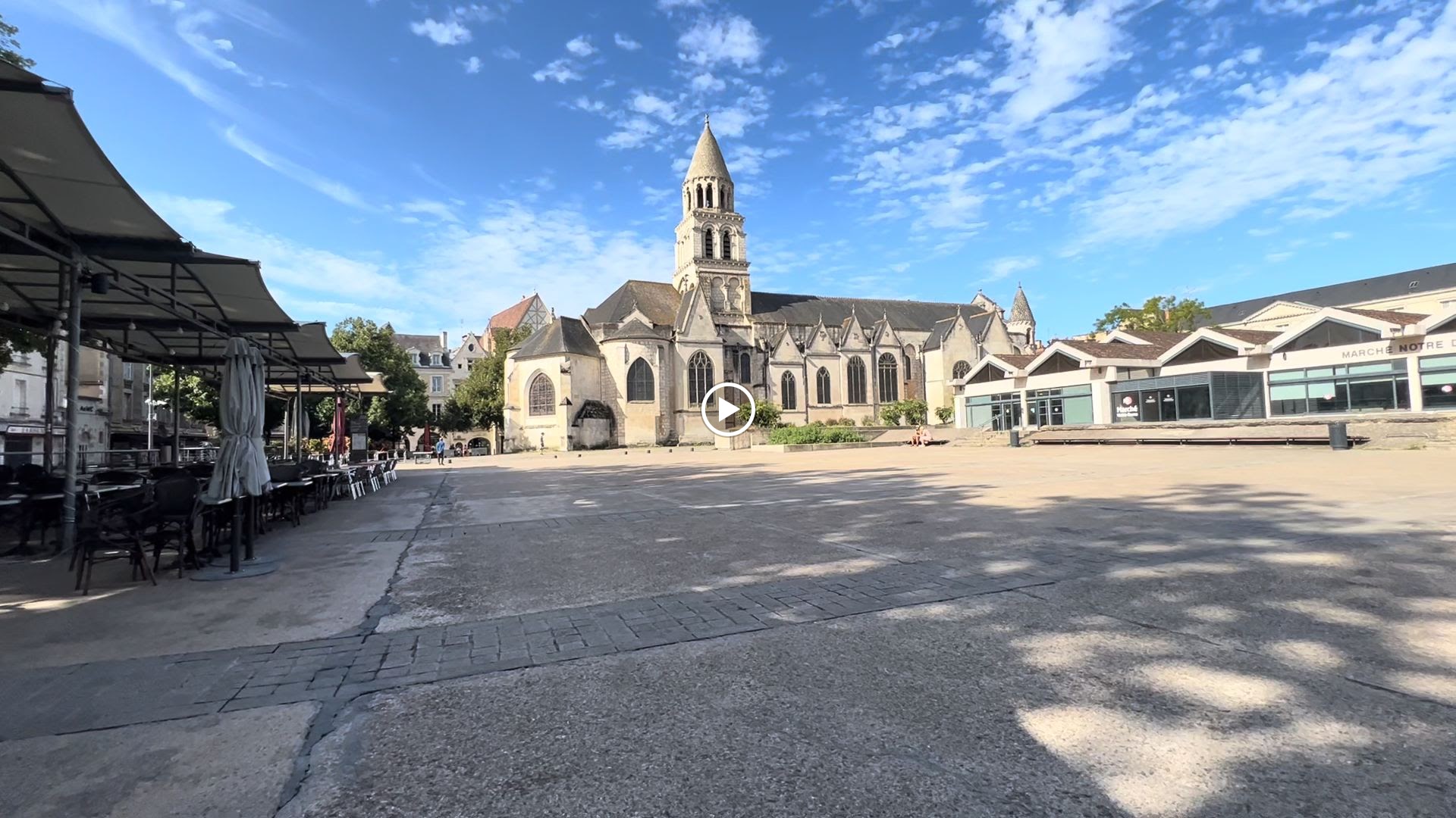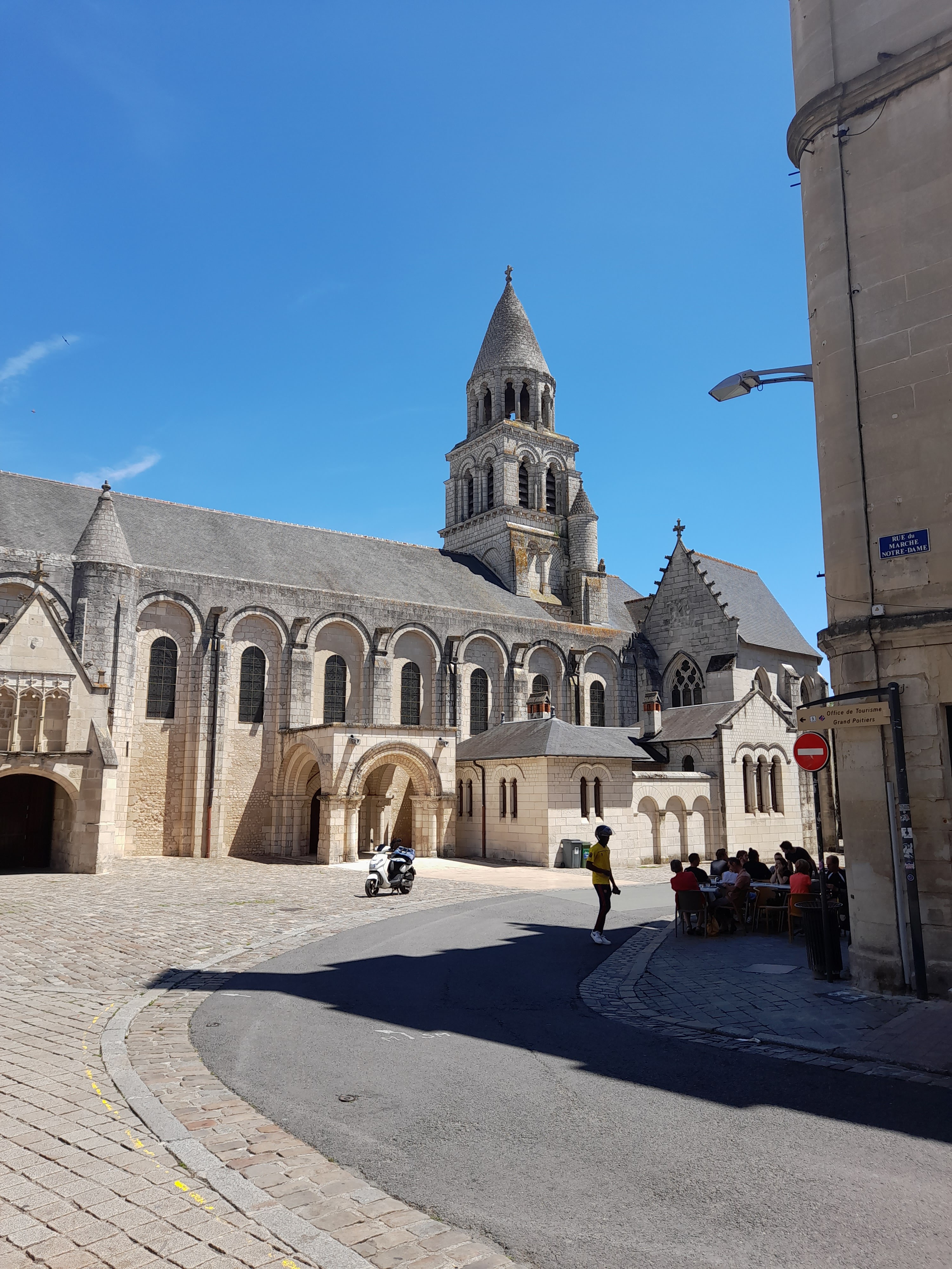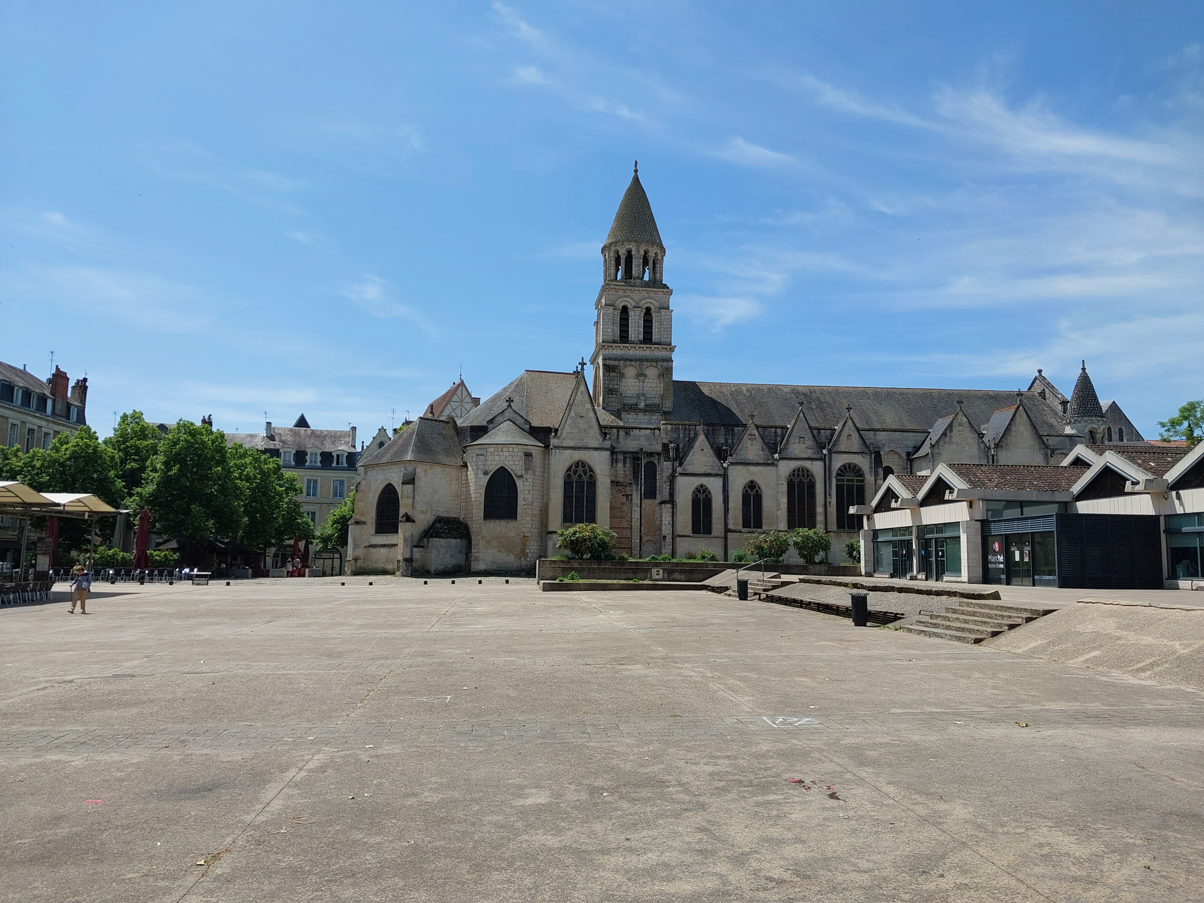 La plus belle église de Poitiers située sur la place du marché, le rendez-vous des étudiants à Poitiers, vous trouverez des restaurants et des bars sur la place. Sous la place il y a un parking. Depuis l' église Notre-Dame, l' on peut visiter à pied toutes les curiosités du centre de Poitiers.
