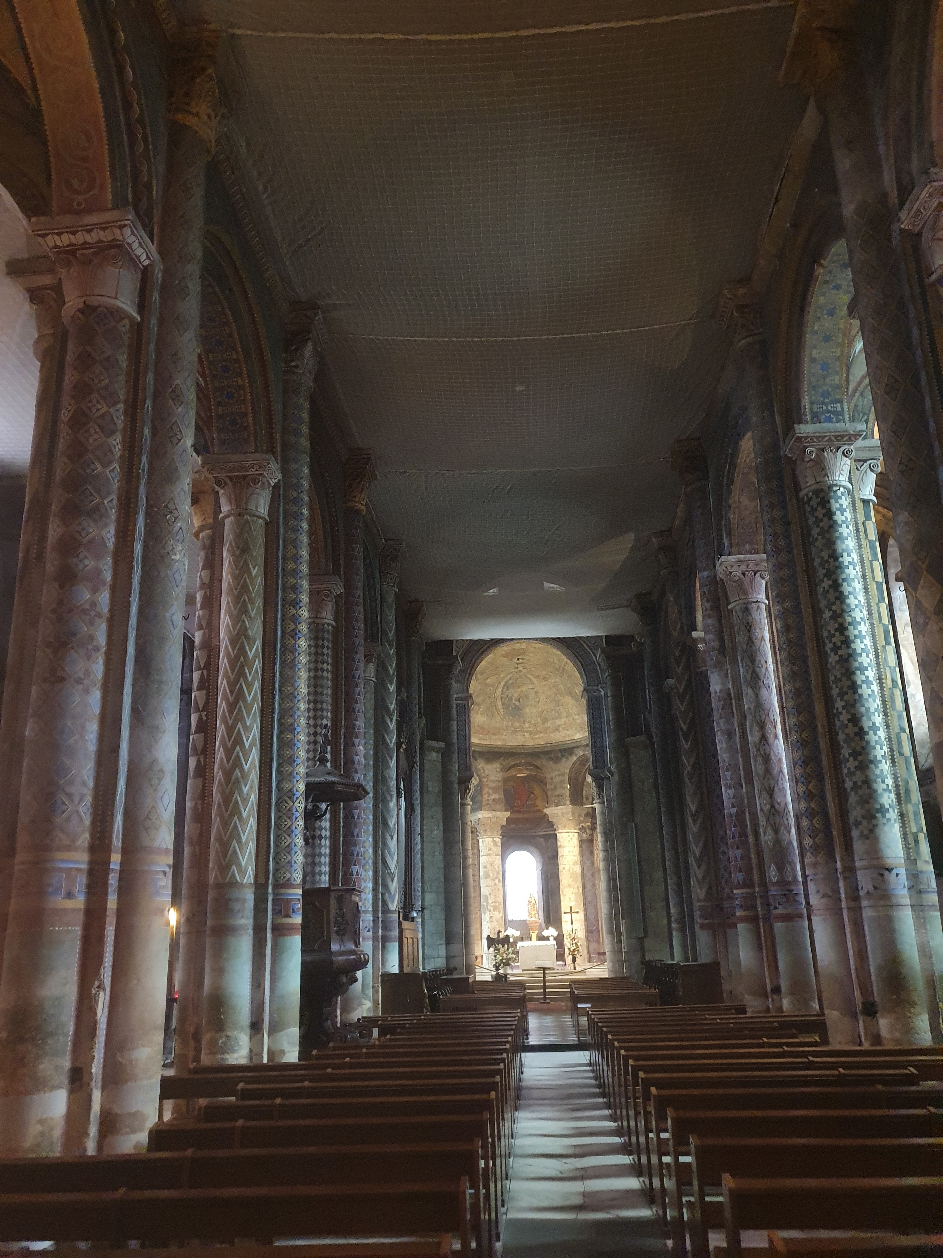 Belle eglise romane avec une architecture typique. Belles sculptures, interieur impressionnant avec des colonnes peintes et des murs peints. A voir les pylastres sculptés, la nef.