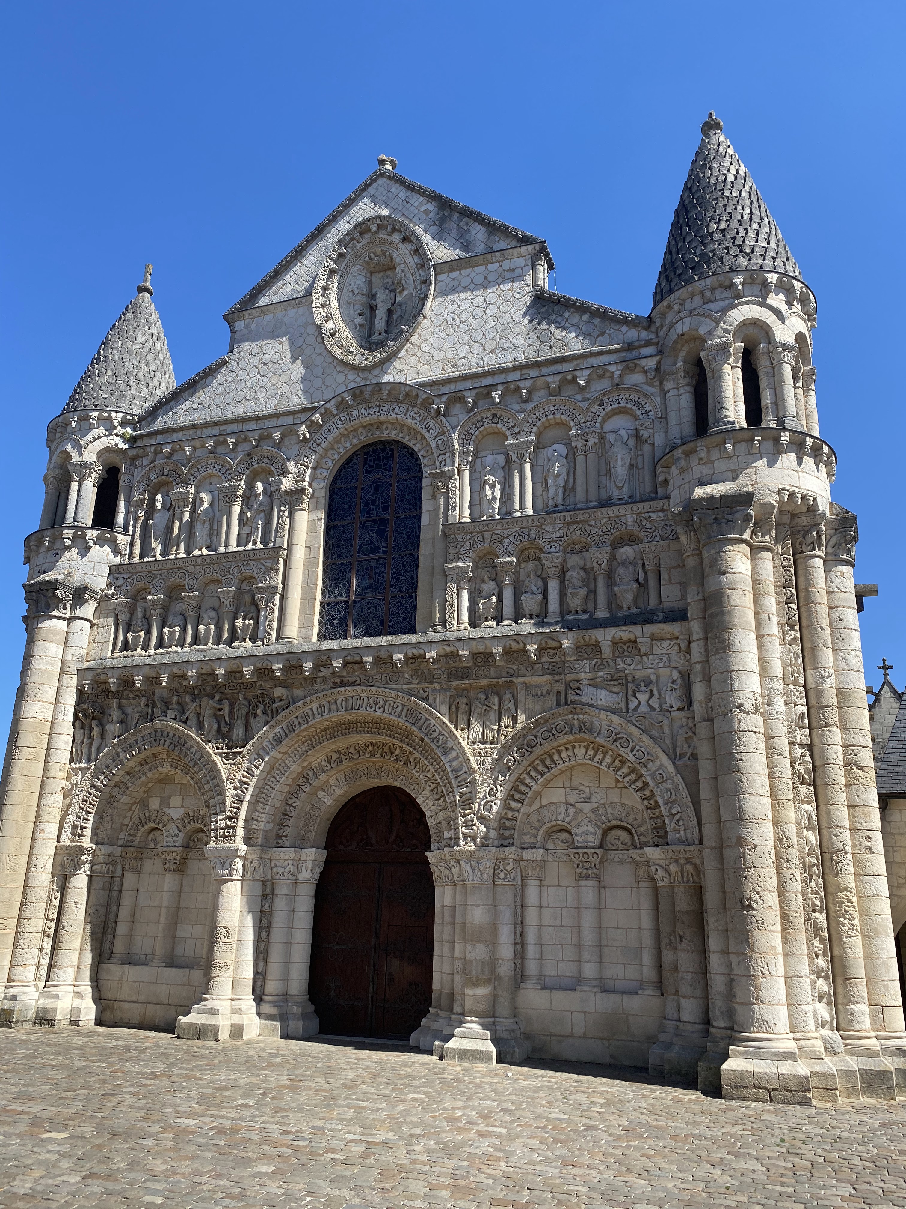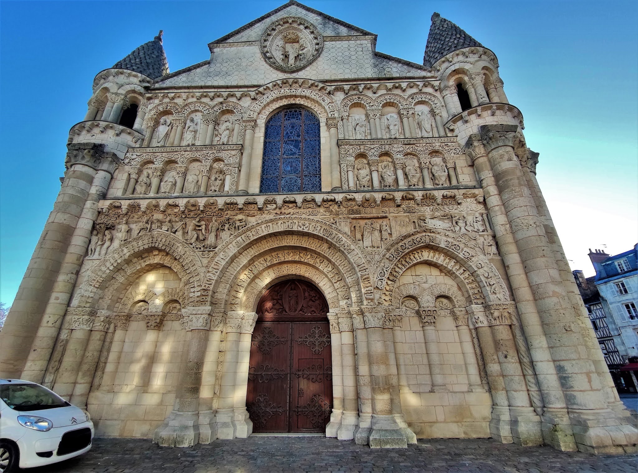 De cette magnifique église, j'avais en mémoire ses clochers recouverts d'écailles de pierres et sa façade écran tels que nous les montre les cartes postales. Se retrouver sur le parvis est une toute autre expérience : les dimensions surprennent, le vent de l'histoire chuchote les heures de gloire et les heures sombres, et aussi la légende des clés et les destructions liées aux guerres de religions. Passionnés d'histoire et d'architecture, cette visite vous enchantera. Pour aller plus loin : office de tourisme et son appli visite Poitiers vous en apprendra beaucoup.