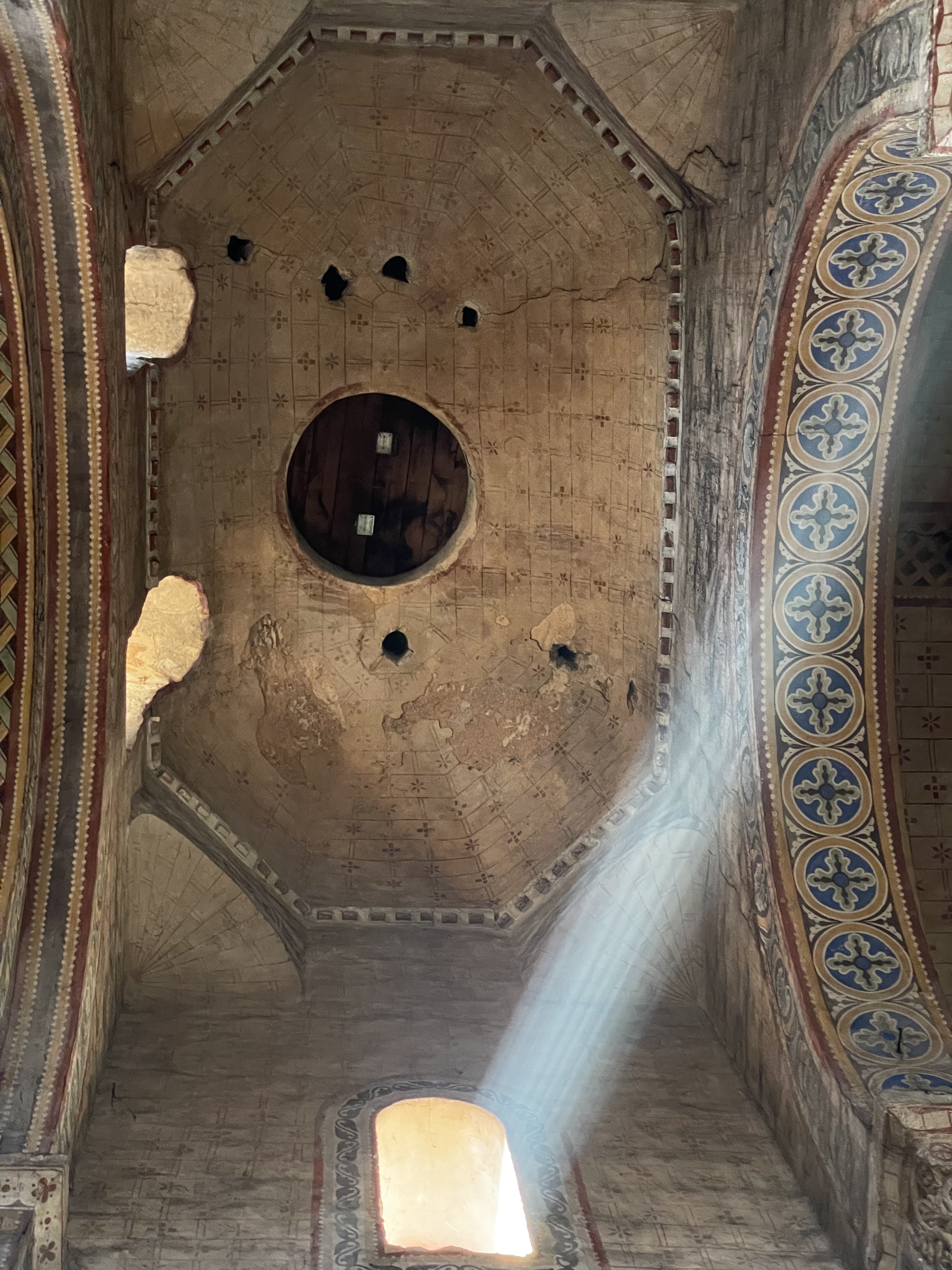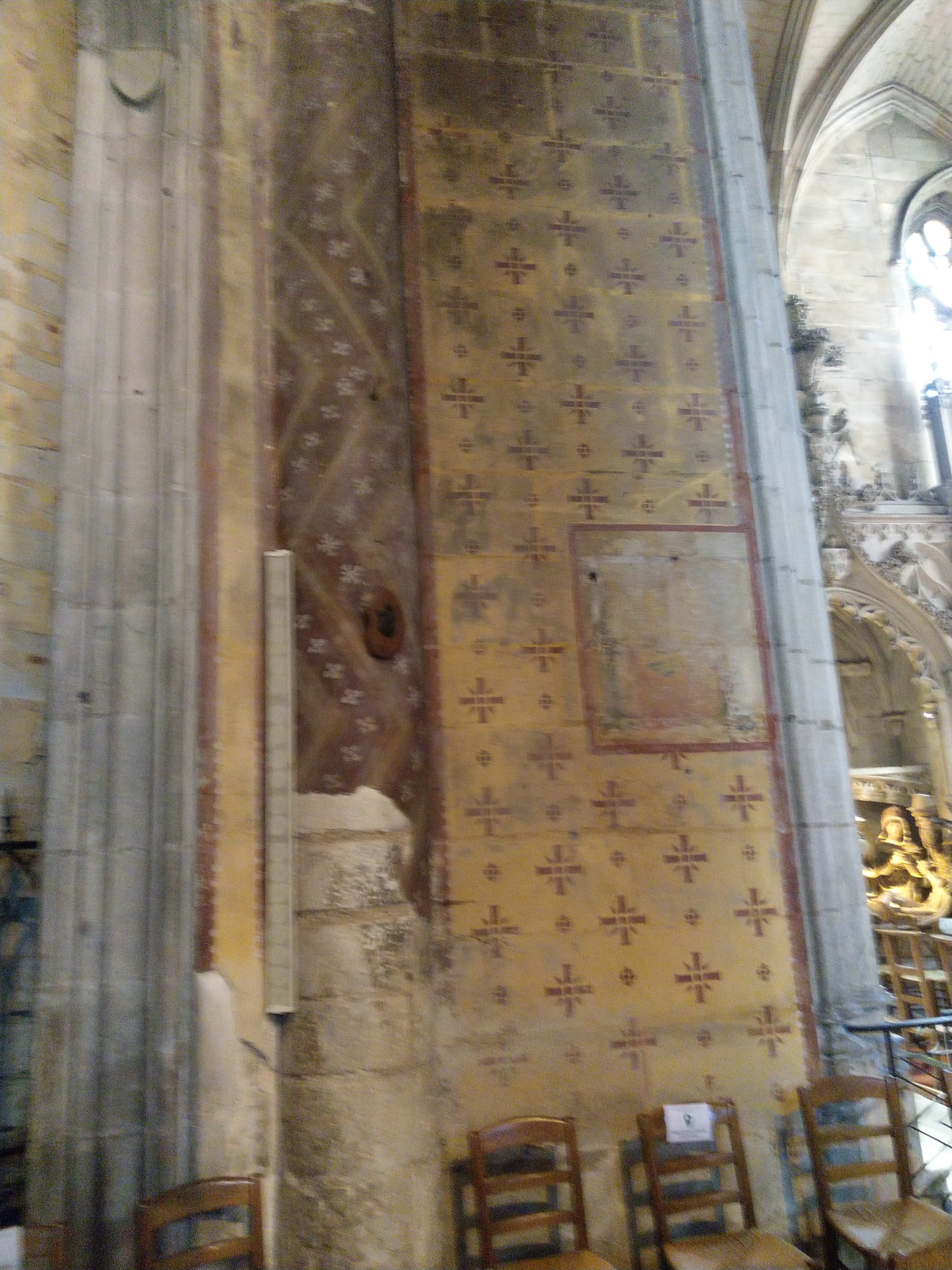 Très belle église où les peintures sur les piliers et les murs sont encore présentes.