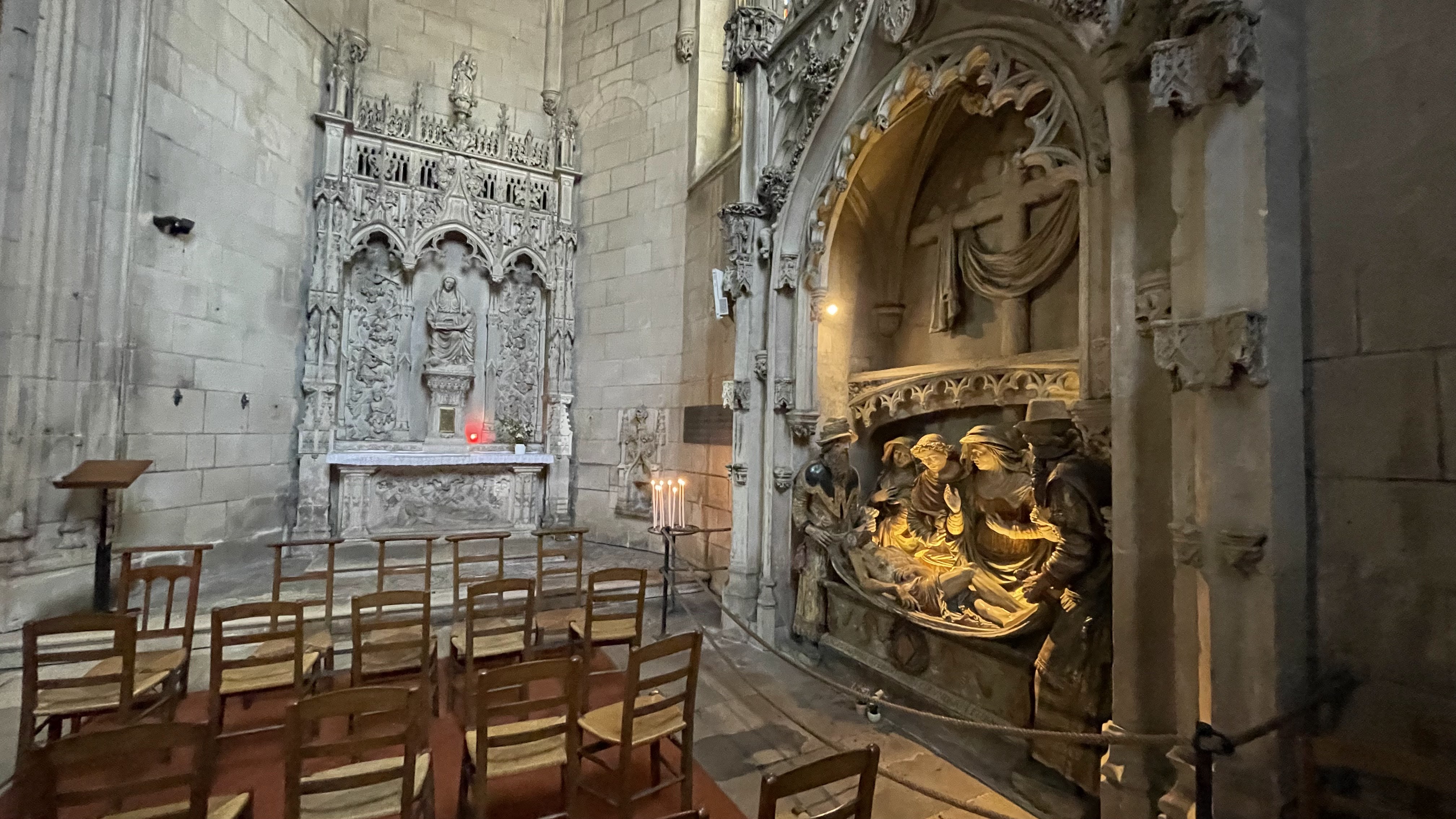 Quelle magnifique église ! Relativement petite (on en est même étonné) mais avec une façade superbement ornée, sculptée, décorée ; et un intérieur qui, quoique probablement un peu trop refait, donne une idee de ce que ca devait être à l'origine. Et de belles sculptures dans les chapelles.