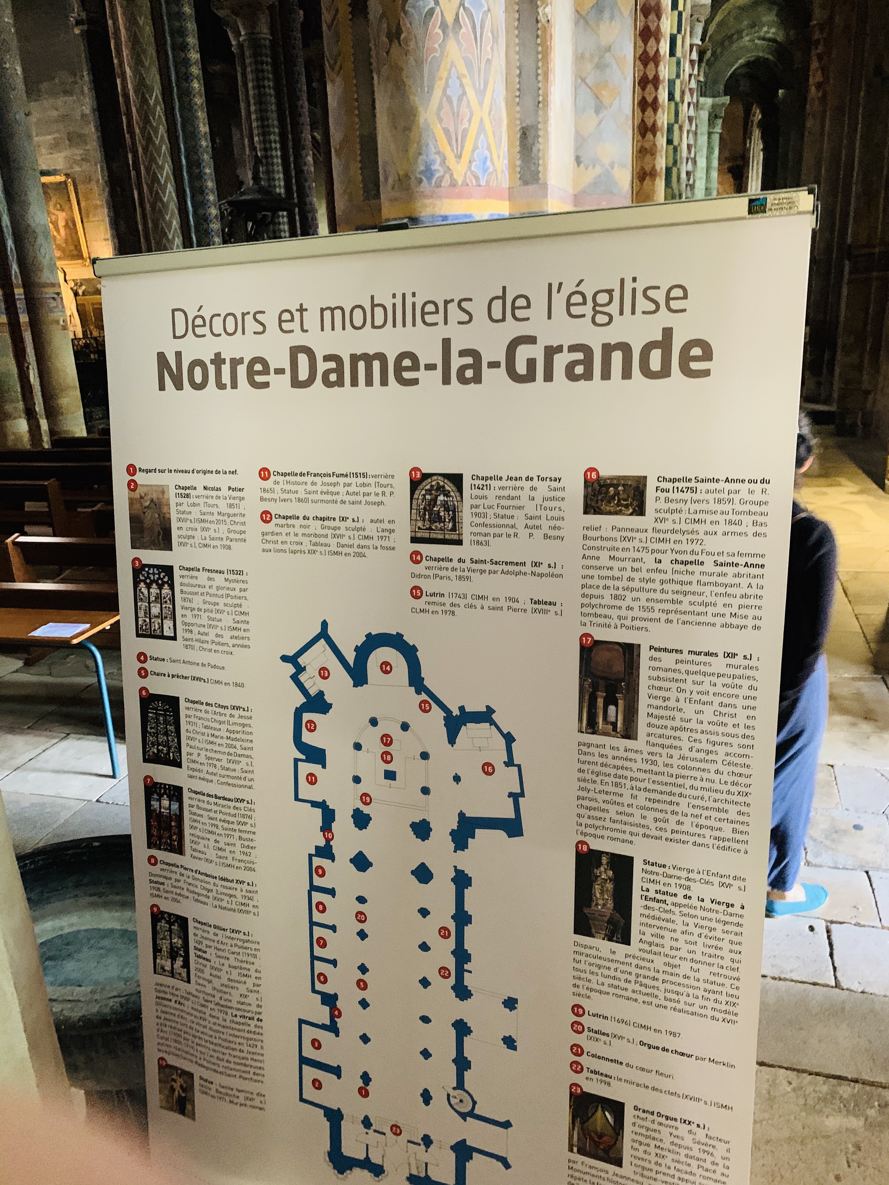 Belle église avec des guides papier et des panneaux explicatifs de l'histoire de ce magnifique bâtiment.
