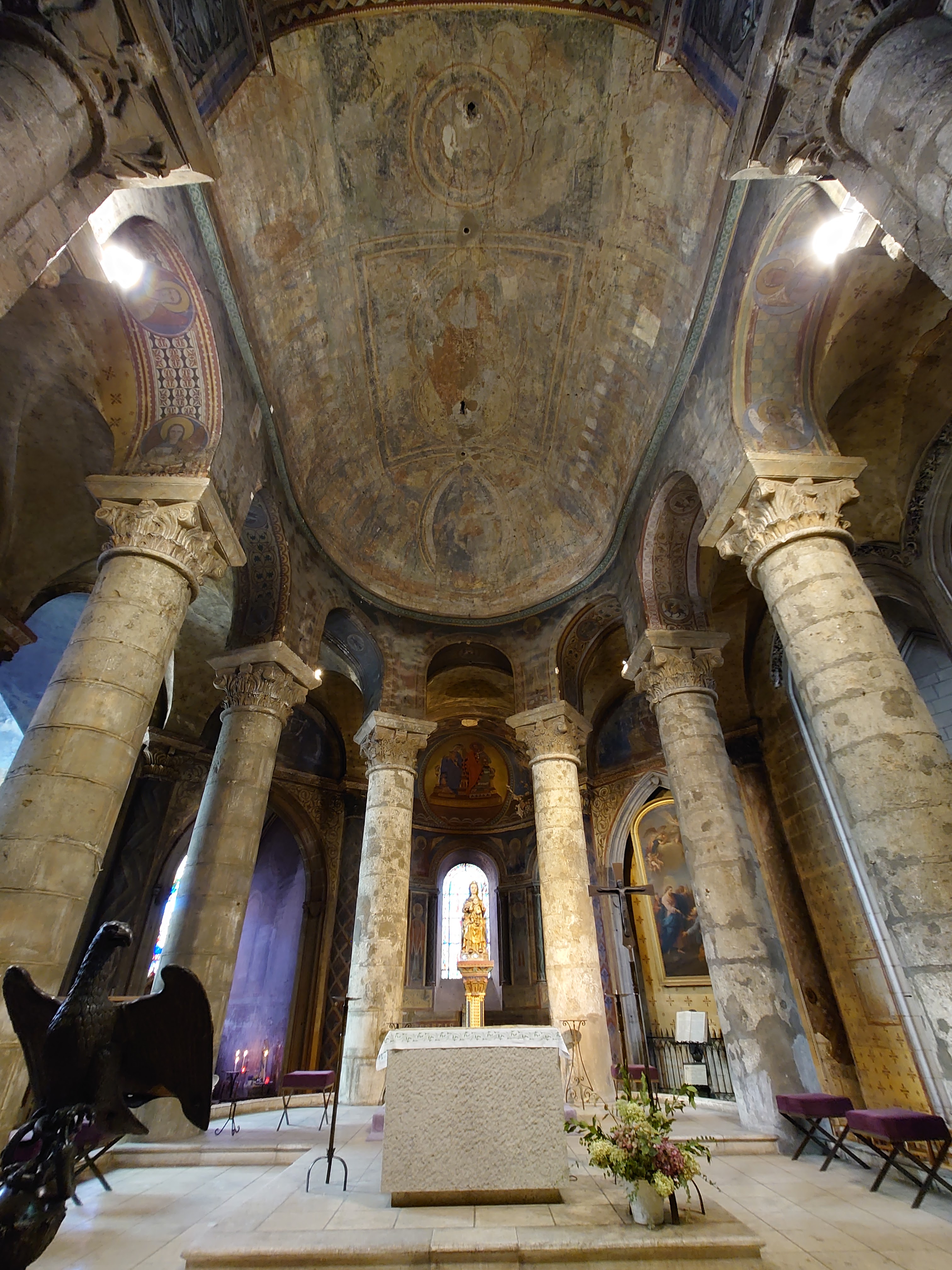 Les fresques murales ont été totalement restaurées voici une petite 15aine d'années. L'effet est saisissant et nous renvoie au temps des premiers fidèles... on voit avec nos yeux ce qu'ils pouvaient contempler. Et le cadre médiéval à lui seul sur la Place Charles De Gaulle est une invitation à la flânerie. Les locaux XIXème de la très prestigieuse faculté de droit sont également splendides. Visibles par l'arrière aussi depuis le parvis de la médiathèque François Mitterrand.