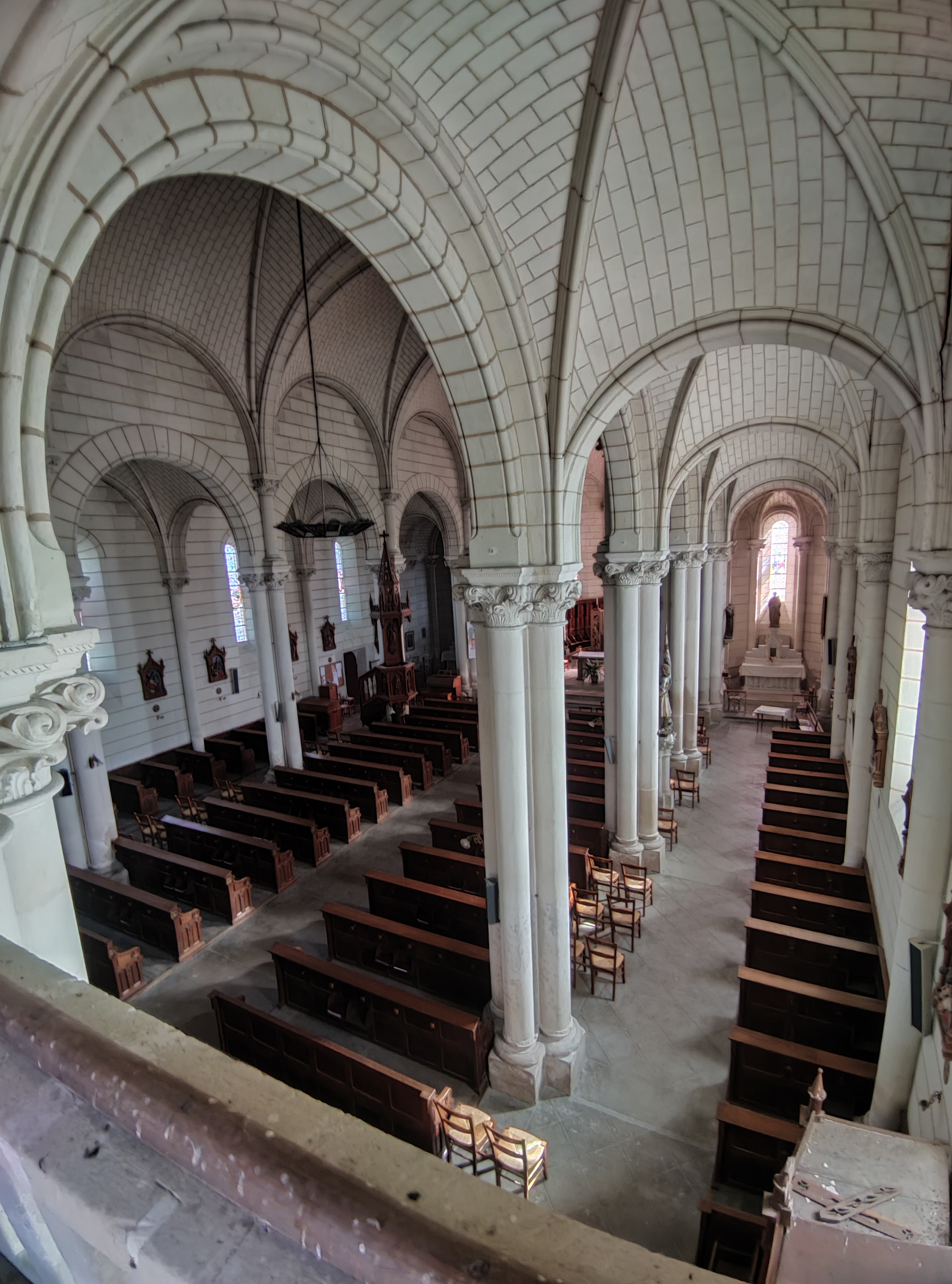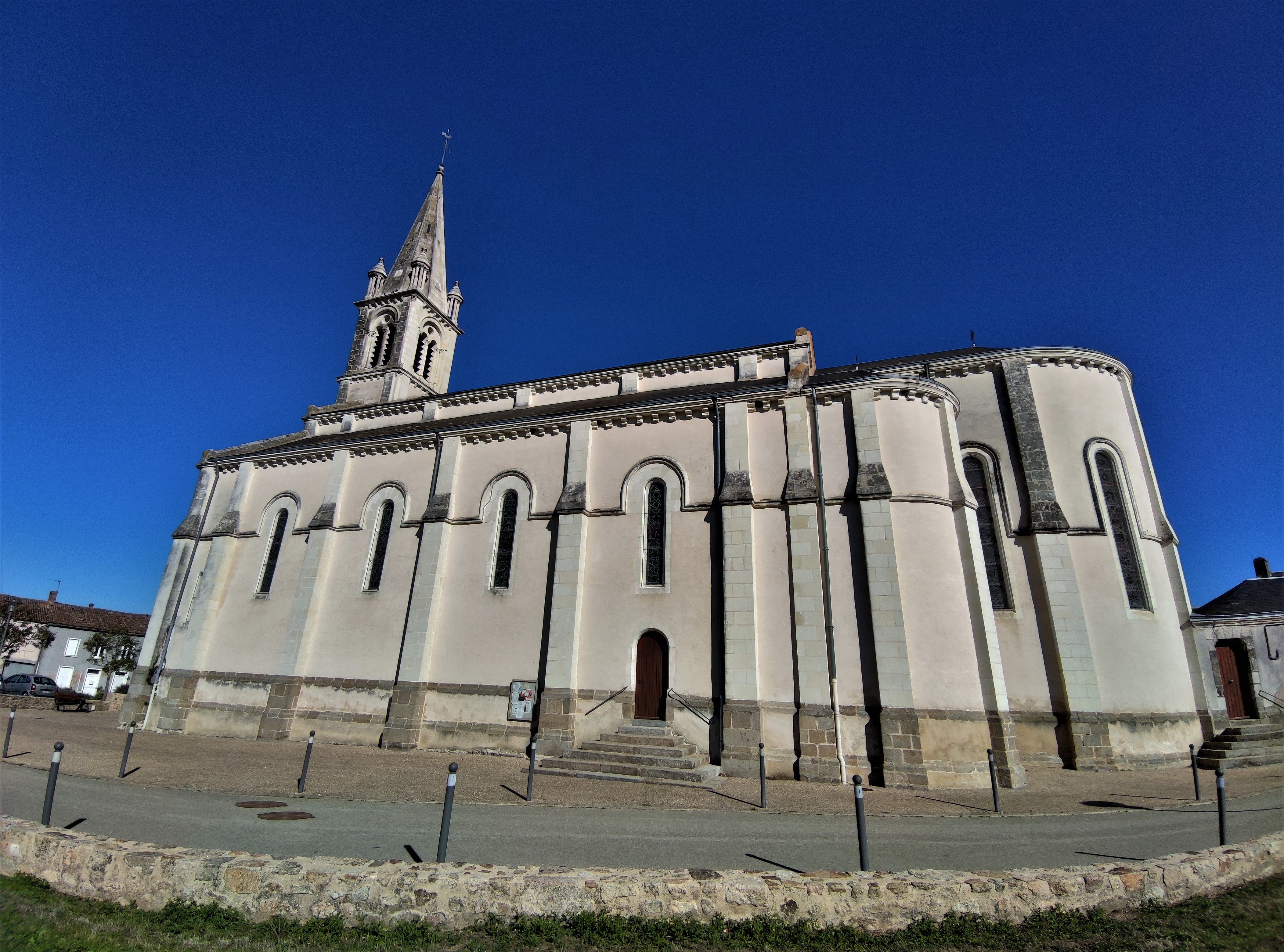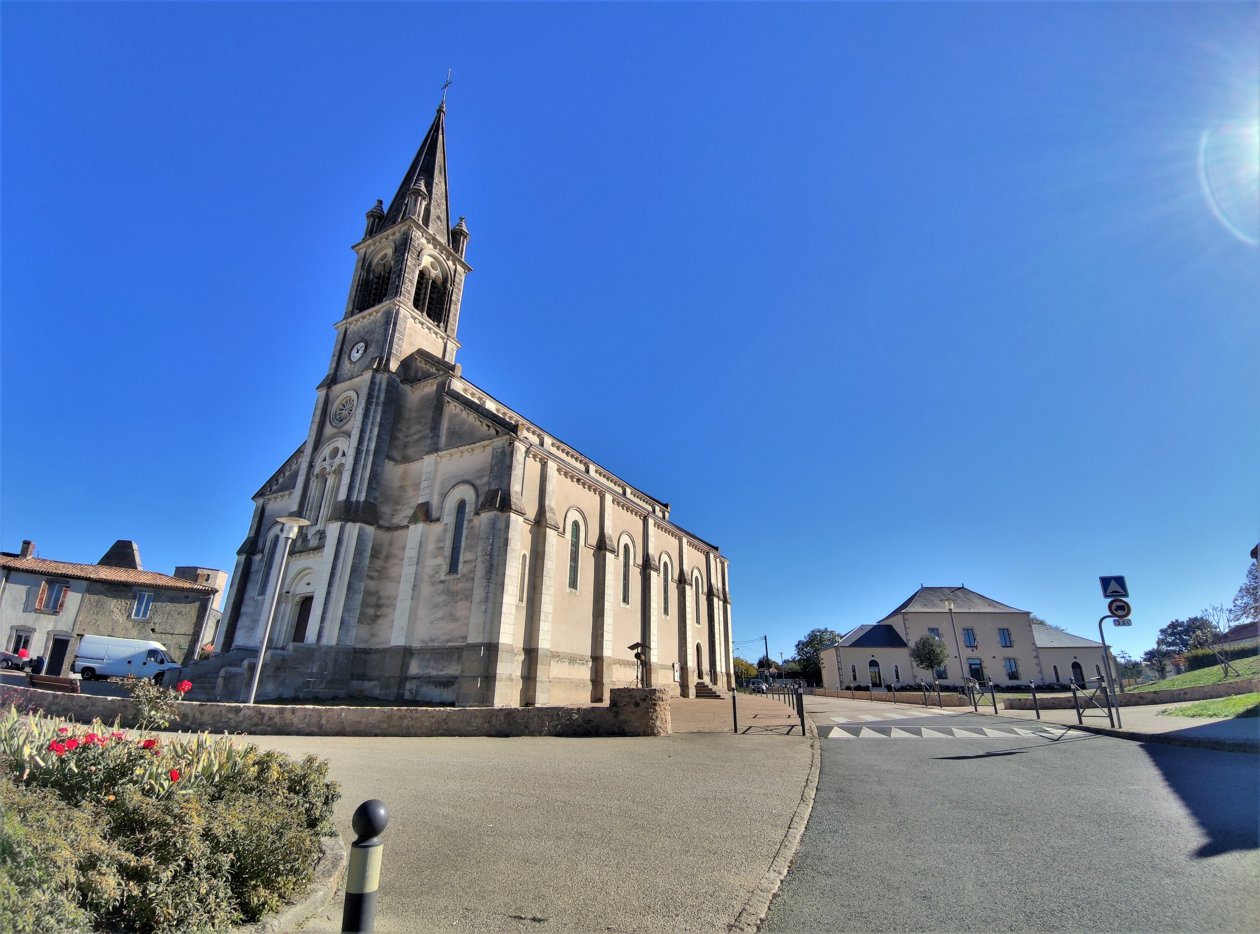 Une belle église du 19ème qui remplaça une église du 11ème, détruite en partie pendant les guerres de religions. L'ancienne église, délabrée, était devenue trop petite, un projet de reconstruction fut envisagé dès 1870. De projets refusés à un projet validé, la construction commença en 1880. Pendant la durée de l'édification du nouvel édifice, l'ancienne église recevait toujours les cérémonies religieuses. Le chantier dura 20 ans, quelques désaccords entre l'architecte et l'entrepreneur retardèrent la réalisation. Église ouverte et accueillante, elle se prête à toute activité spirituelle. La nef à 3 vaisseaux est voûtée en croisées d'ogives et éclairée par des ouvertures en plein cintre. Église parfaitement orientée, on entre par un clocher porche qui déborde à l'Ouest. L'abside du sanctuaire prolonge les 2 travées du chœur, les 2 absidioles la travée de chaque chapelle. Le maître autel et les vitraux à médaillons du 20ème sont superbes.
