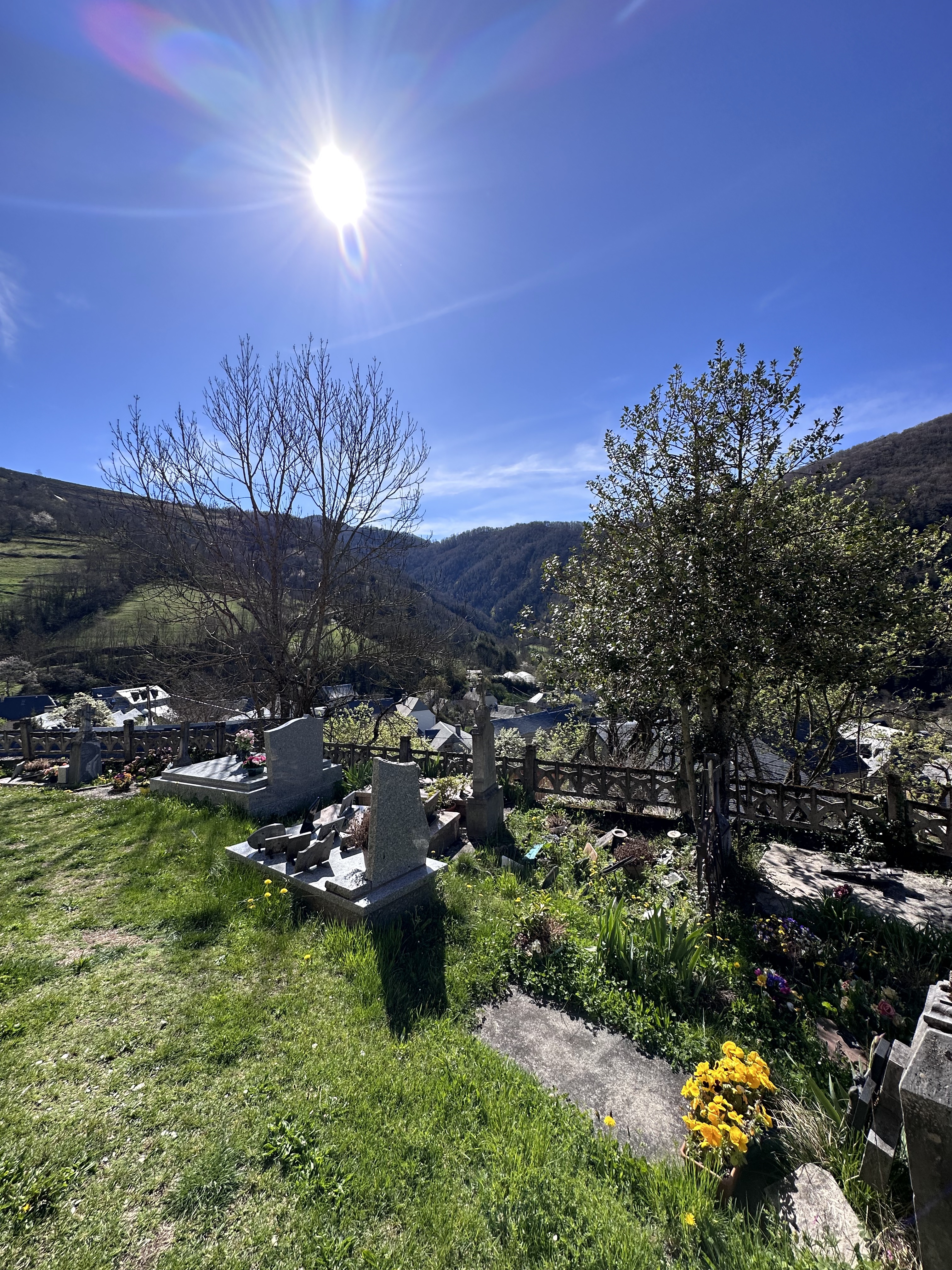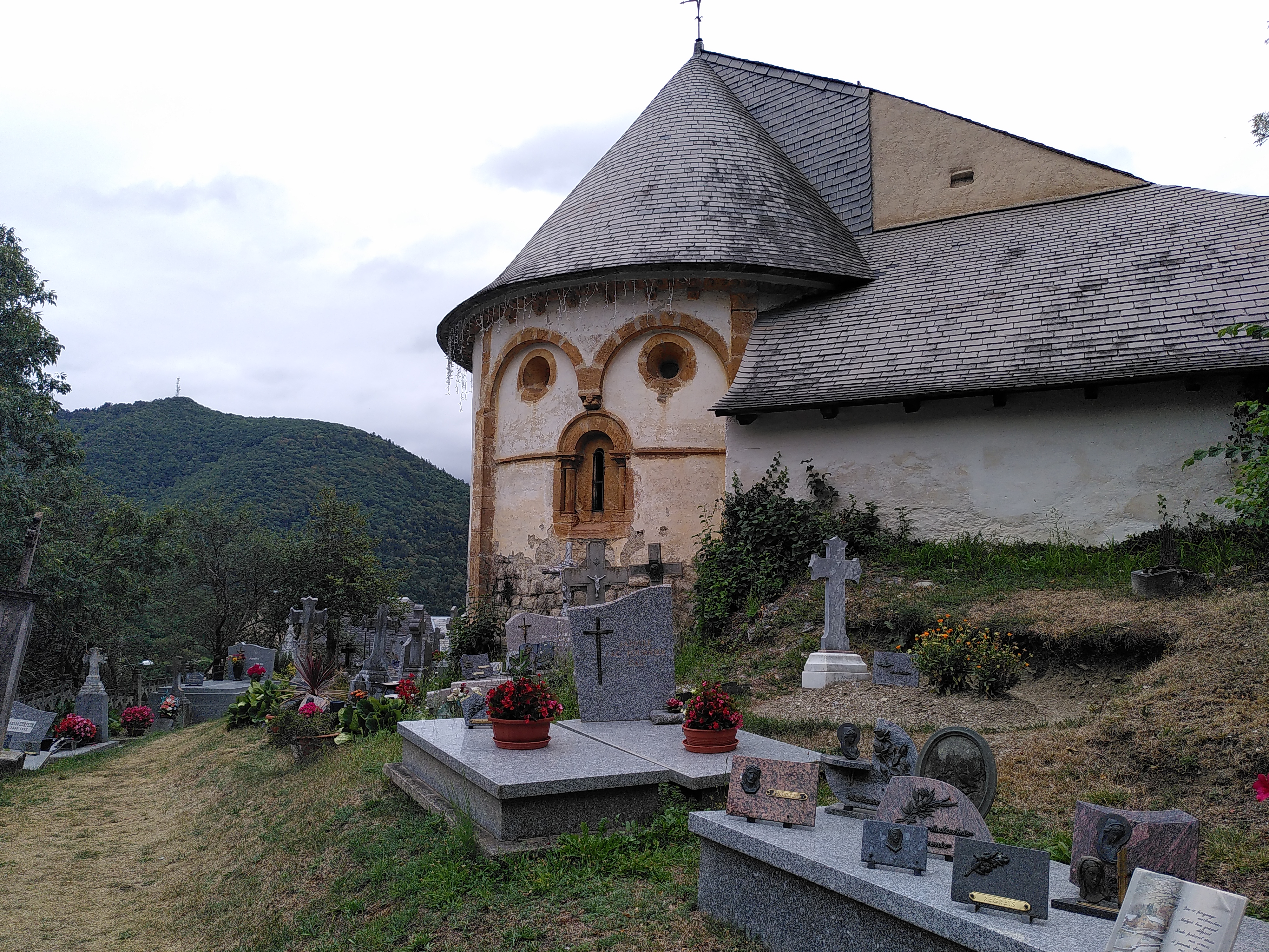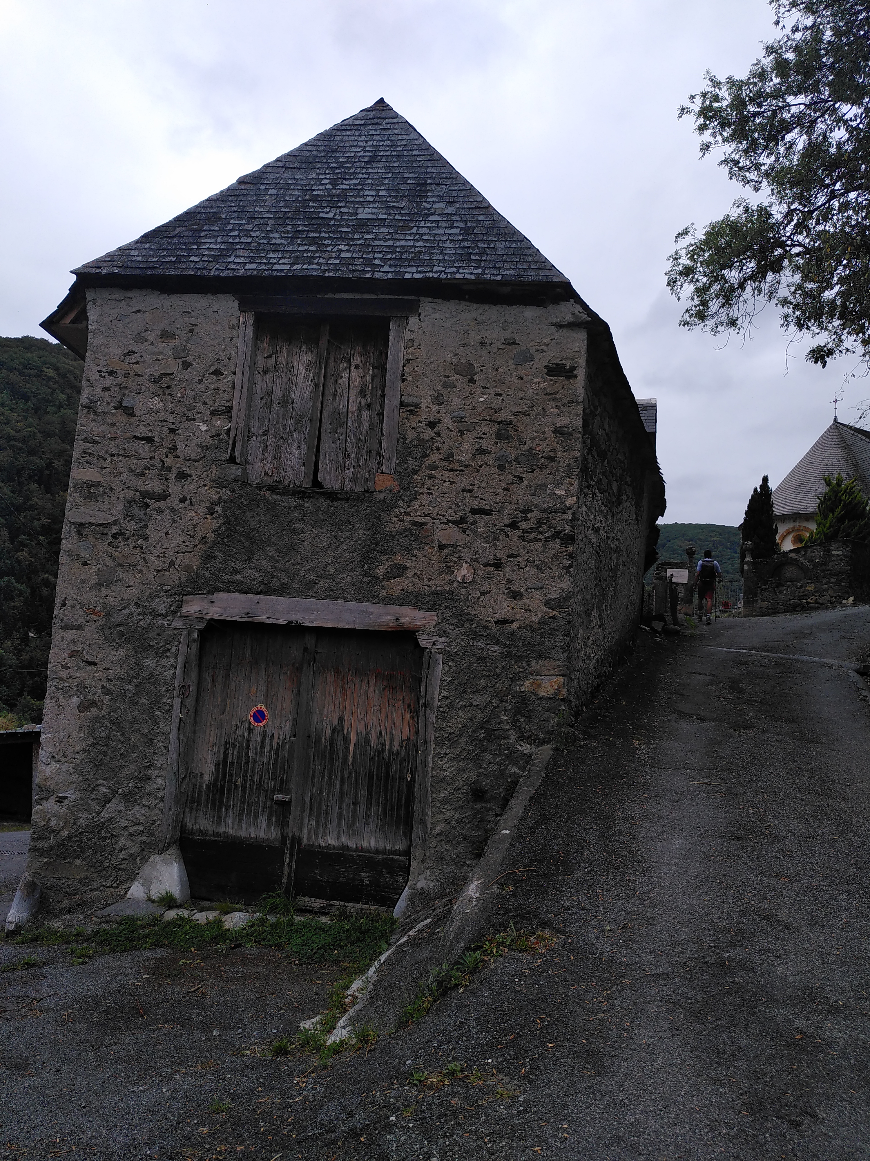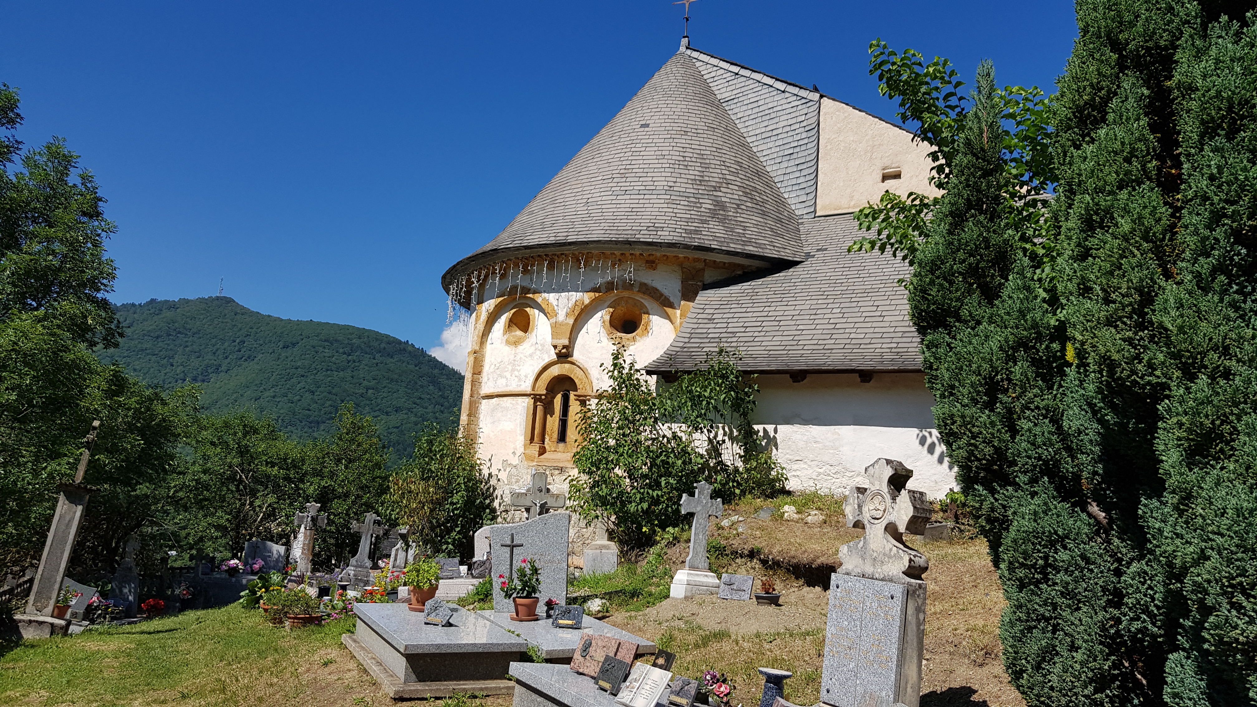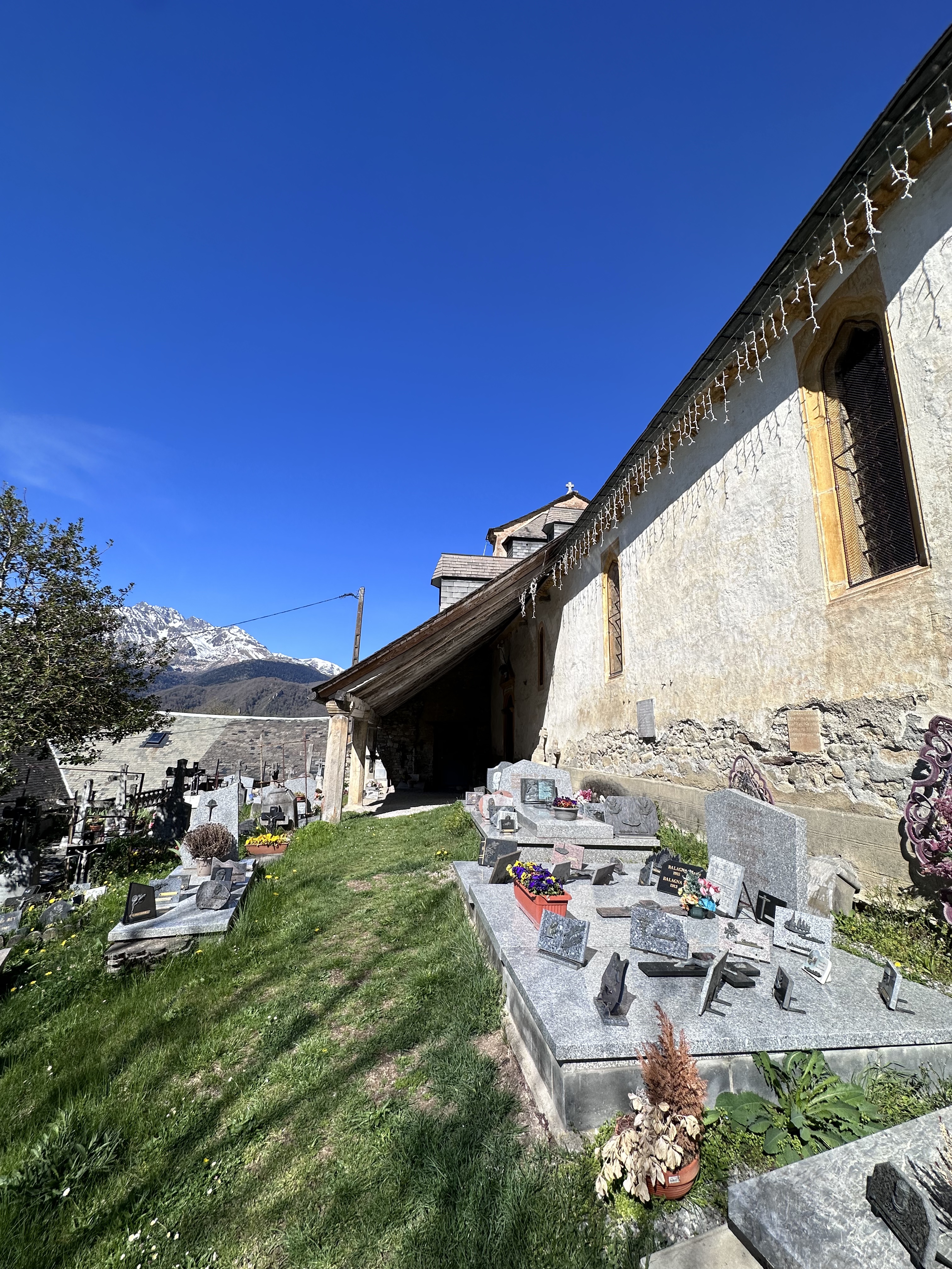 Au détour d'un chemin montant de Arreau, petite église possédant des caractéristiques liées à la région. Dommage de ne pouvoir la visiter. Vue sur la vallée et la ville d'Arreau.