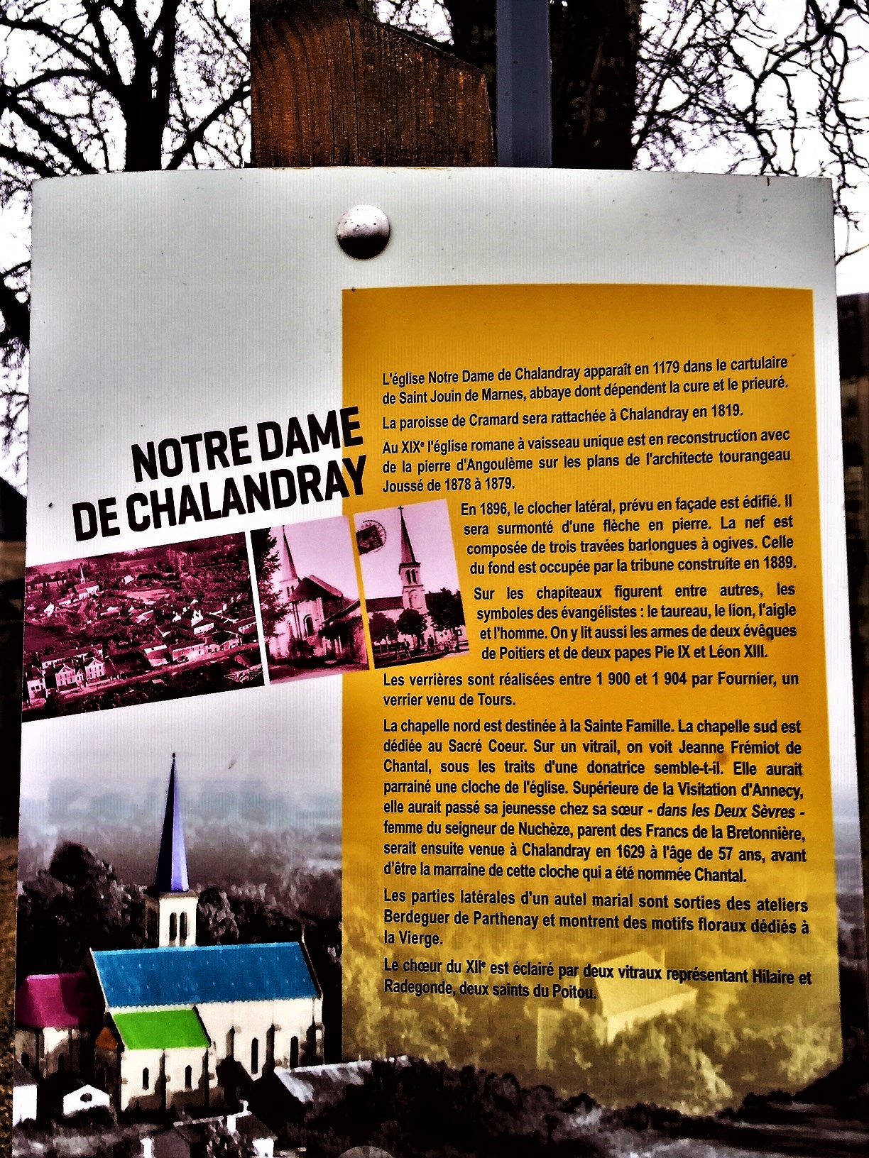 Voici toutes les informations sur le Église catholique Église Notre-Dame (Paroisse Sainte Clotilde) qui ce trouve au Rte de l'Église, 86190 Chalandray (86). Sur cette fiche vous trouverez les photos, l'adresse, les horaires d'ouverture, le numero de téléphone et les avis clients.Vous pouvez églement rédiger un avis si vous le souhaitez en bas de page.