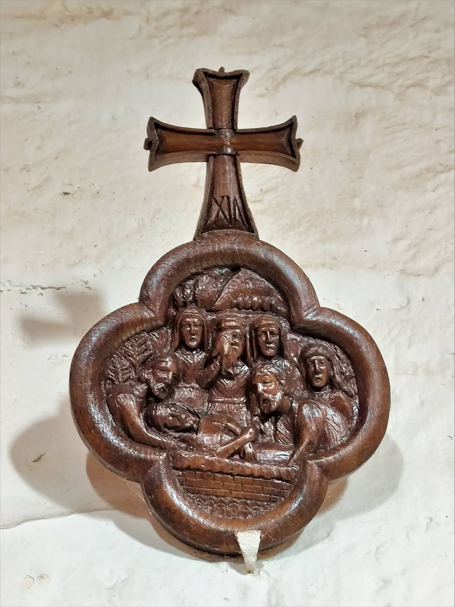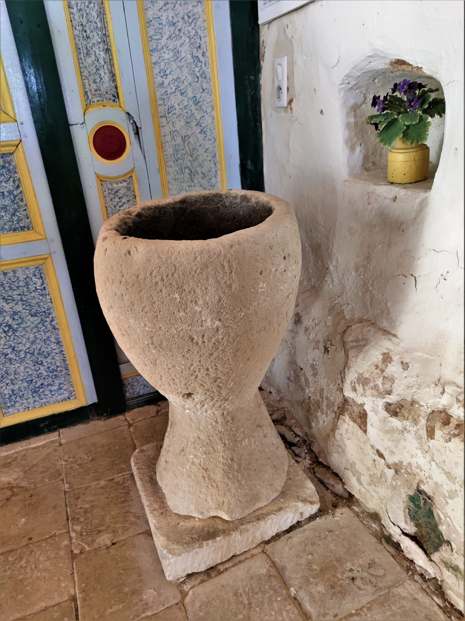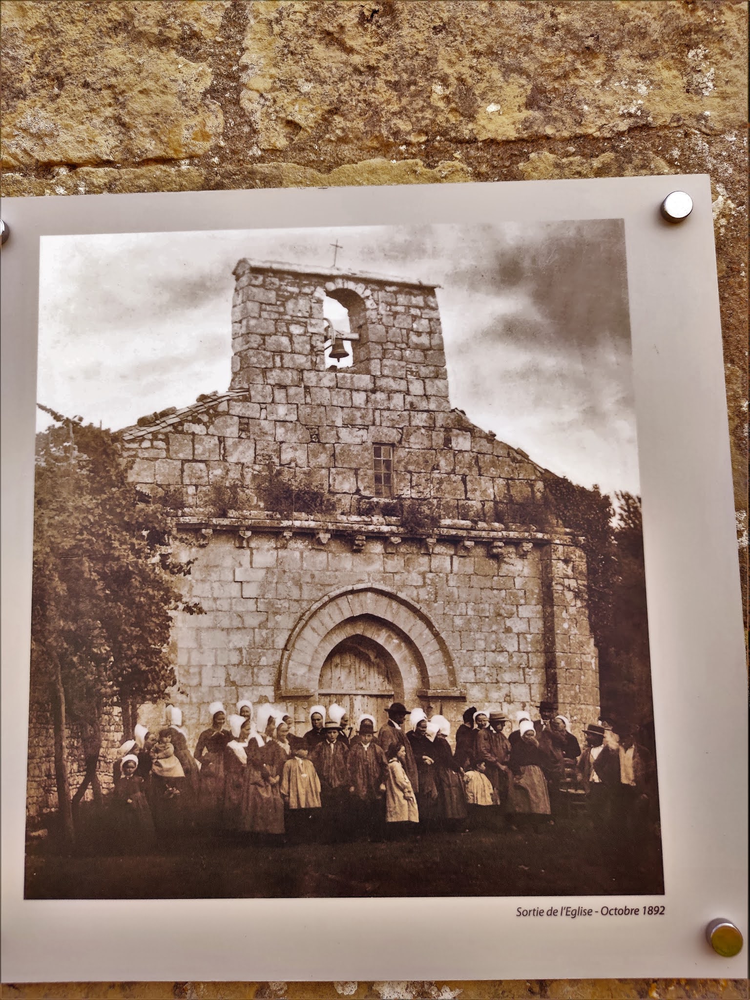 Construite au 11ème ou 12ème siècles, on peut difficilement imaginer une église plus simple. La nef rectangulaire est construite de belles pierres de taille, seul le chevet est en moellons, il a été reconstruit. Une abside, aujourd'hui disparue, dont il reste quelques départs de maçonnerie, abritait dans un premier temps le sanctuaire. L'intérieur surprend par sa simplicité mais aussi par les couleurs d'un tabernacle qui occupe tout le fond de l'église, réservant un espace, faisant sans doute office de sacristie. Ce retable, joliment coloré, possède aucun décor sculpté, renforçant la simplicité de l'édifice. Autel et tabernacle sont du même style, l'ensemble apporte des notes fraiches et joyeuses. Une cuve baptismale en forme de coquetier est placée à l'entrée de la nef. Le chemin de croix, ouvrage local sans doute, présente chaque station sculptée dans un morceau de chêne. Le clocher-mur, situé au dessus de la façade possède une cloche de 1723. Le cimetière attenant est a visiter sans faute, une fameuse lanterne des morts du 12ème siècle est a découvrir. Des pierres tombales, décorées de motifs Mérovingiens, y sont également mises en valeur. Elles furent datées, dans un premier temps, du début 6ème siècle. Certains estiment aujourd'hui leur conception à l'époque médiévale. Le débat est ouvert, une certitude, elles sont magnifiques.