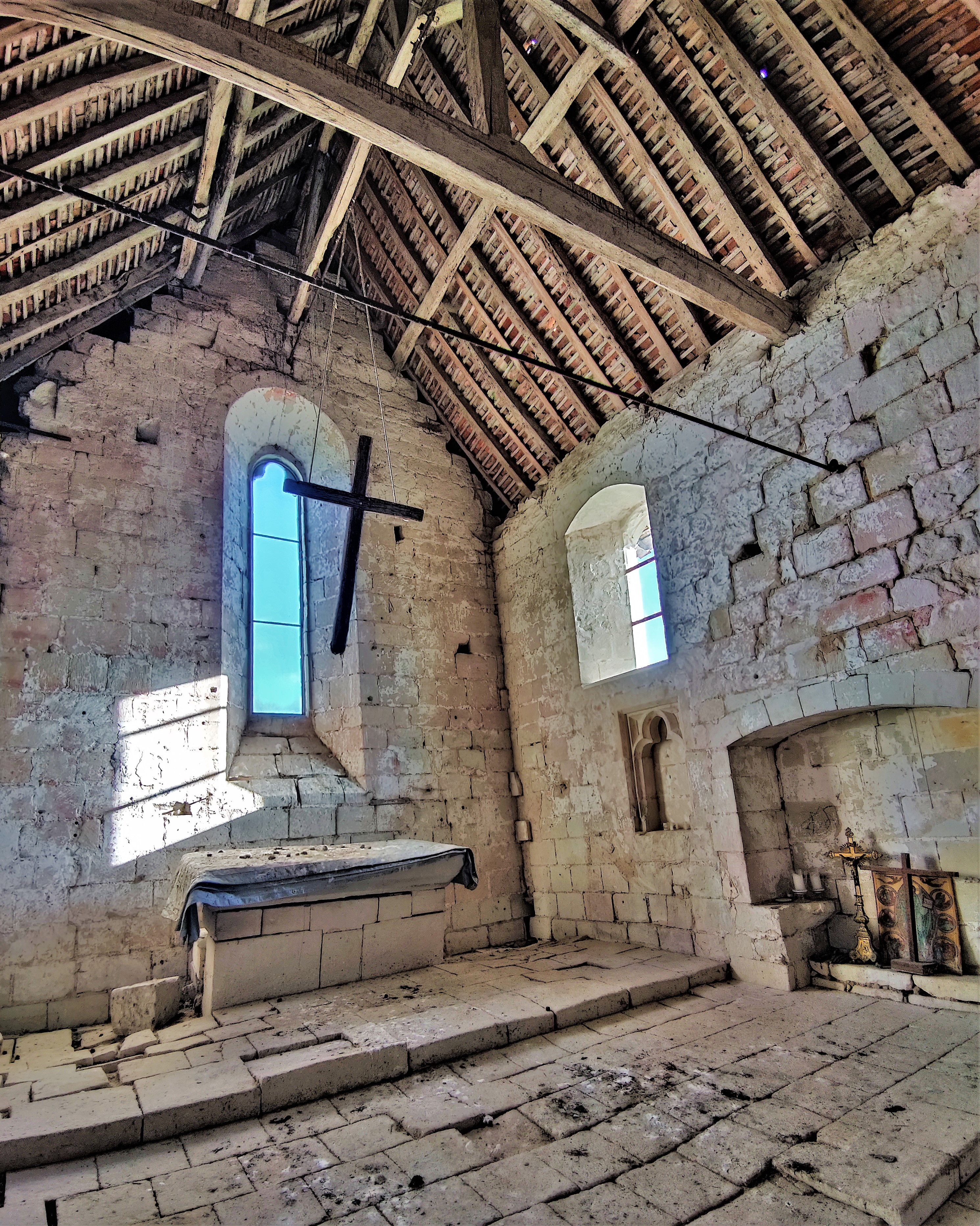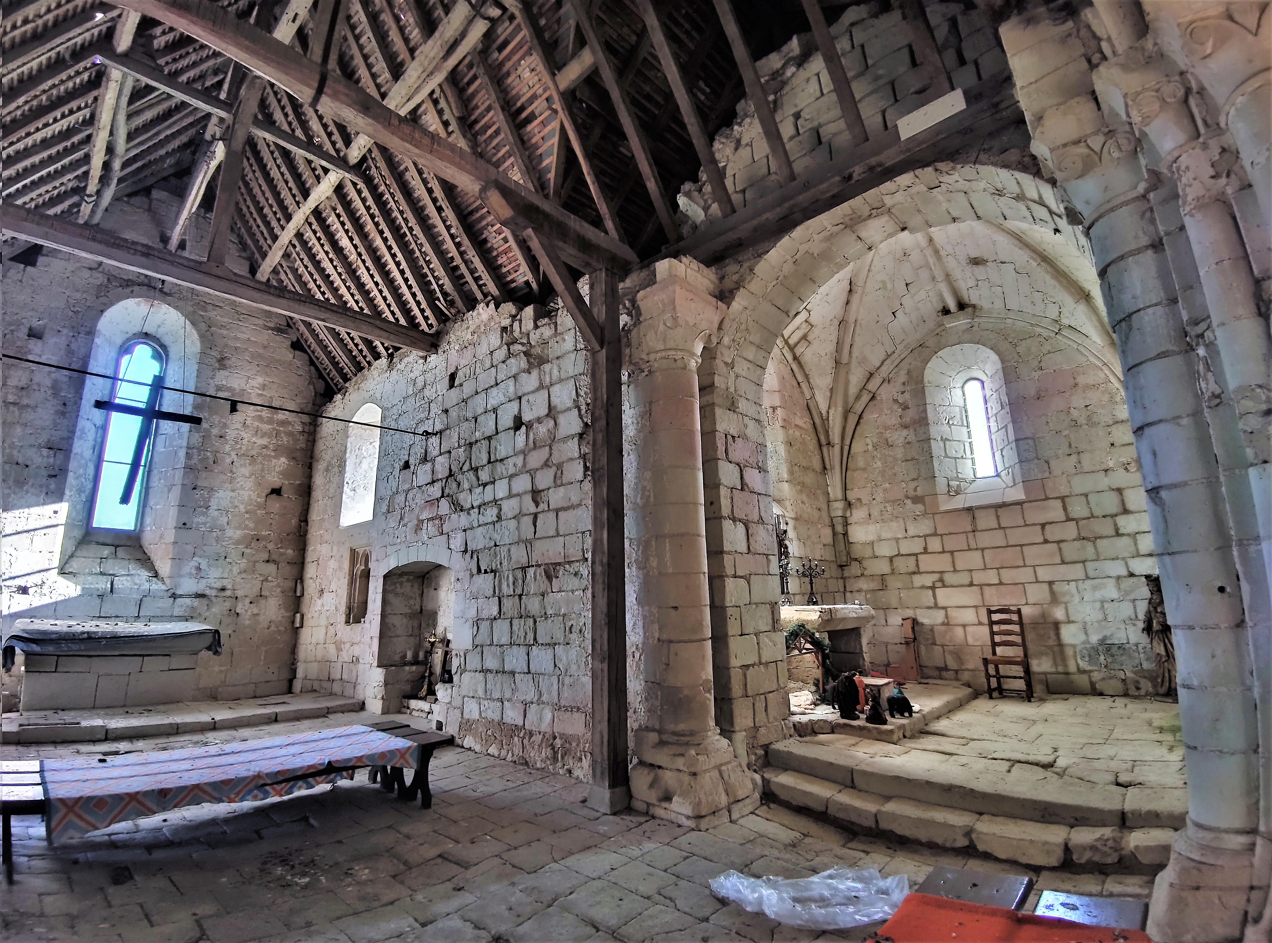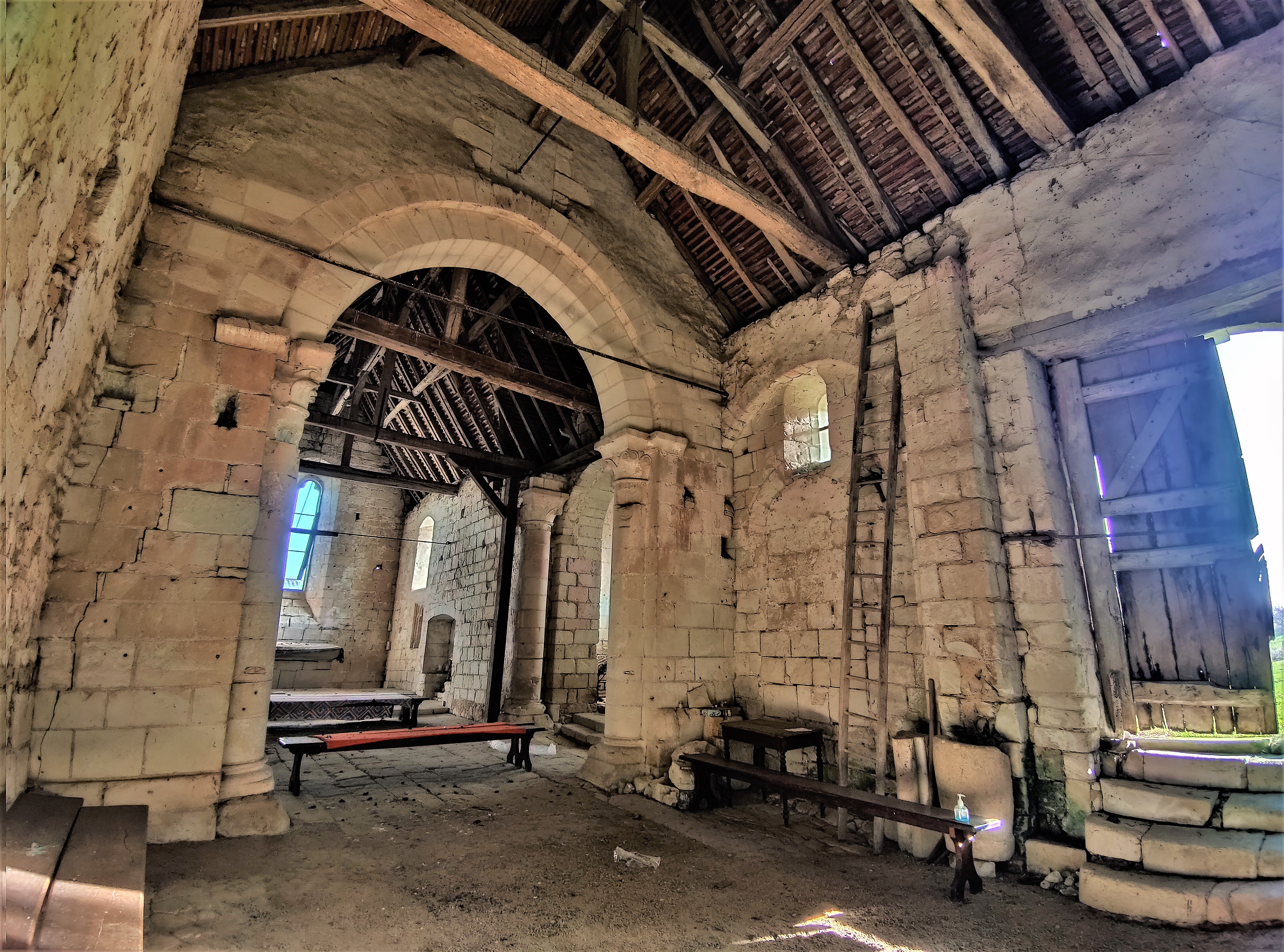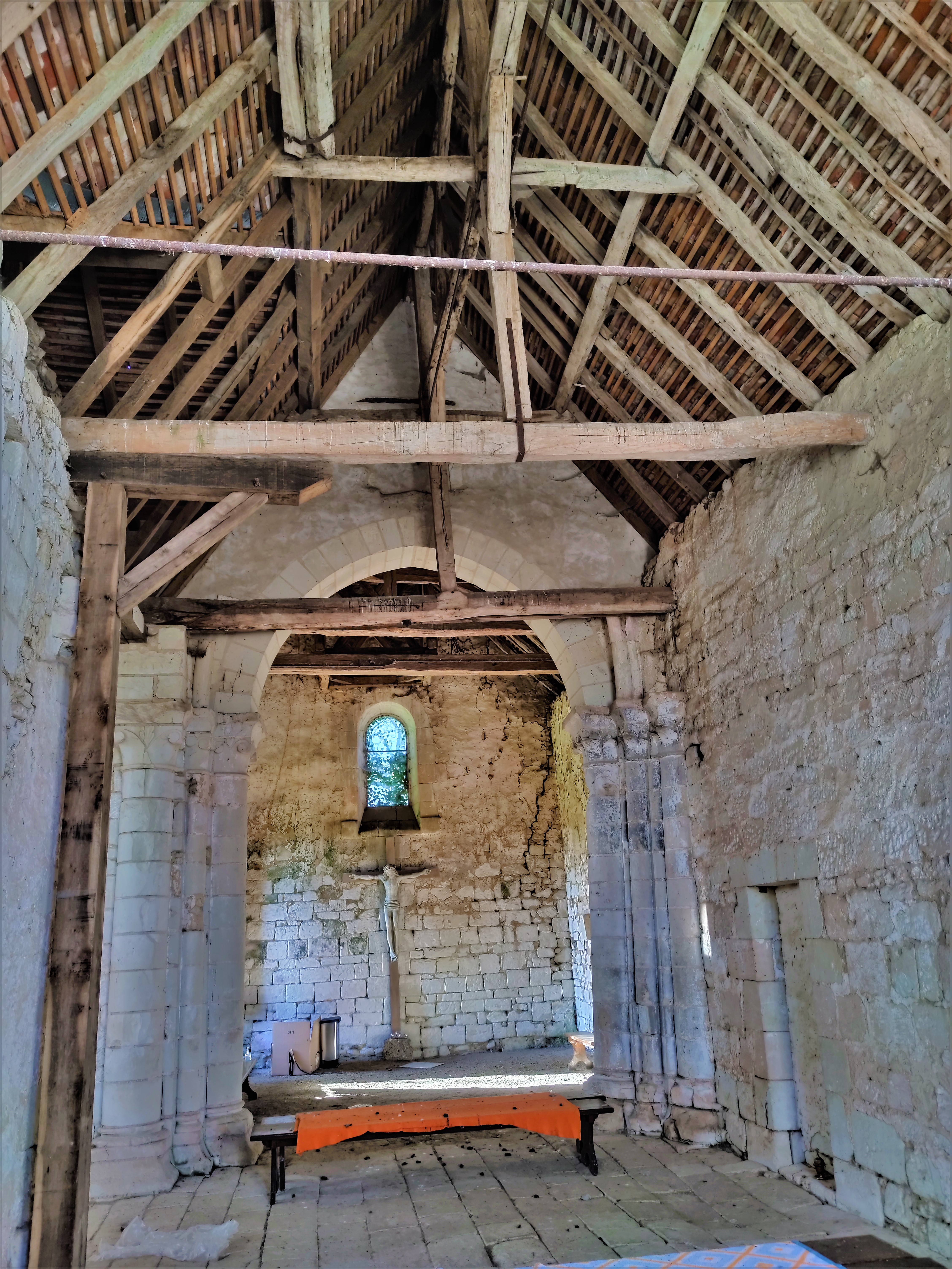 Construite au 12ème siècle, c'est l'ancienne église paroissiale du bourg d'Asnières. Conséquemment au rattachement de cette paroisse à celle de Monthoiron, l'église fut vendue. Consacrée à des usages agricoles, puis abandonnée, elle fut envahie par la végétation. De nouveaux propriétaires, s'appuyant sur l'association qu'ils créèrent, ont entamé un long travail de sauvegarde et de restauration. La Fondation pour la Sauvegarde de l’Art Français a apporté des soutiens financiers, l'église fut inscrite par les M.H. en 1993. Laissée ouverte et accessible aux visiteurs, il est possible d'en faire le tour. C'est avec une certaine émotion que j'ai pénétré dans ce sanctuaire du 12ème modifié au 15ème et 17ème. Une découverte qui ne laissera pas de marbre les amoureux des vieilles pierres.