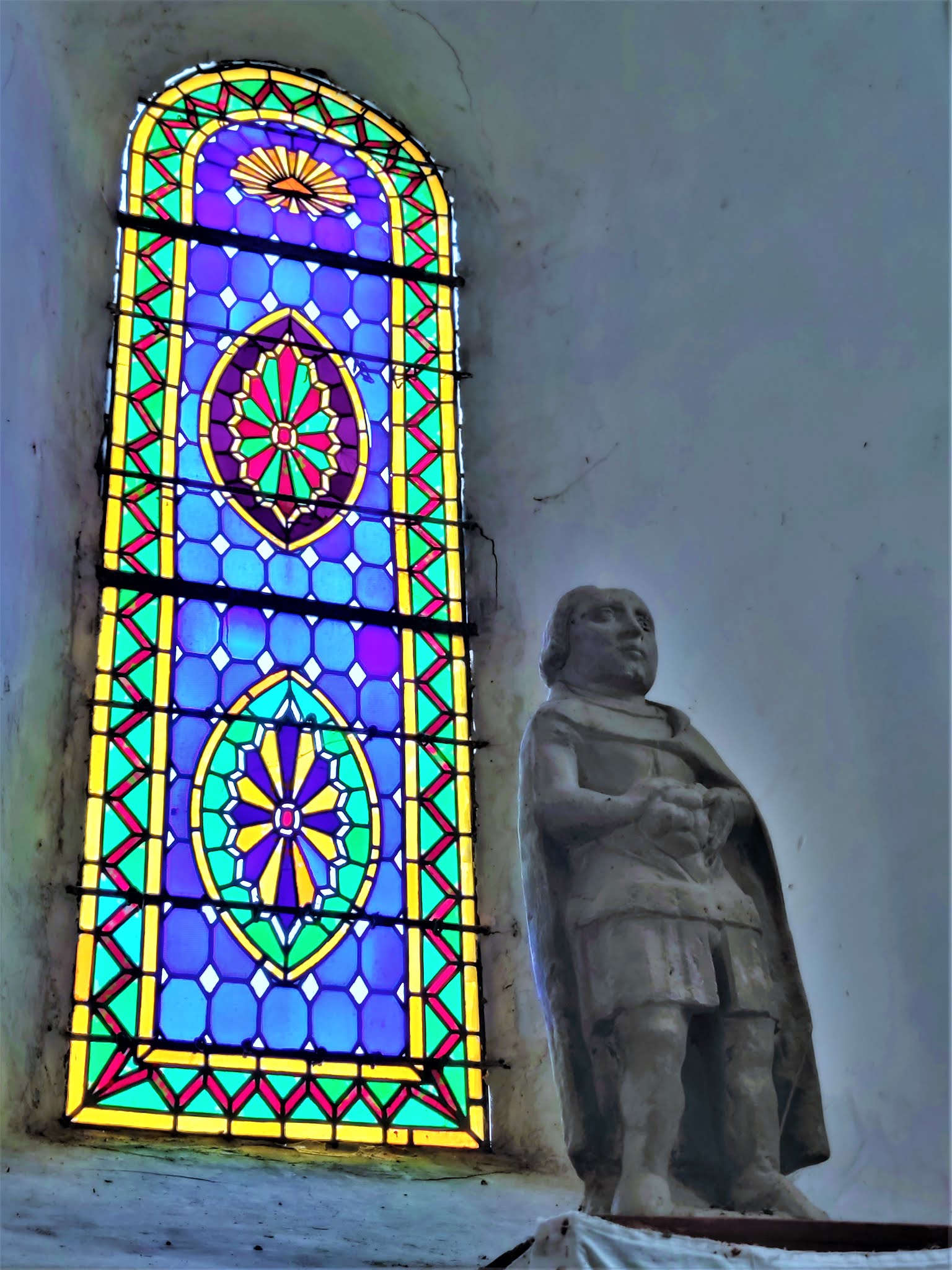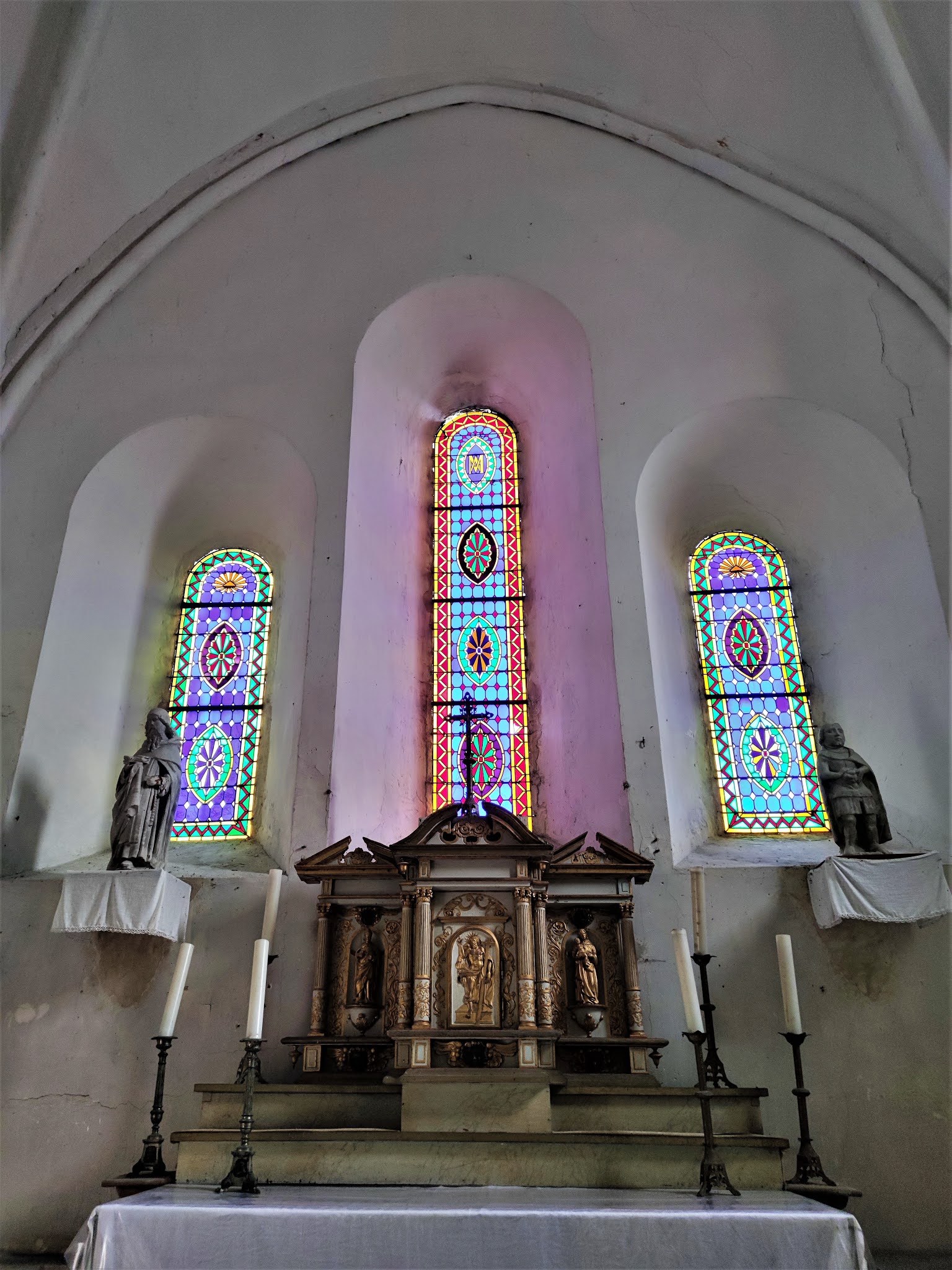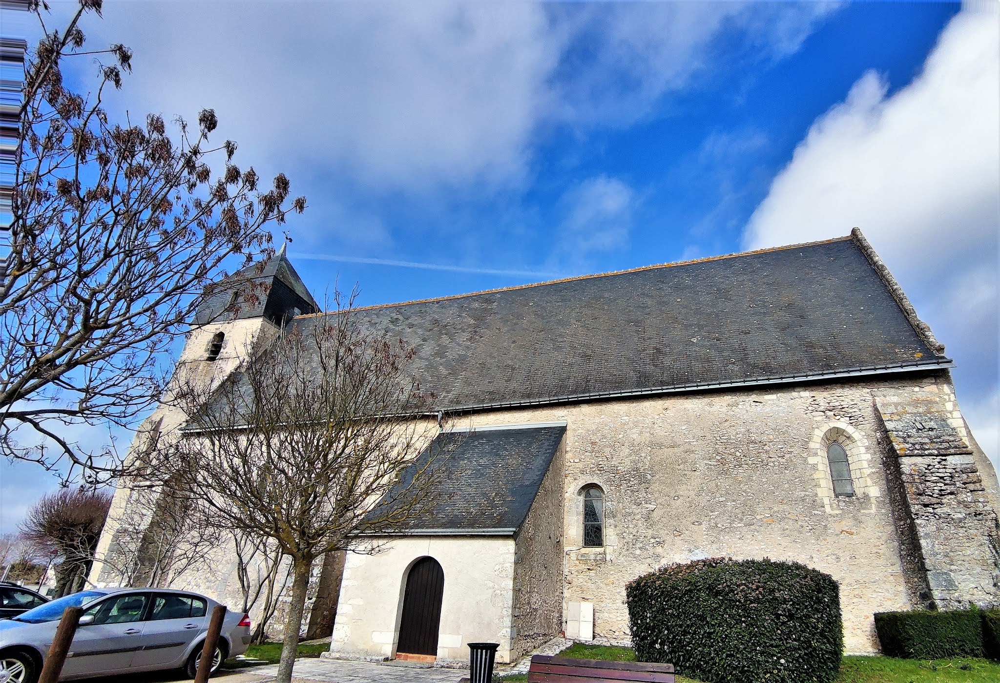 Cette église est ni prestigieuse ni somptueuse, mais y pénétrer, c'est faire un voyage de mille ans dans le passé. Au 10ème siècle, une chapelle, devenue église paroissiale fut édifiée. Au 12ème siècle, la nef et le chœur de l'église actuelle furent construits, en réutilisant pour partie le mur Nord de l'édifice primitif. Le clocher fut ajouté au 13ème ou 14ème siècle, contre la façade Ouest qui fut préservée. Le portail roman se découvre lorsque l'on pénètre dans la partie basse du clocher-porche. Cette église est ni prestigieuse ni somptueuse, mais y pénétrer, c'est faire un voyage de mille ans dans le passé. J'ai apprécier cette visite, le triptyque du chœur à chevet plat, ainsi que les autres vitraux sont fort beaux. Témoin millénaire de la riche histoire de ce village, histoire à découvrir en détail sur le site de la mairie.