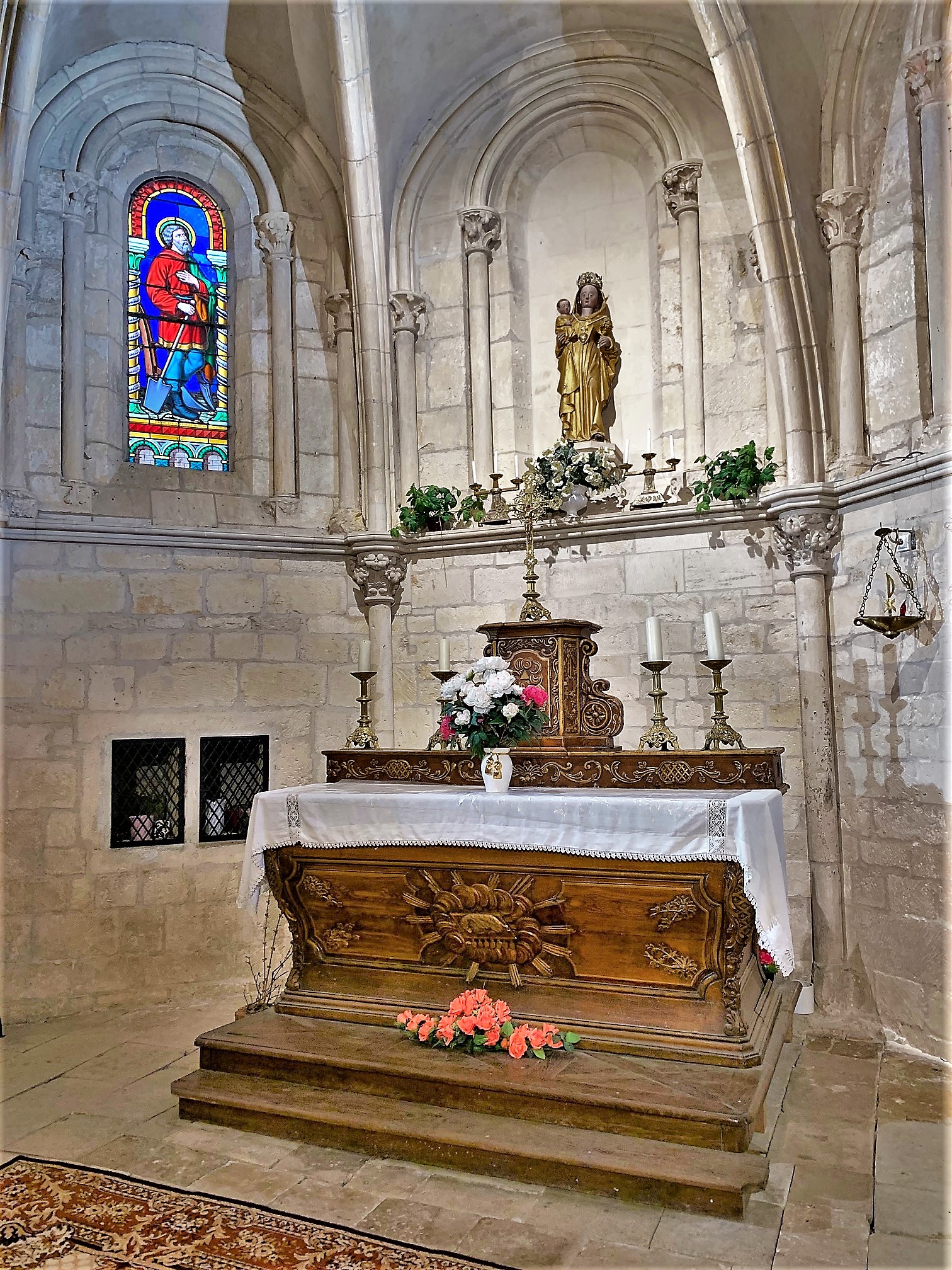 Classée en 1883, cette église fut construite à la fin du 12ème siècle et au tout début du 13ème siècle. Quelques modifications, ouverture d'une baie sur le mur ouest, voûte de la nef, par exemple, interviendront au 15ème ou 16ème siècles. La tour-clocher n'a pas été retouchée et témoigne de l'édifice primitif. L'église est bien conservée, de l'intérieur émane un peu de mystère et le lieu se prête bien à l'intimité. L'architecture romane est visible, on remarque, entre-autres, les impressionnantes colonnes qui séparent la nef des collatéraux ou l'abside soutenue par des contreforts. Des modillons, visages grimaçants et déformés, évoquent peut-être ceux des malades atteints d'adénite, tentant de guérir grâce à l'eau de la fontaine miraculeuse. Cette dernière était supposée soigner cette forme de tuberculose des glandes sous-maxillaires, ou adénopathie cervicale, ou Écrouelles, ou scrofules.