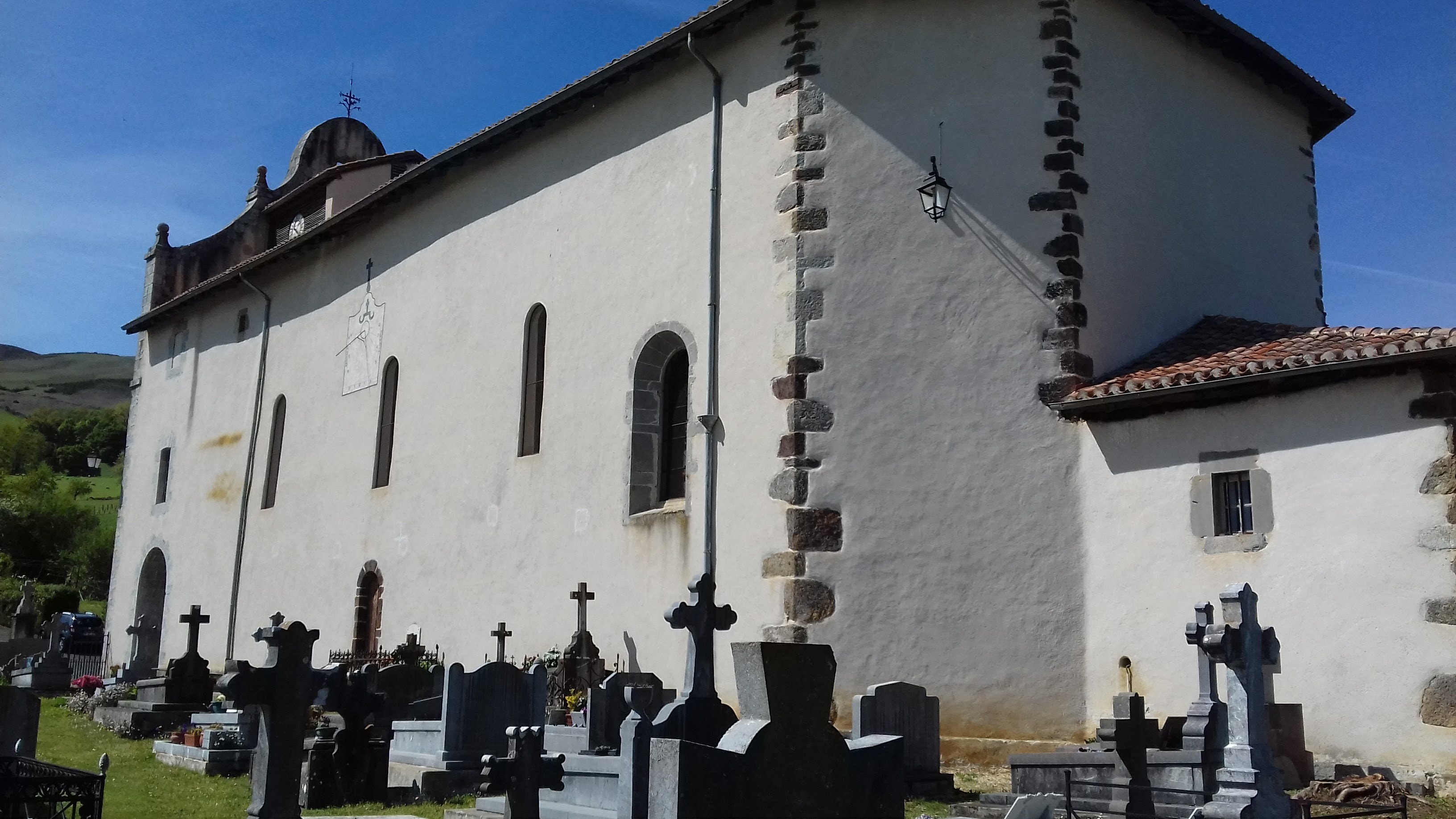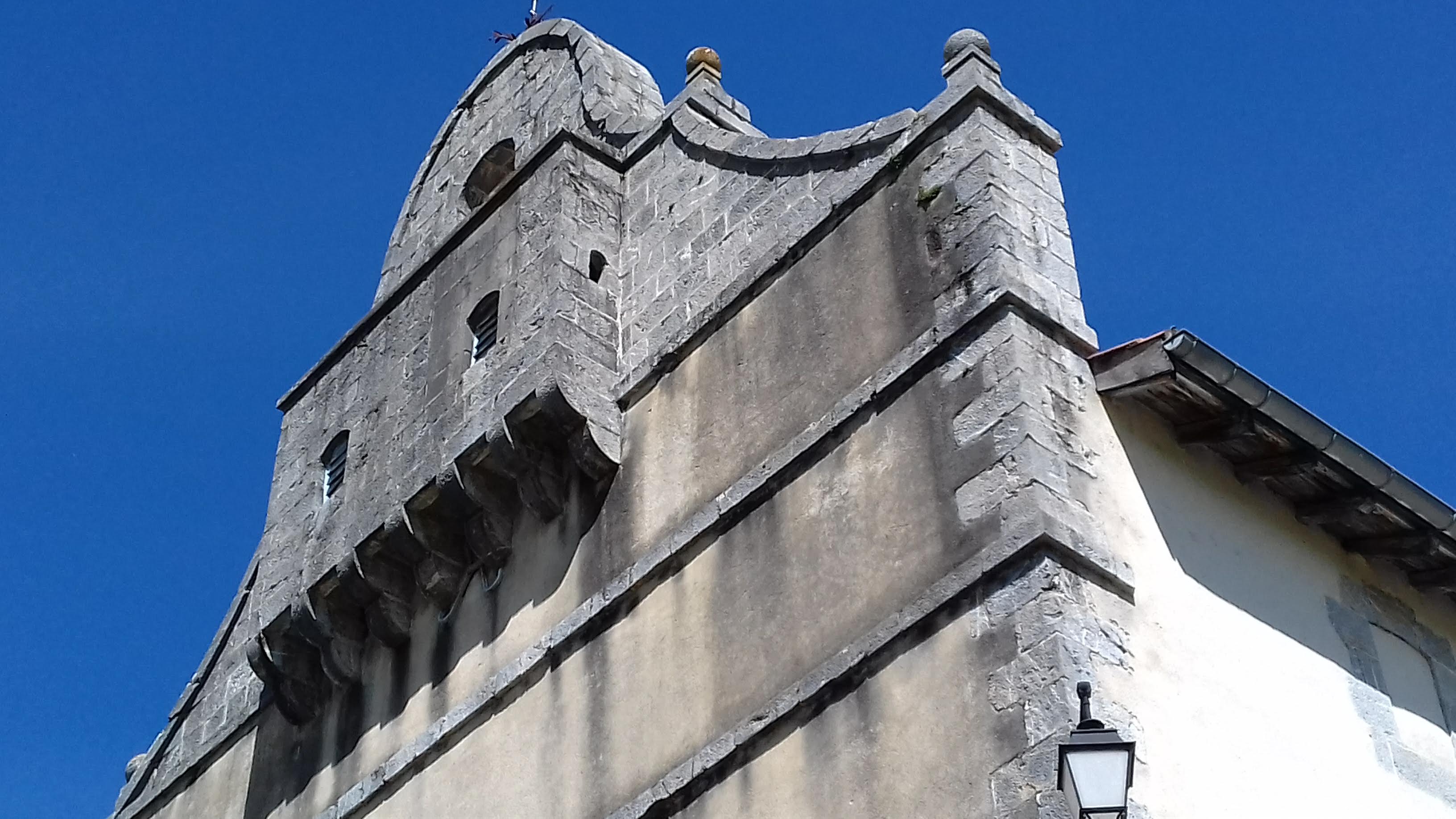Belle église de pierres perchée sur les hauteurs de son village face à ses montagnes. Un clocher fronton. Très beaux vitraux. Un joli plafond fresque évoquant le travail des quatre saisons. Église du XV ème siècle avec trois niveaux de tribunes. Un très beau rétable et de magnifiques tableaux et statues du XVI et XVII ème siècle. Stèles discoidales.