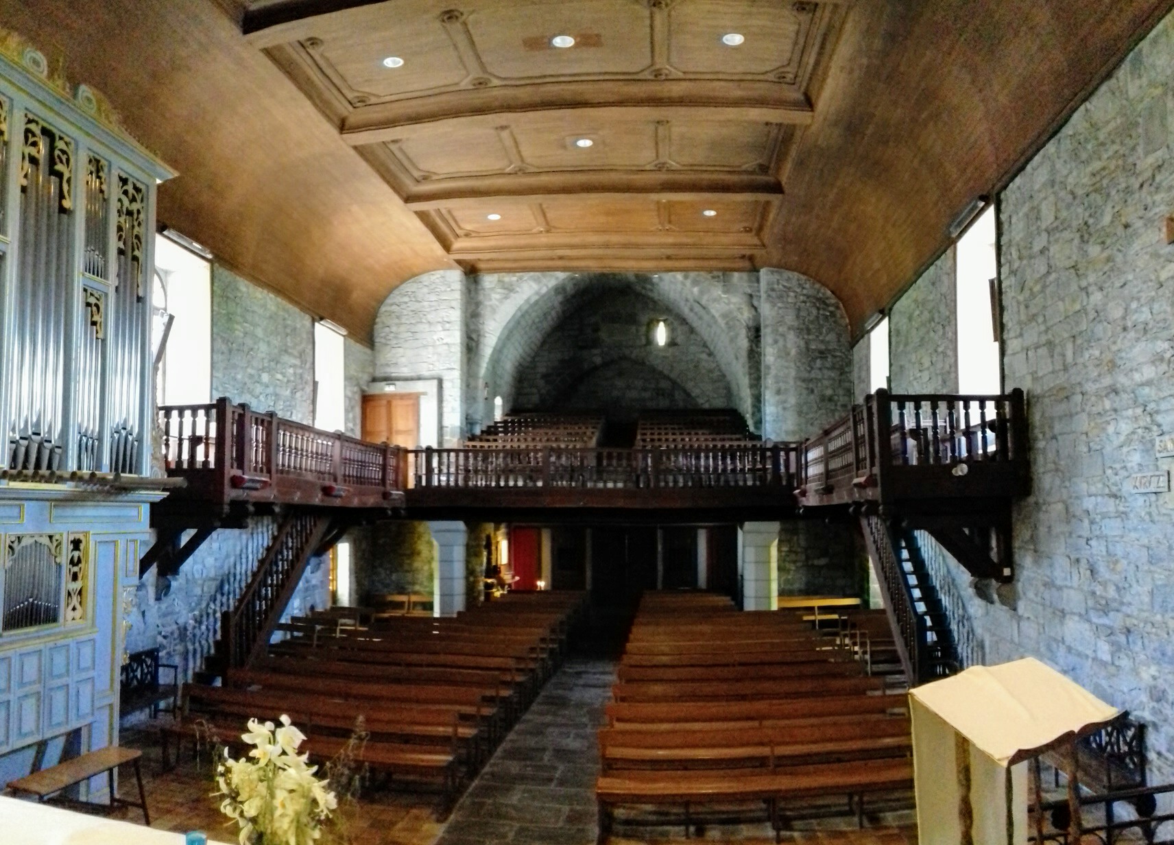 06/2019 - Belle église de pierres et son clocher tour carrée. De très beaux vitraux, orgue magnifique. Tribunes typiques de la région.
