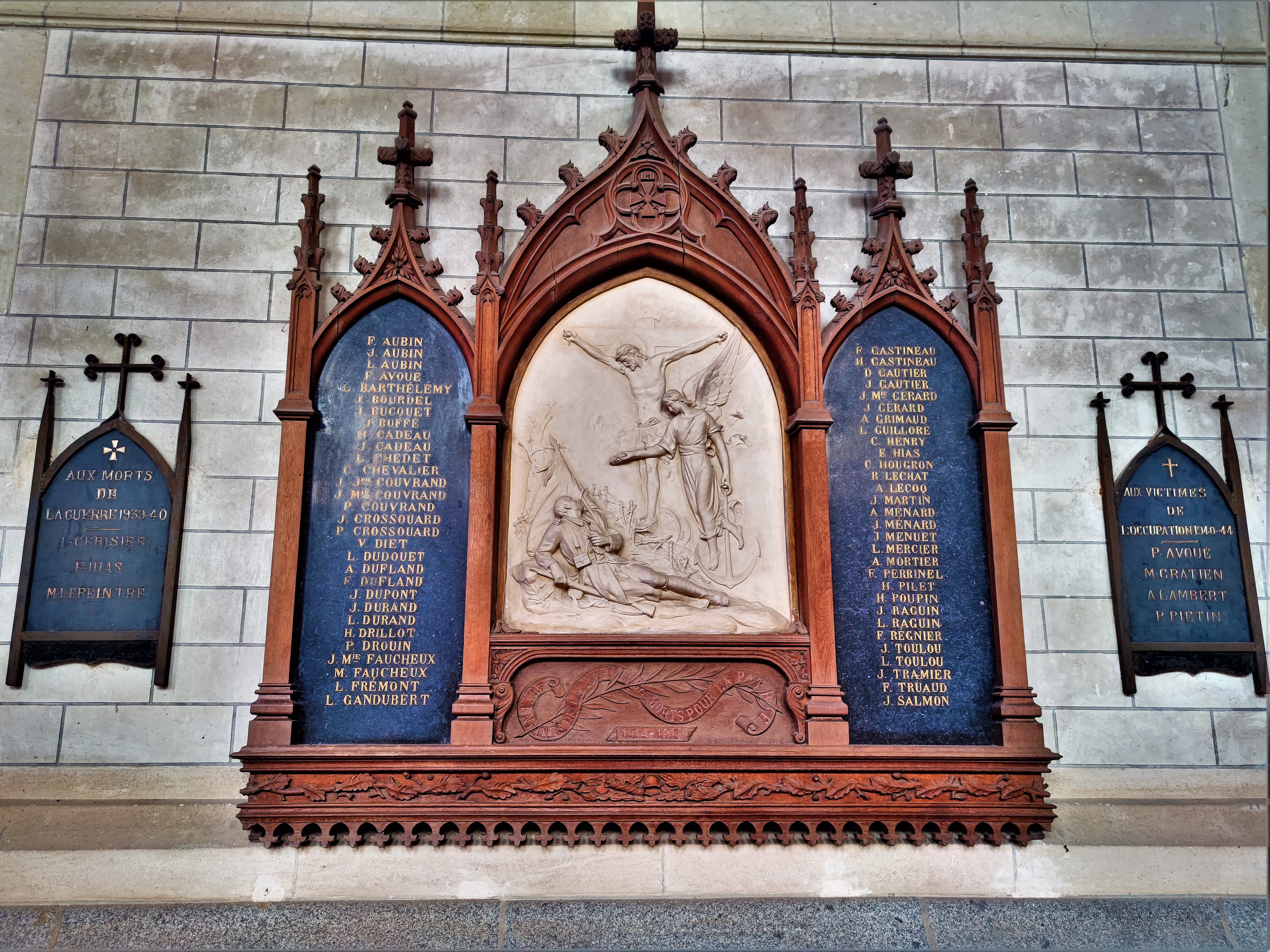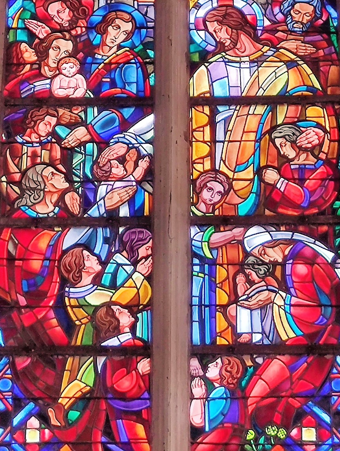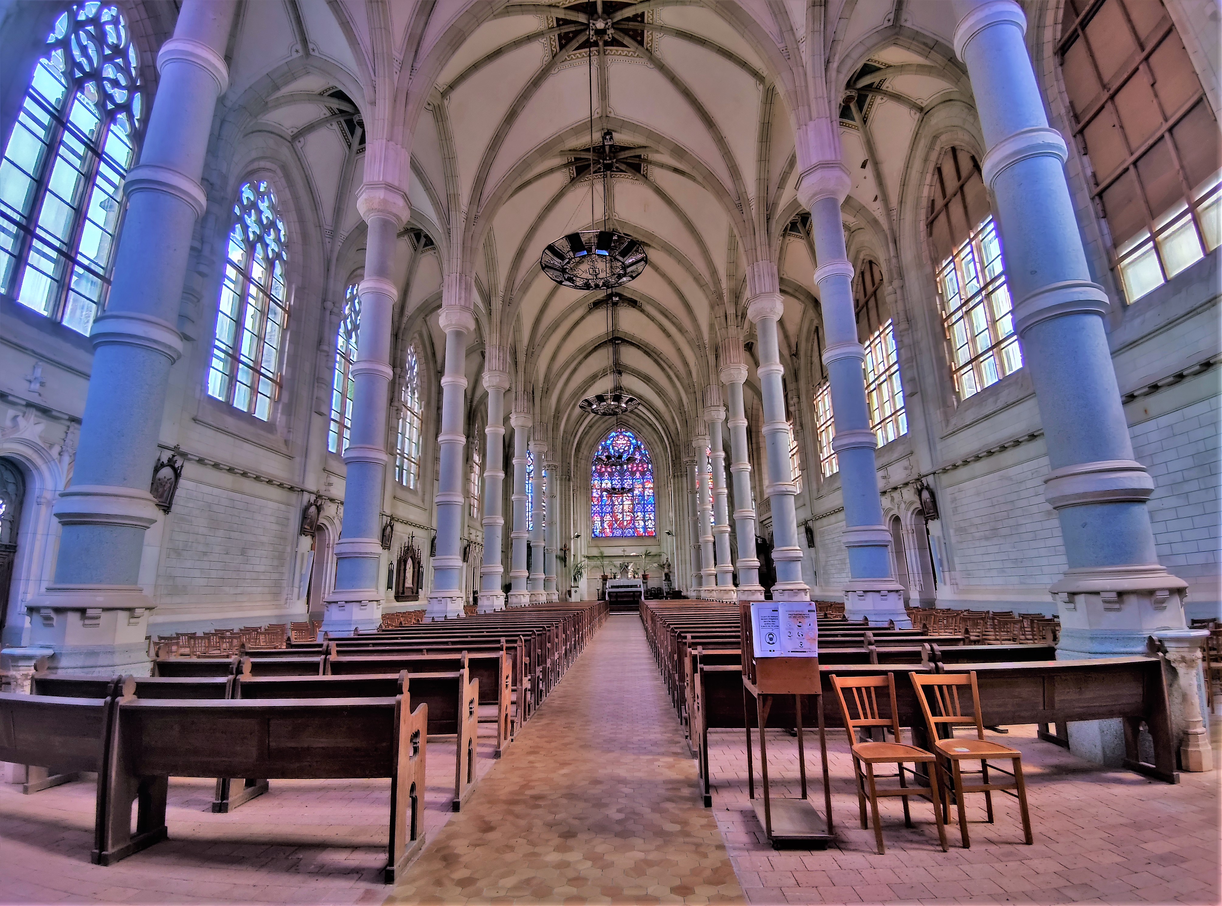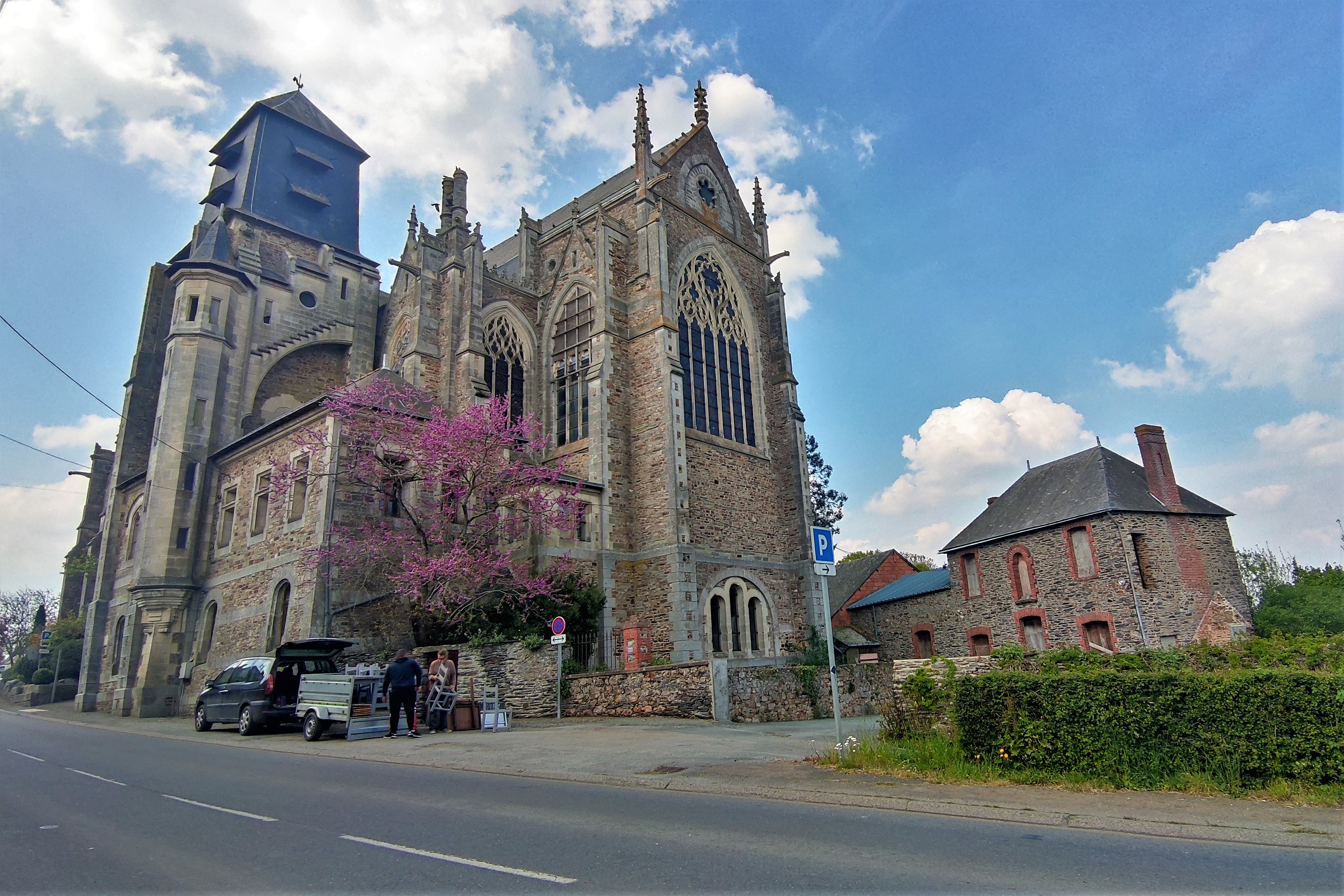 Cette église est ouverte, accueillante, colorée et chaleureuse, elle mérite que l'on fasse un détour. Découverte par hasard au cours d'une balade qui me conduisait vers Châteaubriant, cette église paroissiale Saint-Julien m'a impressionné. Construite dans une pente importante, vers le point culminant, elle impose sa présence par de belles dimensions. Église néogothique édifiée au 19ème siècle, elle remplaça un édifice gothique flamboyant. Sous le chœur, on a placé une crypte qui compense l'inclinaison du sol. Pour visiter cette crypte, il faut prendre rendez-vous à la mairie, l'église elle-même est ouverte et accueillante. Église de pèlerinage, sa grande capacité ne lui enlève rien de son côté accueillant et chaleureux, les grande baies de la nef apporte une lumière abondante. Les verrières du chœur et de la façade ouest sont sources de couleurs chaudes et de riches images.