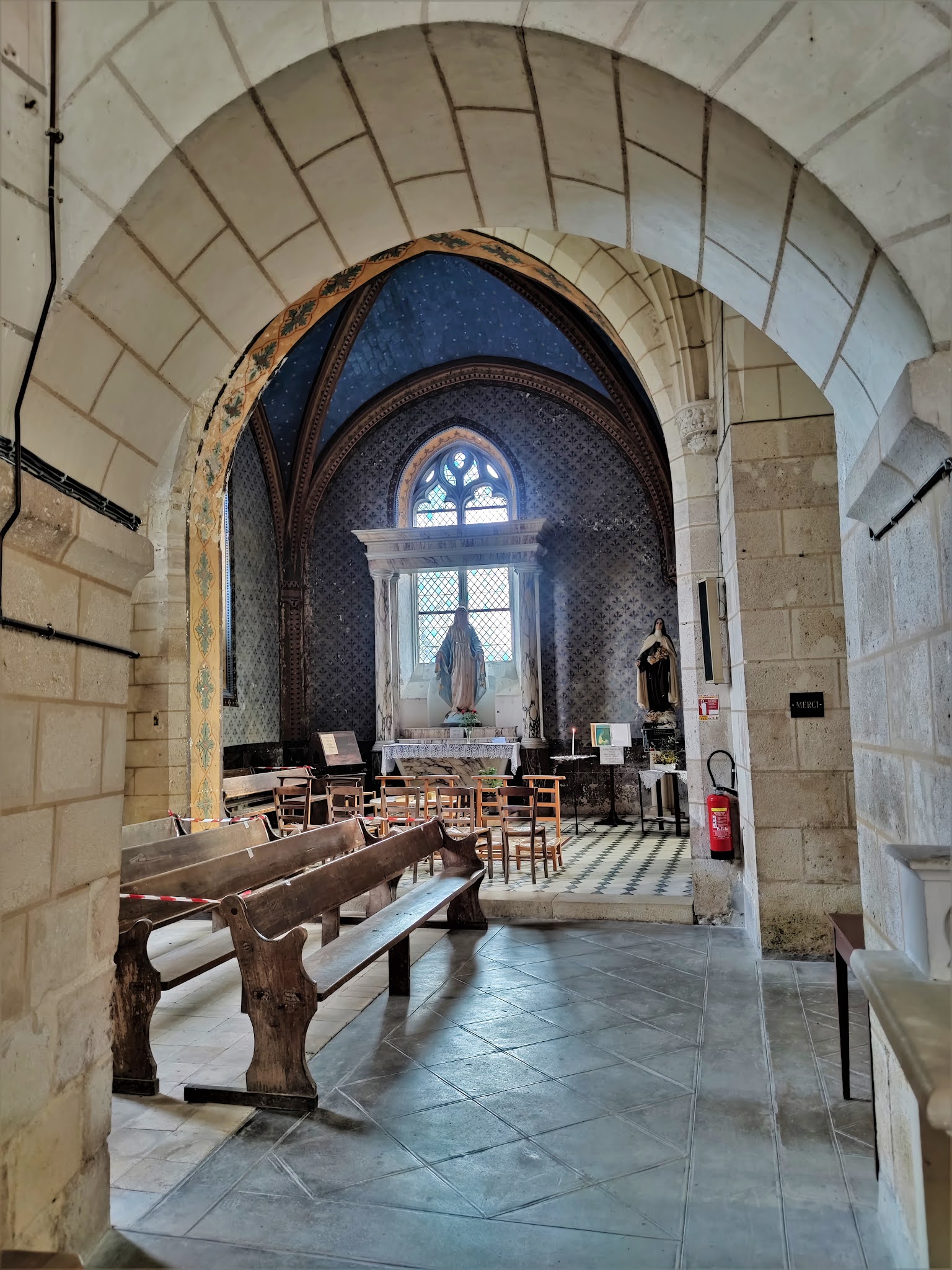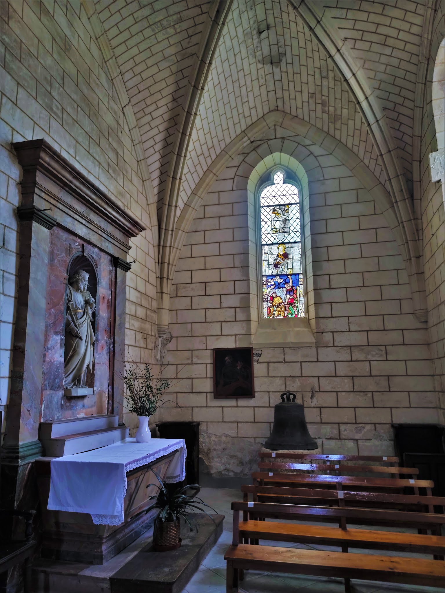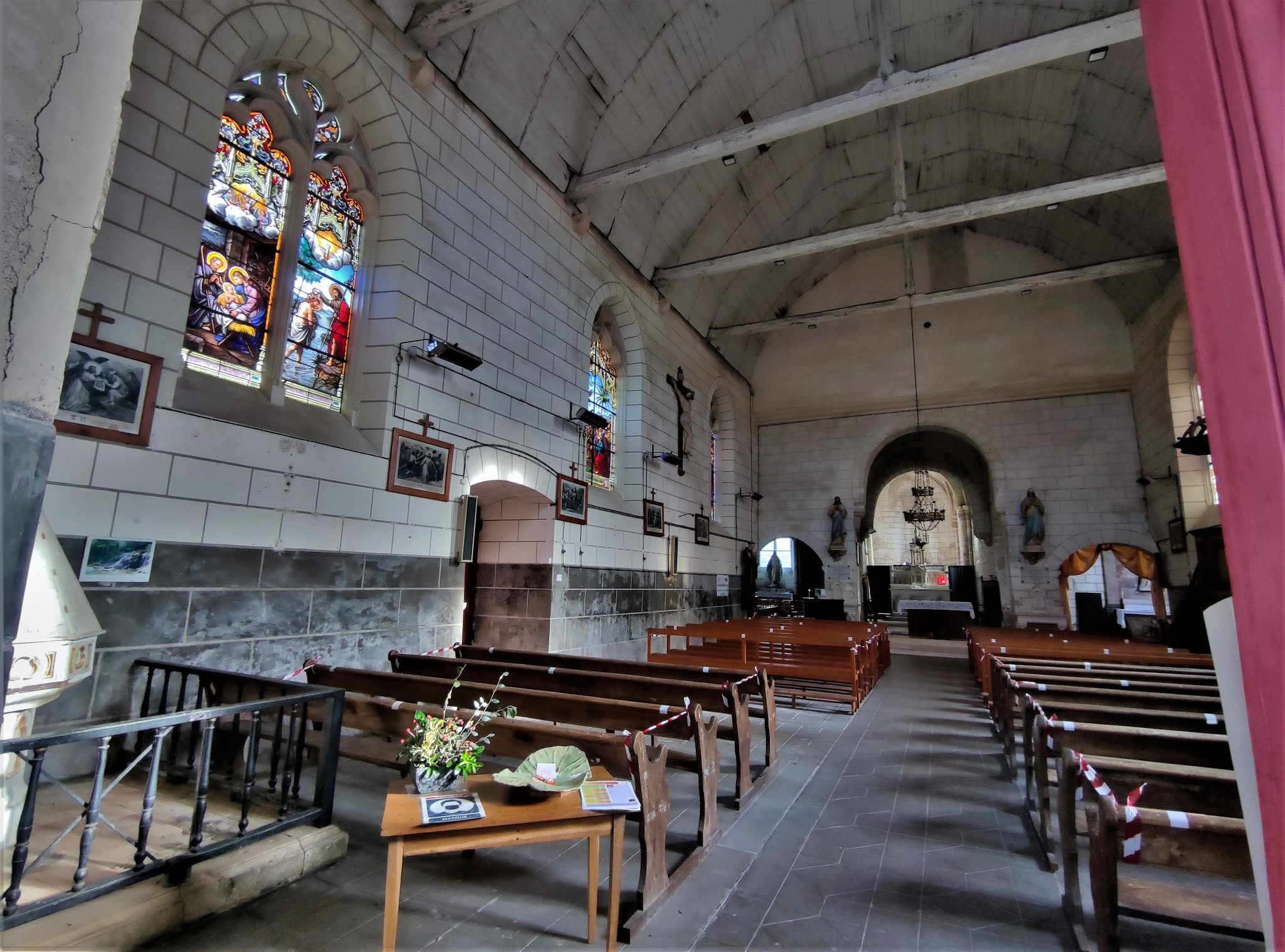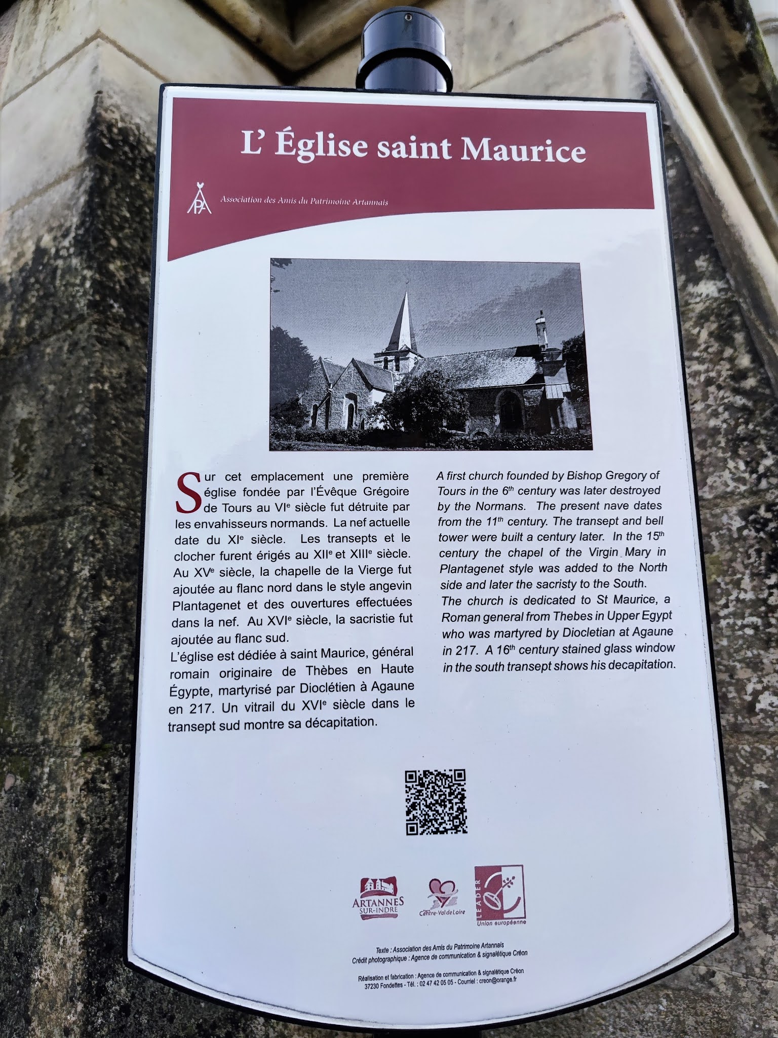 L'harmonieux mélange des styles architecturaux lui donne beaucoup de charme, les vitraux sont superbes. Artannes-sur-Indre était la résidence d'été des archevêques de Tours. Le palais épiscopal, formait avec cette église un ensemble carré de bâtiments entouré de douves. Le palais, situé en prolongement du chœur, est aujourd'hui une résidence privée. L'église Saint-Maurice fut construite au 11ème siècle, modifiée souvent au cours du millénaire qu'elle a traversé, et nous parvient en bel état. L'harmonieux mélange des styles architecturaux lui donne beaucoup de charme, l'église est classée depuis 1948, sauf la façade du 19ème siècle. J'ai trouvé réussie cette façade originale, en harmonie avec le reste de l'édifice. La nef est celle de l'église primitive, elle s'ouvre sur un transept du 15ème et 16ème siècles. Des baies gothiques ont été percées dans le mur Nord de la nef. Elles ont reçu des vitraux aux couleurs somptueuses. Une signalétique sous forme de documents à consulter peut permettre de mieux comprendre et apprécier cette église vraiment plaisante.