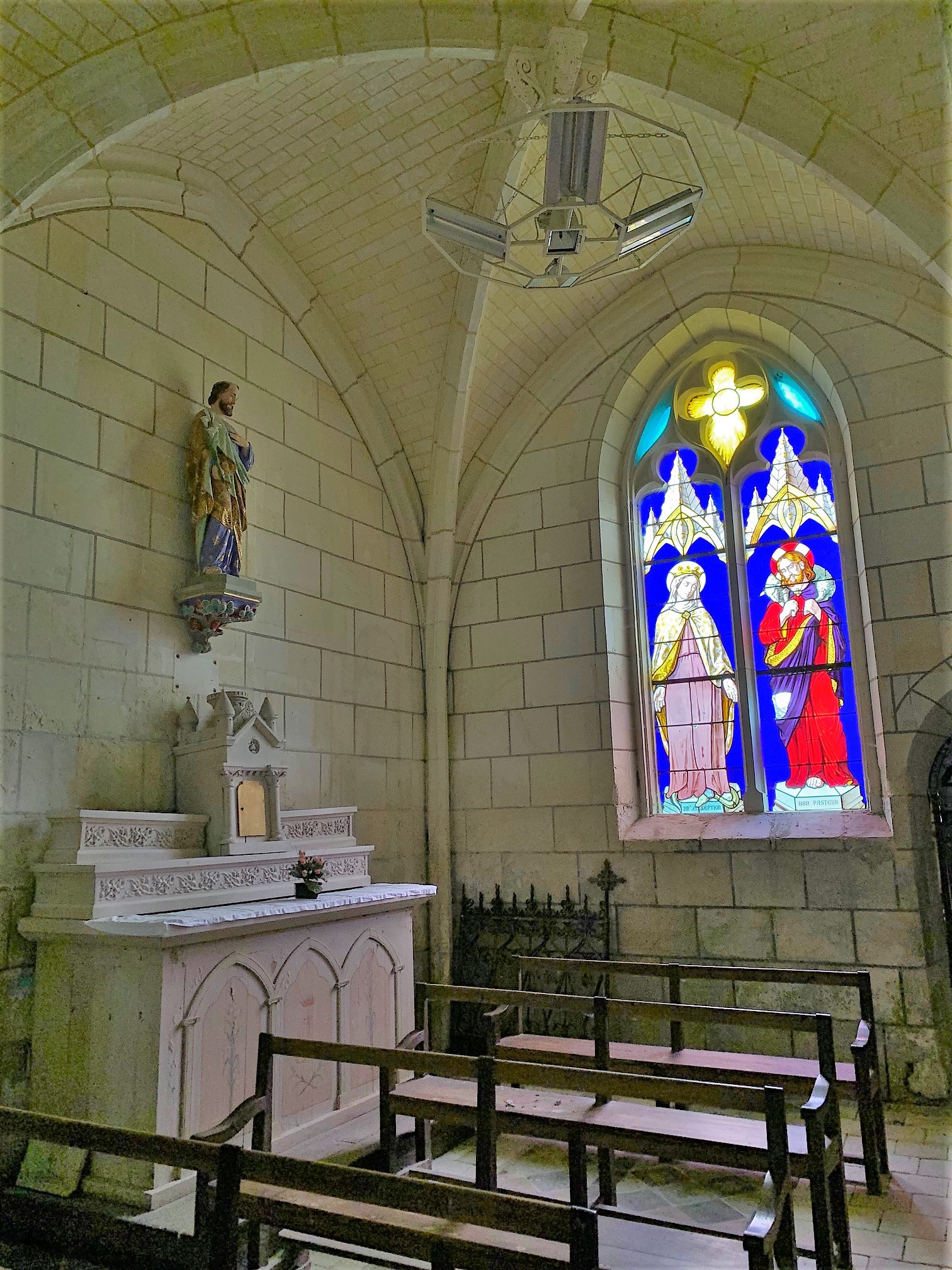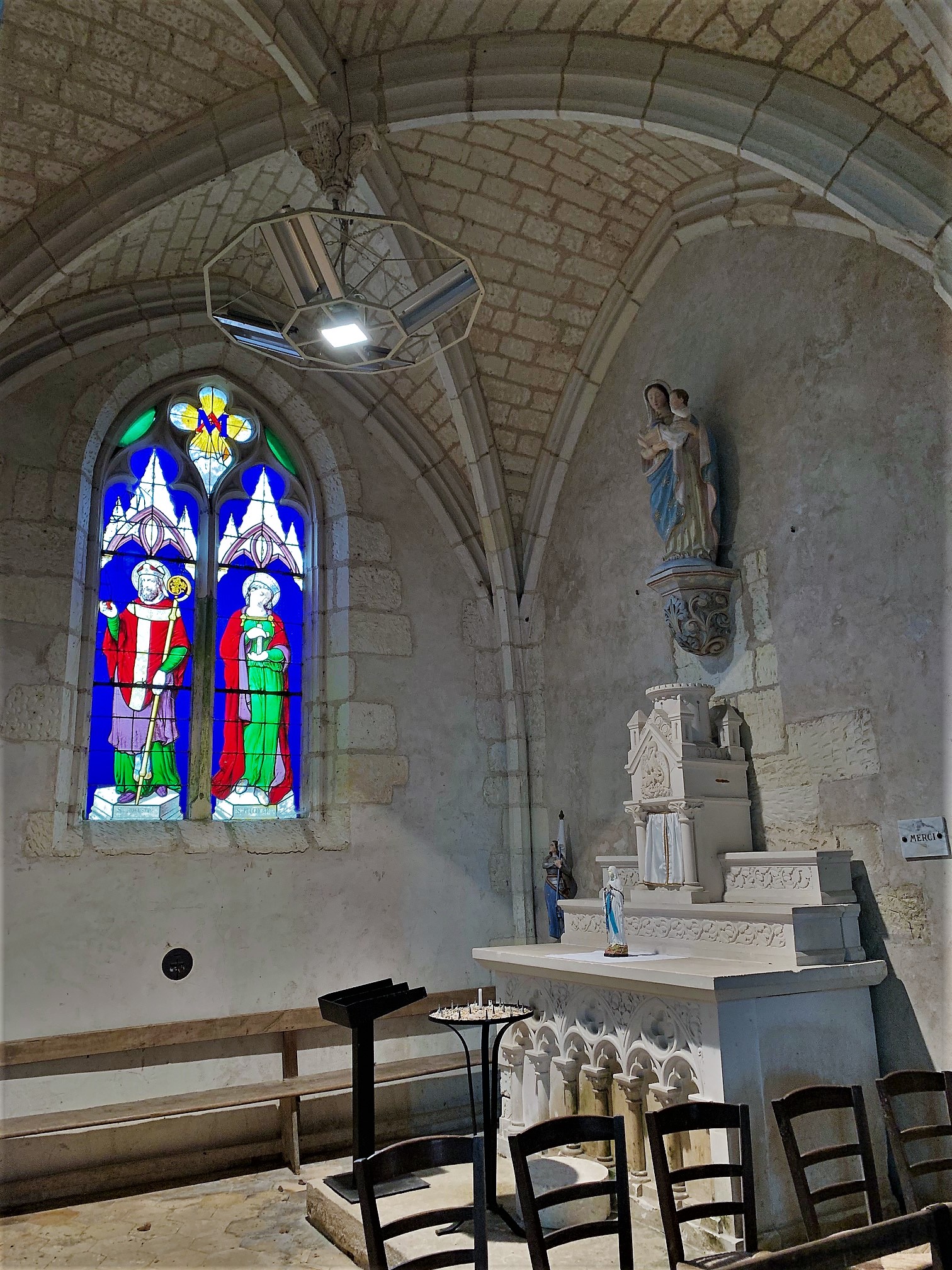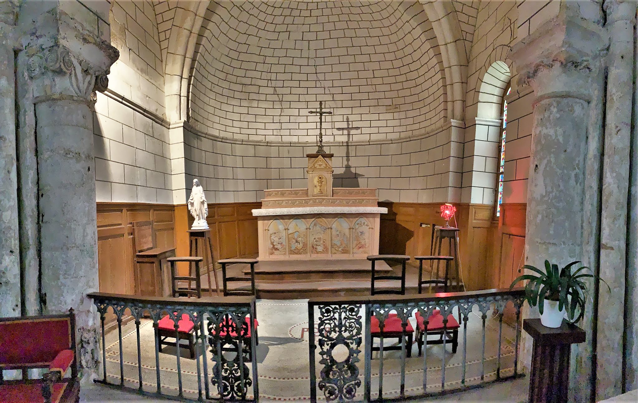 Une église bien mise en valeur dans un village fort sympathique, le petit Pressigny, un joli village et une commune accueillante. L'église est bien mise en valeur, dans un cadre agréable, que la présence de l'Aigronne, du petit parc, de l'étang de la truite, et du parcours de pêche pour les enfants, rendent hospitalier. La construction de l'église a débuté à la fin du 12ème siècle, et elle sera souvent modifiée jusqu'à la fin du 19ème siècle. Il n'y a qu'aux 16ème et 17ème siècles qu'elle semble avoir échappée à des campagnes de constructions ou de modifications. Inscrite aux M.H. depuis 1926, elle est restée authentique, les styles se côtoient dans une belle harmonie, la découvrir fut un réel plaisir, à l'extérieur comme à l'intérieur. Le clocher et sa tour escalier datent du 13ème siècle, les bras du transept sont du 15ème siècle. L'abside est voûtée en demi-coupole, la travée du chœur en croisée d'ogives comme la croisée du transept et les chapelles latérales. La nef est voûtée de plâtre en berceau. Cet endroit est agréable, même en ce jour d'hiver un peu gris et semble propice pour une balade aux beaux jours.