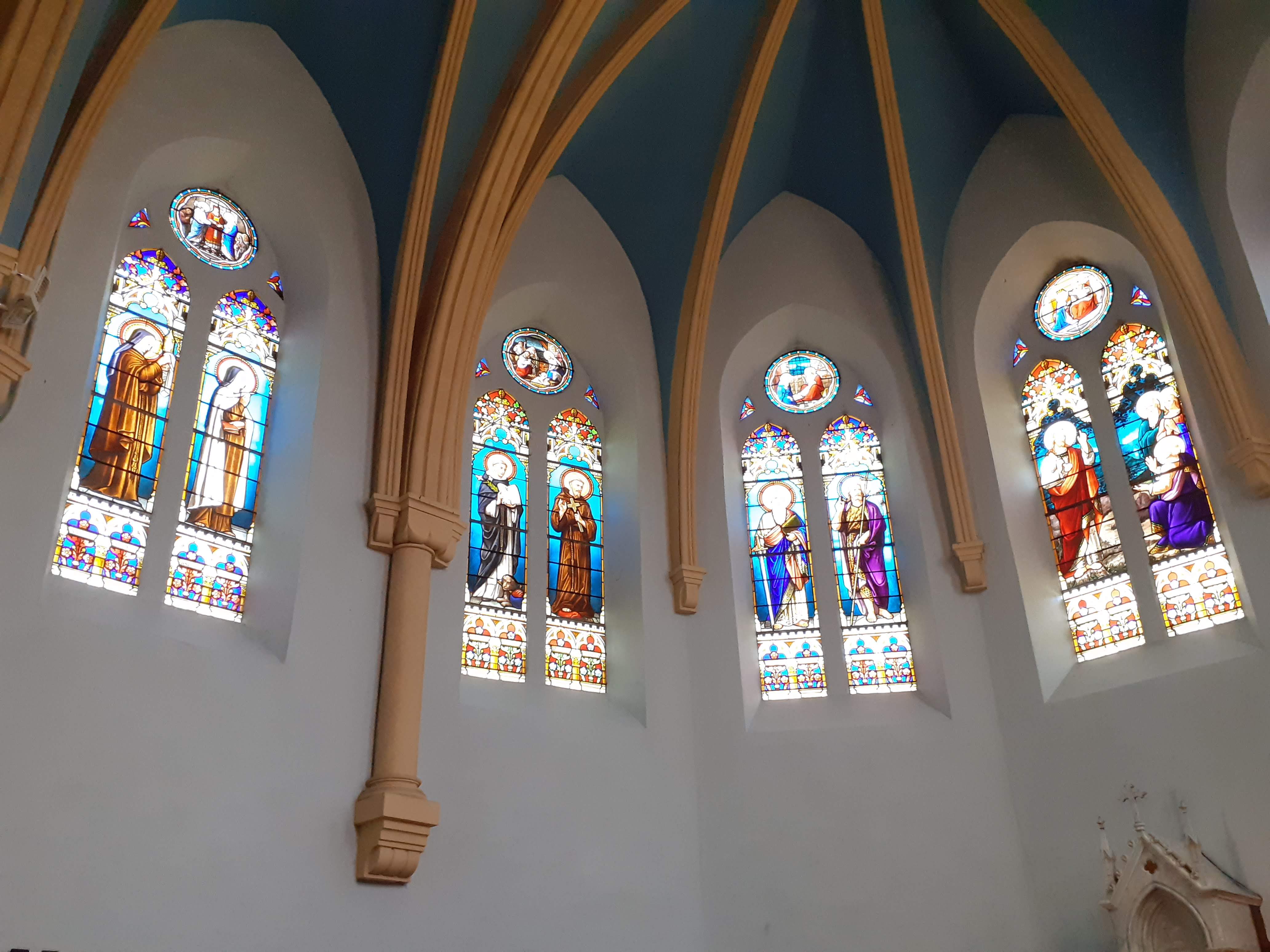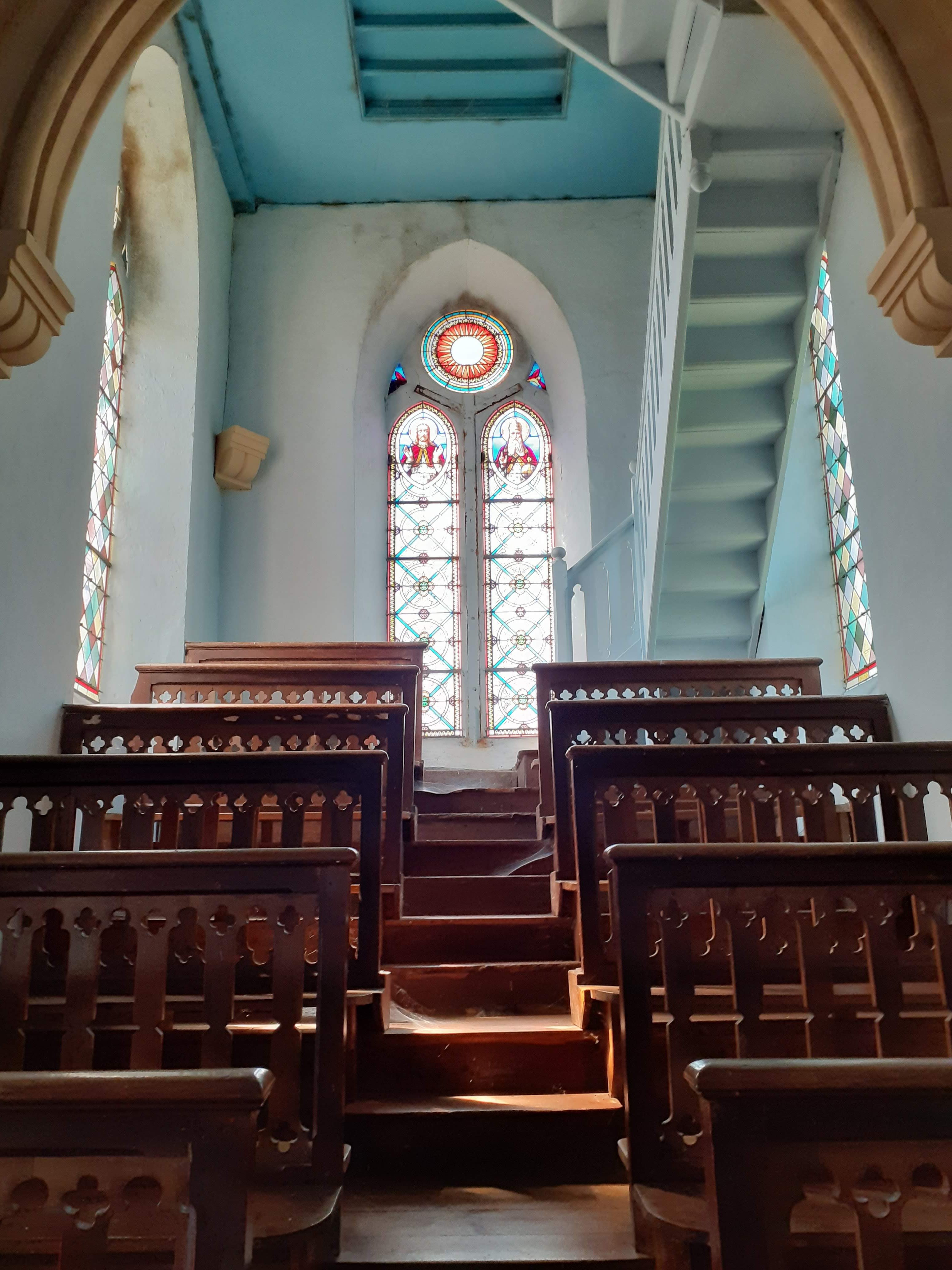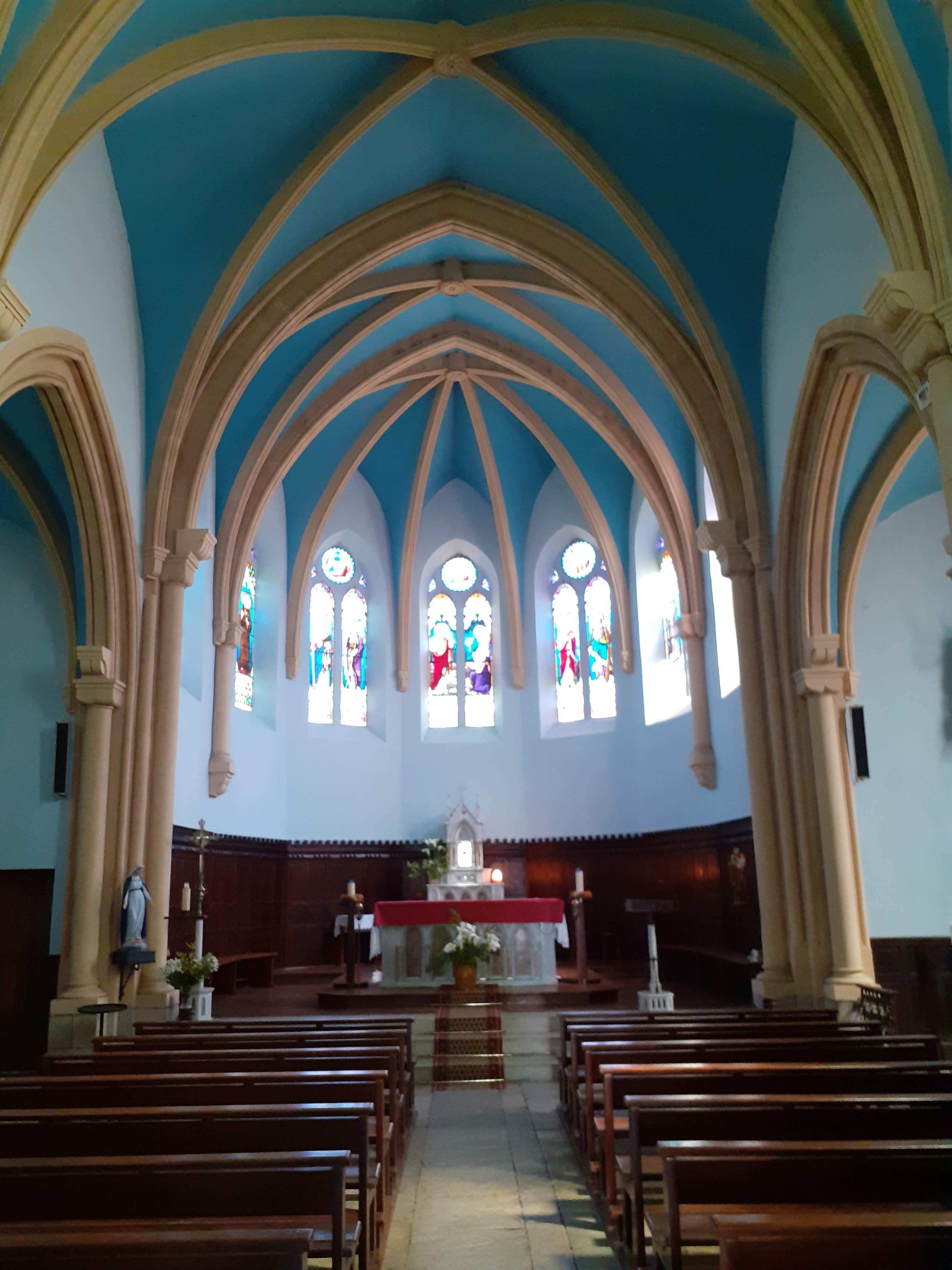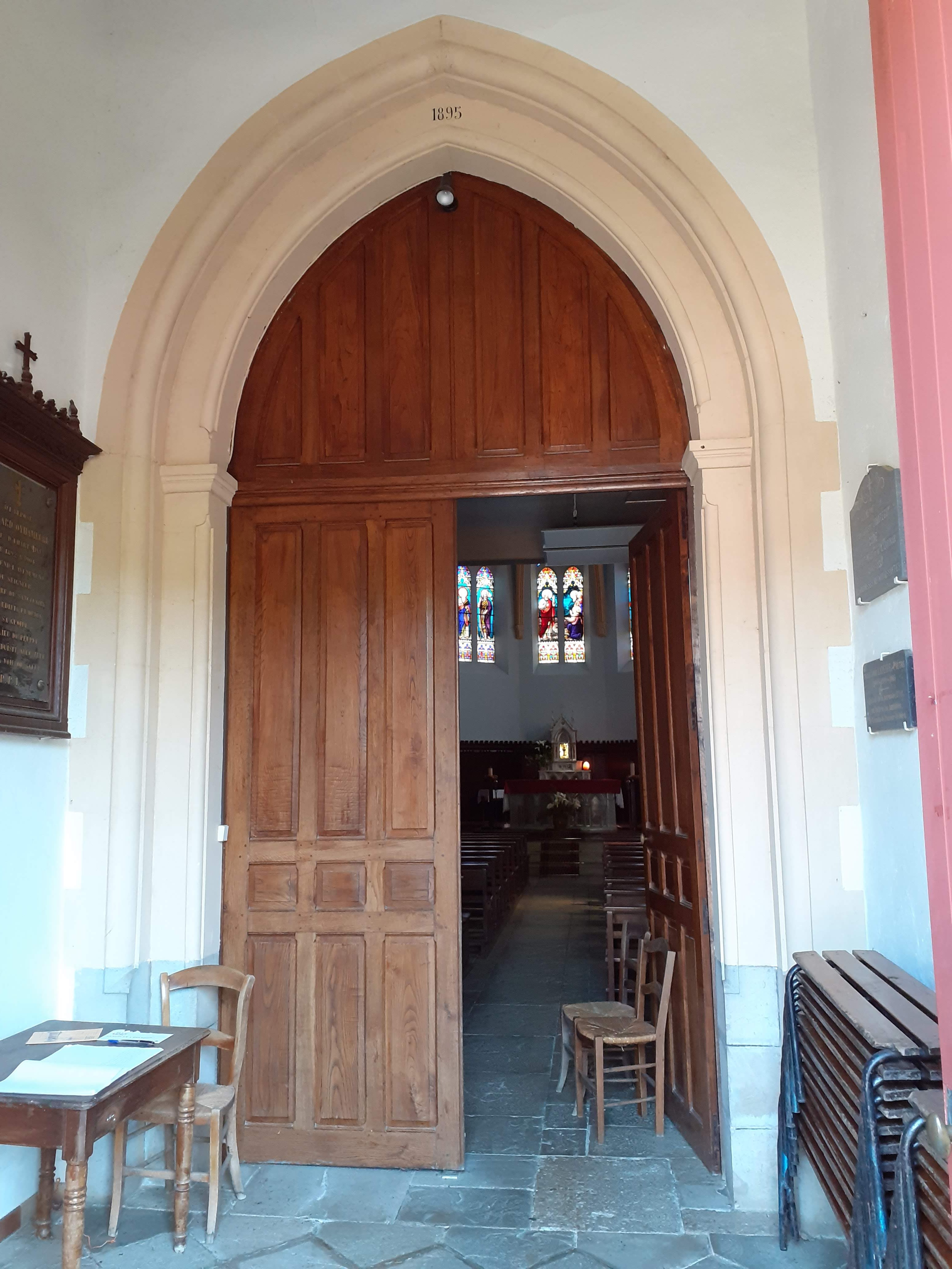 05/2020 - Encore une église ouverte sur ma route, que demande le peuple.... Belle flèche. Intérieur frais et propre. En effet, de beaux vitraux.