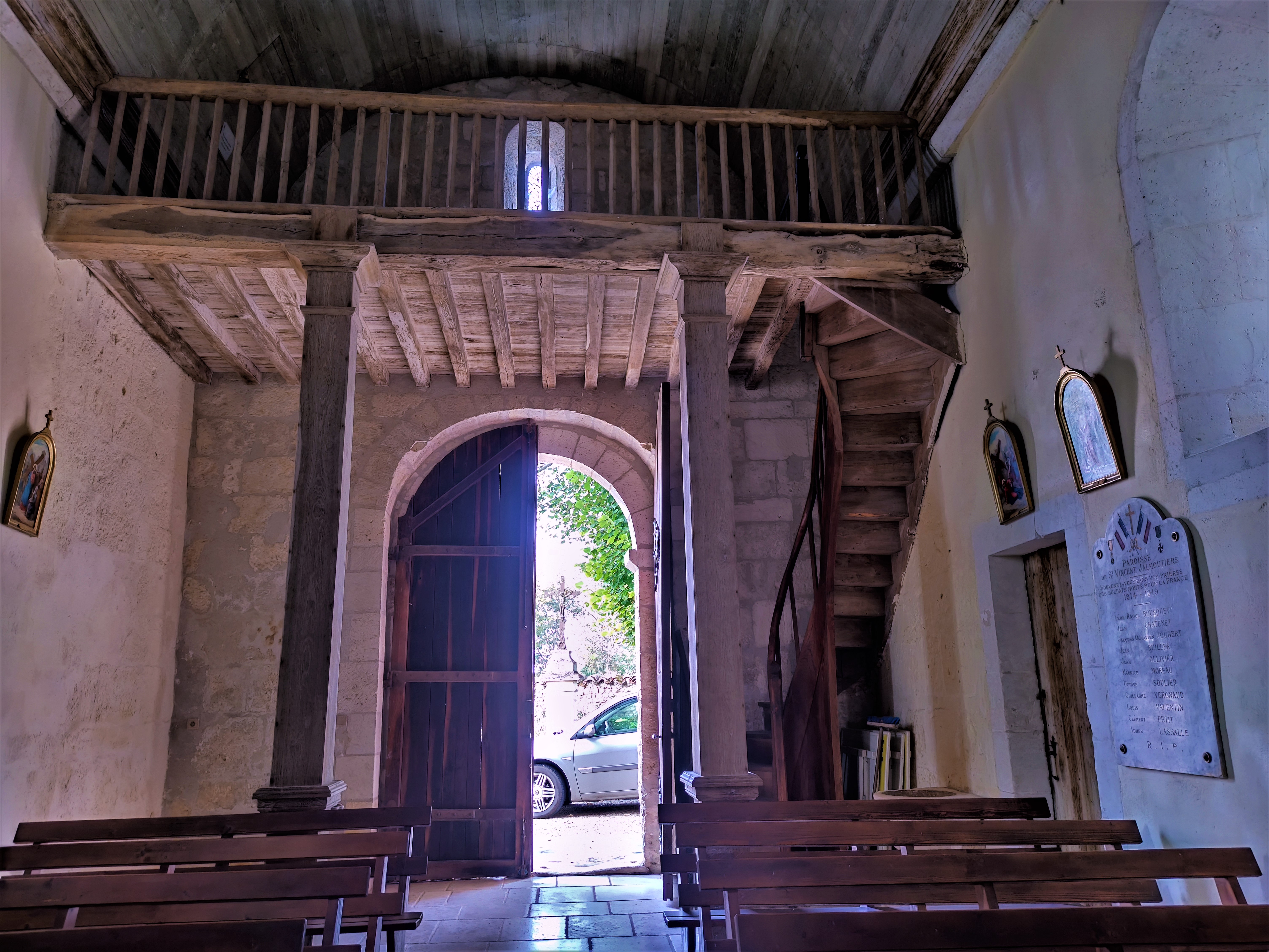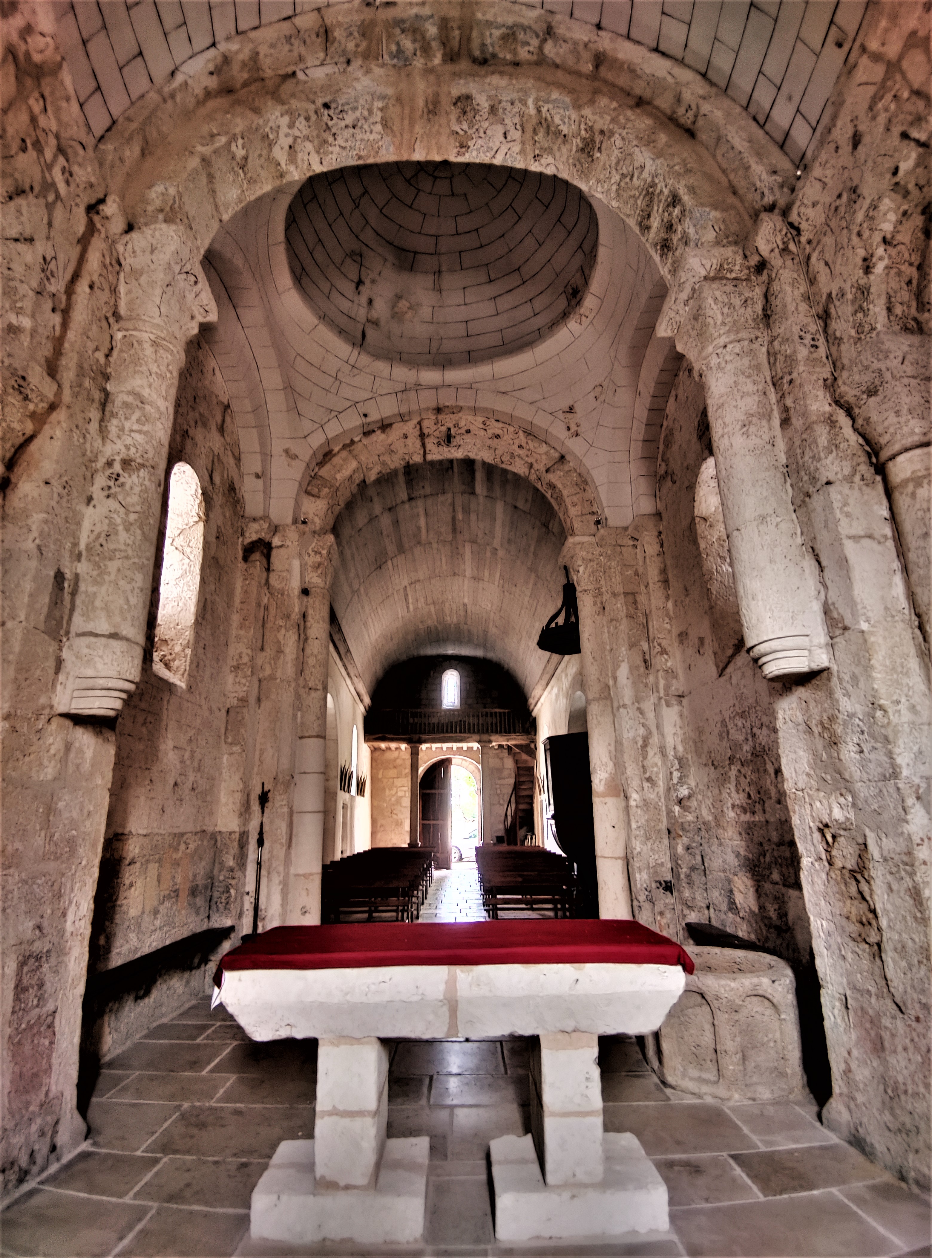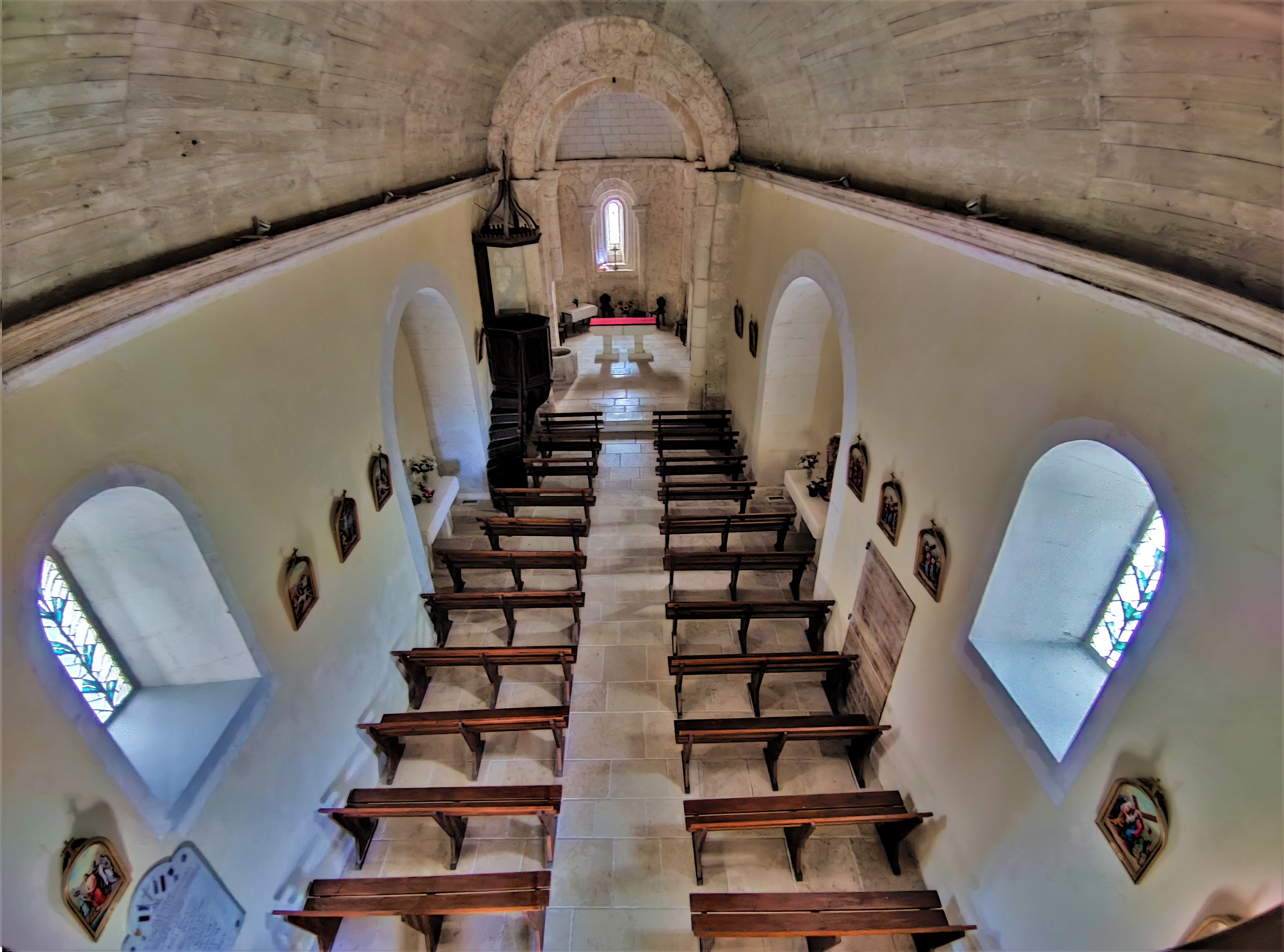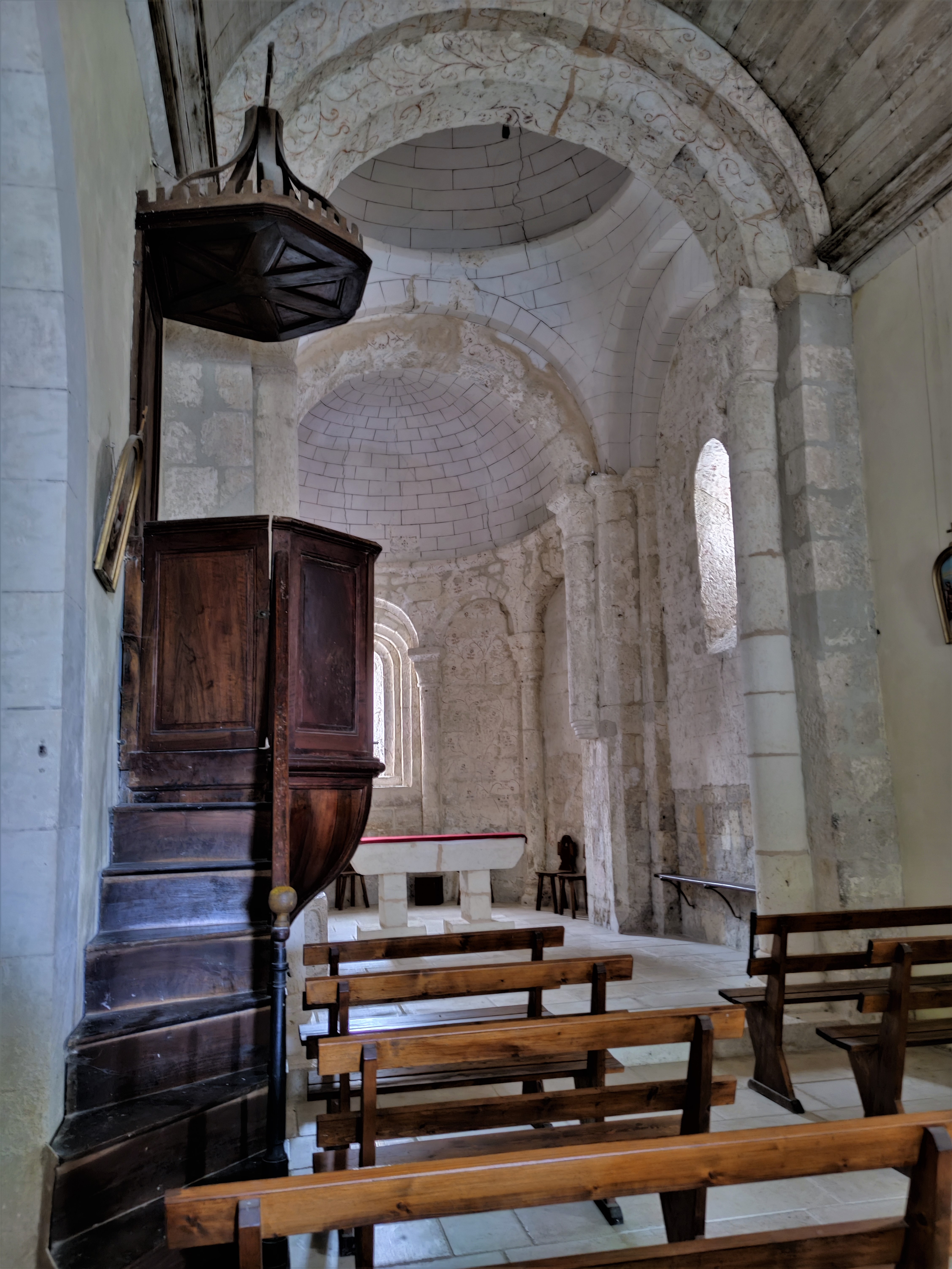 Dans ce village accueillant de 250 habitants, une église romane du 12ème préservée. Ancienne prieurale presque millénaire, ses décors en arabesques végétales apportent une fantaisie à la partie Est. Le chevet, la travée sous clocher et sa coupole sur pendentifs, le sanctuaire et ses arcatures, sa baie plein cintre à 3 voussures, sont étonnamment bien conservés. On entre à l'Ouest, la façade restaurée, présente en partie basse des arcatures et un portail en plein cintre, vestiges de l'église primitive. Restaurée au 19ème, la nef unique et son plafond de lambris en plein cintre met en valeur la partie Est avec laquelle elle reste en harmonie. Une étape pour les amoureux de l'époque romane ; on dressait alors ces lieux de célébration, qui étaient aussi l'endroit où l'on débattait et décidait pour le village et la communauté. Agora des temps anciens, on y perçoit parfois les murmures des paroissiens des premiers siècles du second millénaire.