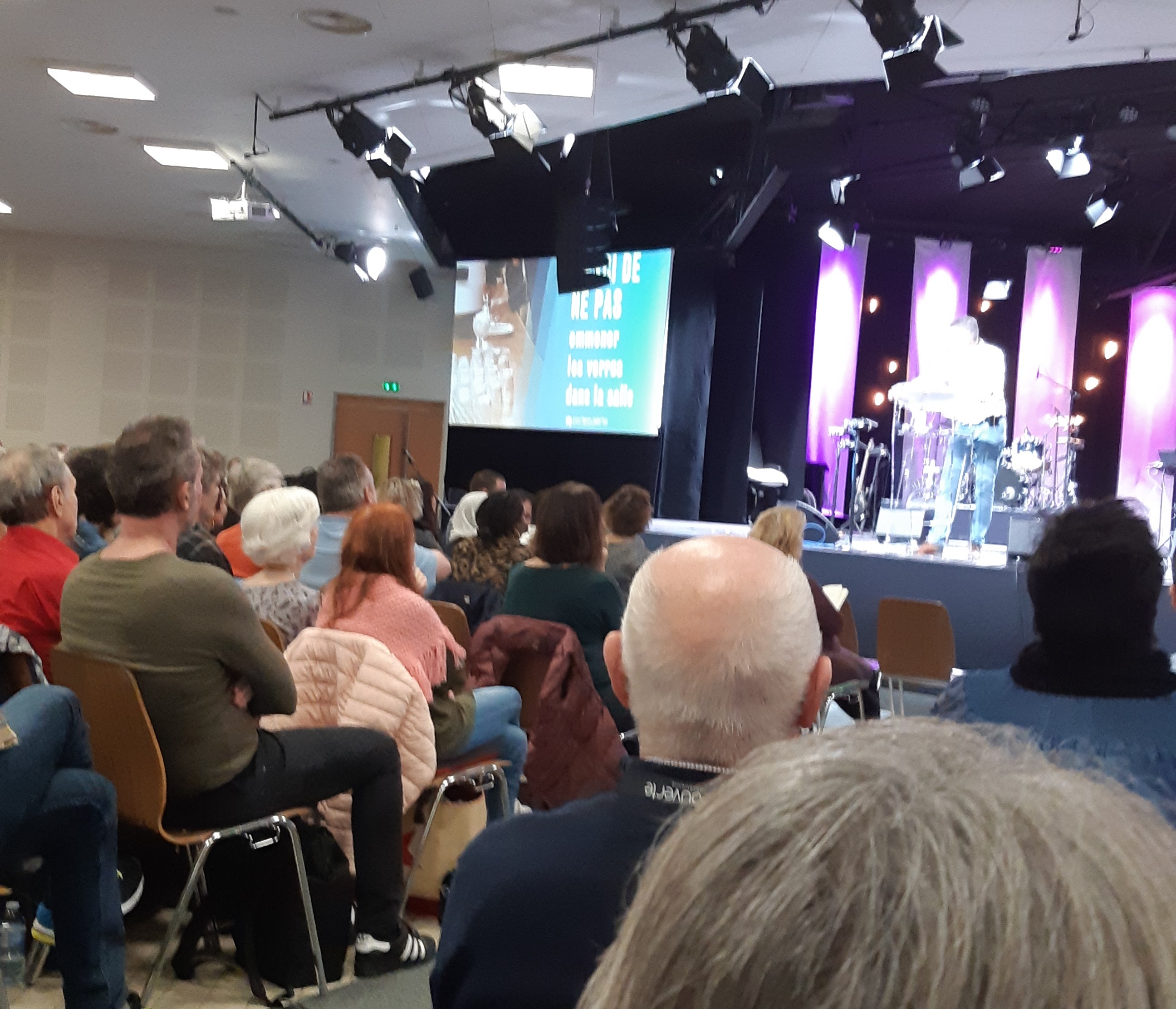 Une église chaleureuse ou règne l’amour malgré un nombre important de personnes. L’évènement de jeunesse Ze Rencontre était formidable.