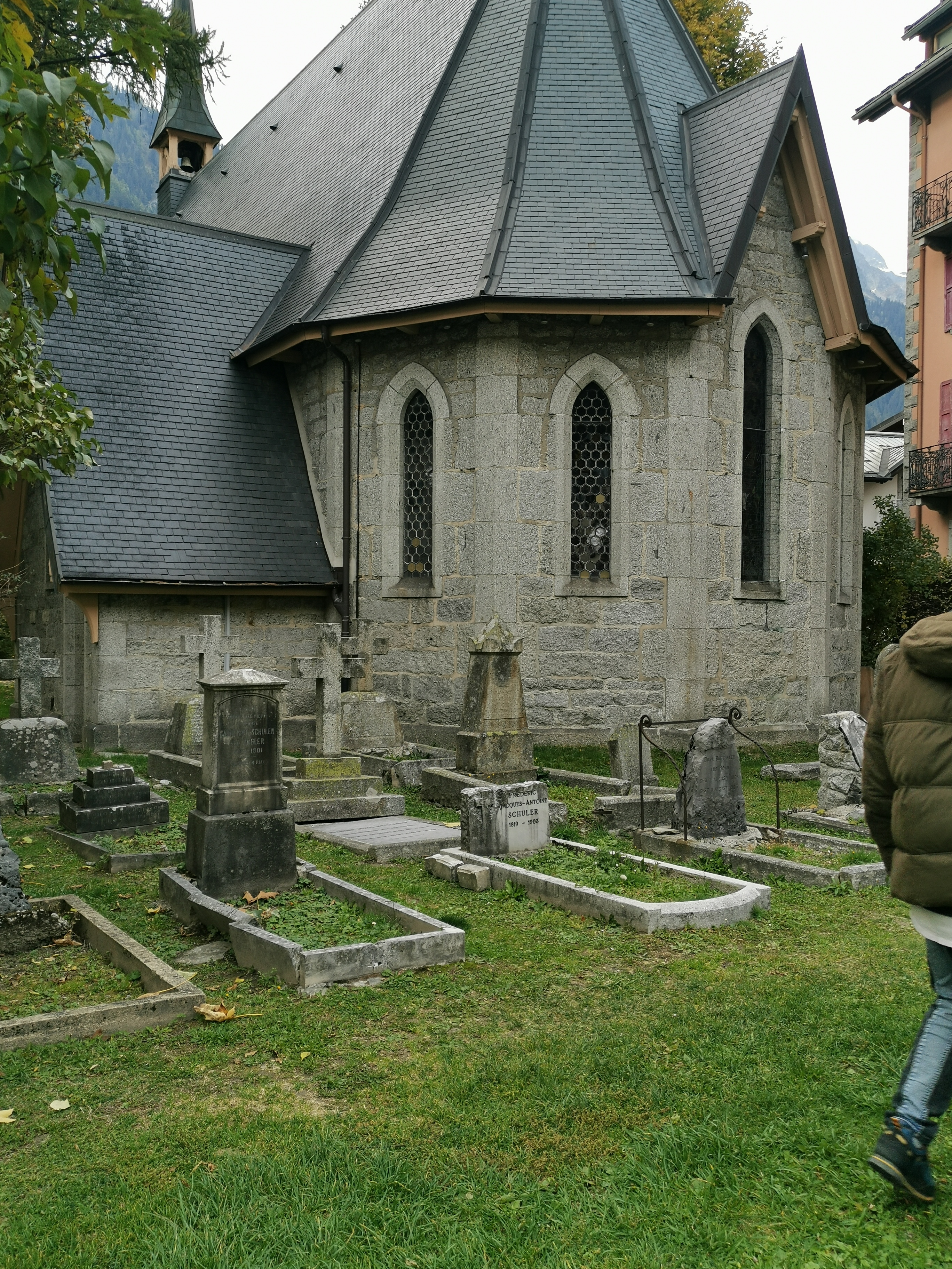 Très bel édifice fondé en 1860 même si ce n'est pas ma religion où une vingtaine d'alpinistes britanniques y sont enterrés. Notamment le Capitaine Arkwright, mort dans une avalanche lors de l’ascension au Mont Blanc en 1866. Nous n'avons pas pu rentrer à l'intérieur car la porte était fermée vu qu'il était 18h.