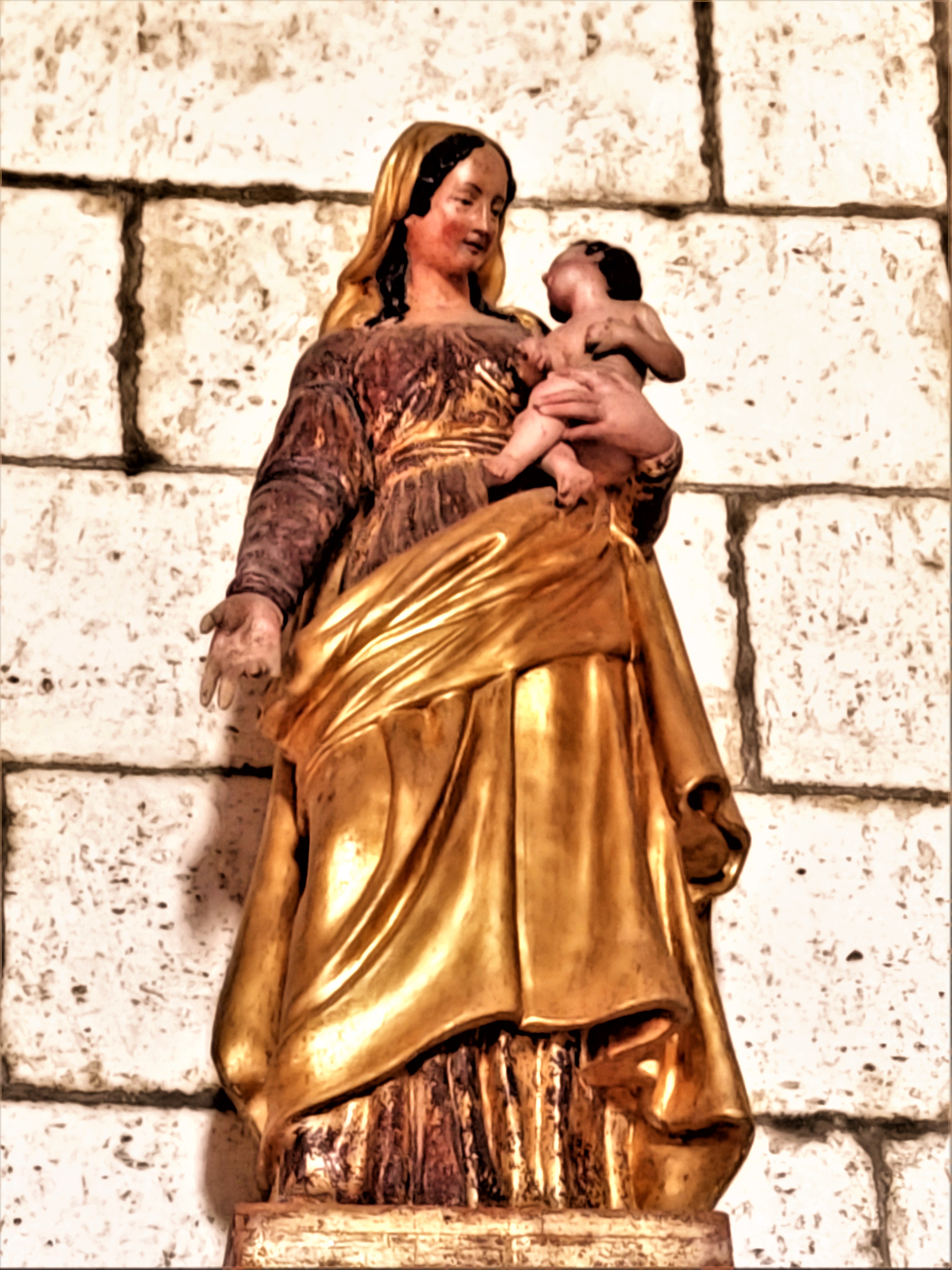 L'architecture, les décors sculptés, les décors peints, les tableaux et les sculptures sont parfaitement admirables. Ouverte et accueillante, cette découverte m'a comblé. Une église du 12ème siècle qui a remplacé une église du 8ème siècle aujourd'hui disparue. J'ai trouvé les drôles de personnages de la crèche, dissimulés dans une chapelle ; paroissiens intemporels à taille humaine, leur expression de joie tranquille est réconfortante.
