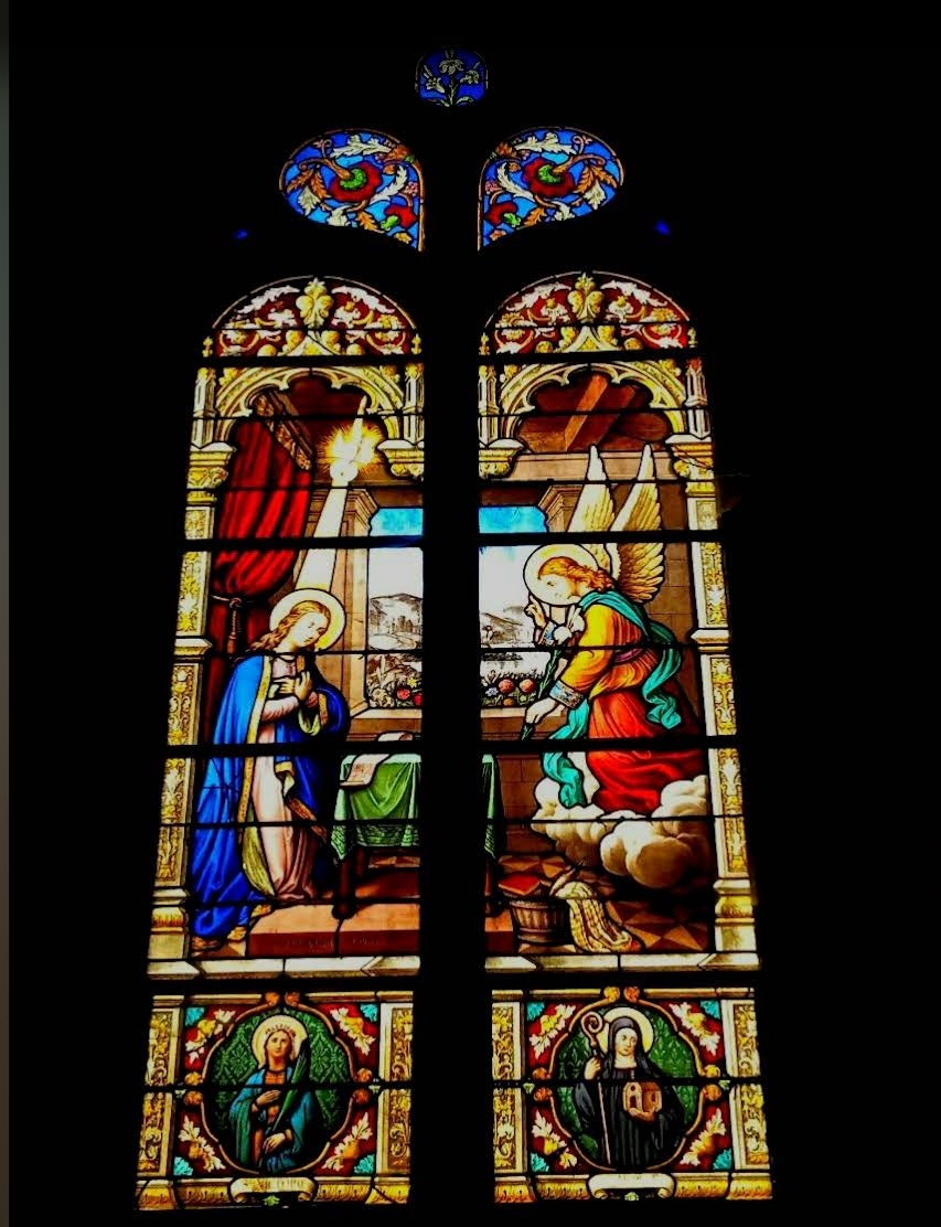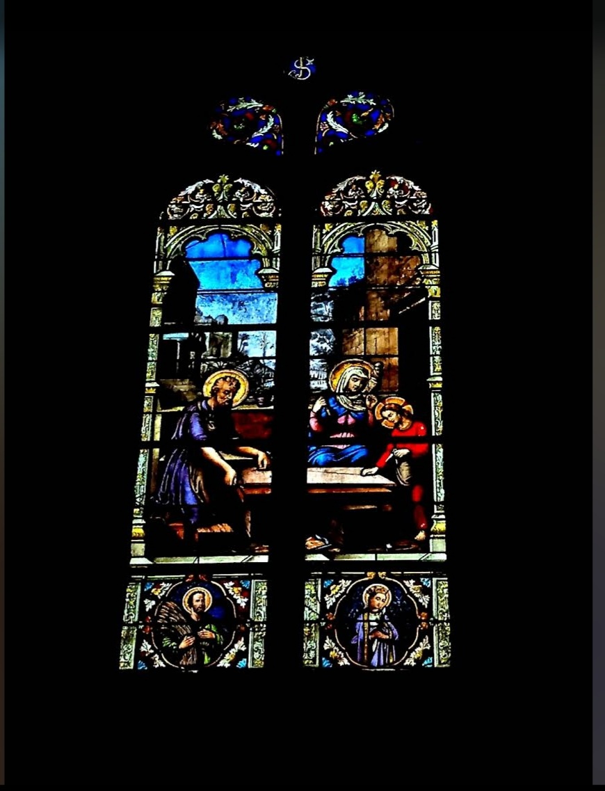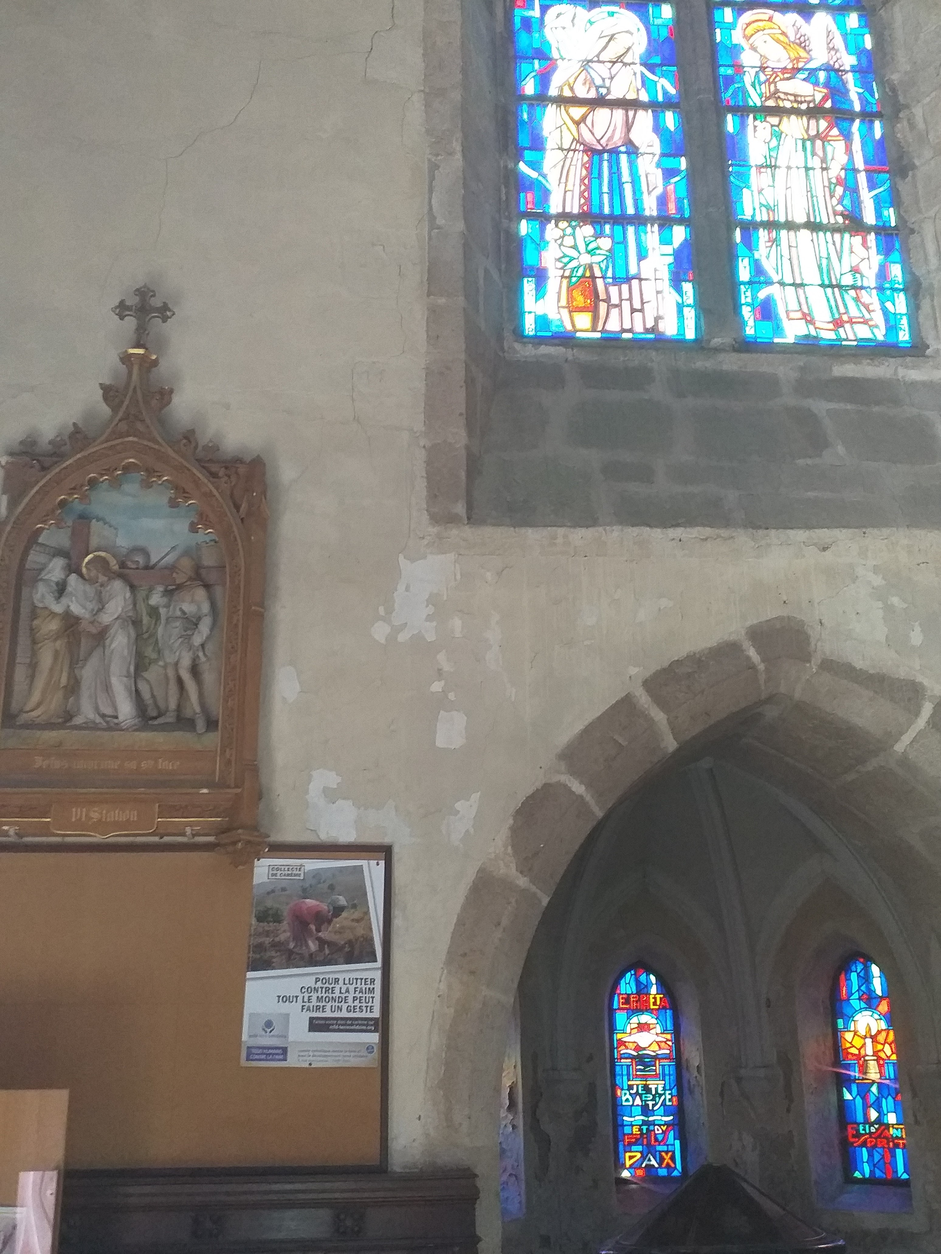 Vadrouille improvisée pour visité au gré du vent ......... Église très discrète car très basse comme le veut son époque d'édification. La petite place de village devant est très sympas. Les vitraux sont juste magnifiques, il y a des stèles au sol qui sont frappées par les reflets multicolore de ses mêmes vitraux ...... très joli. Le vitrail de l'arrière de l'église est impressionnant. Il y a également a l'extrémité, toute une série d'emblémes (genre blasons familiaux......) sur les murs.
