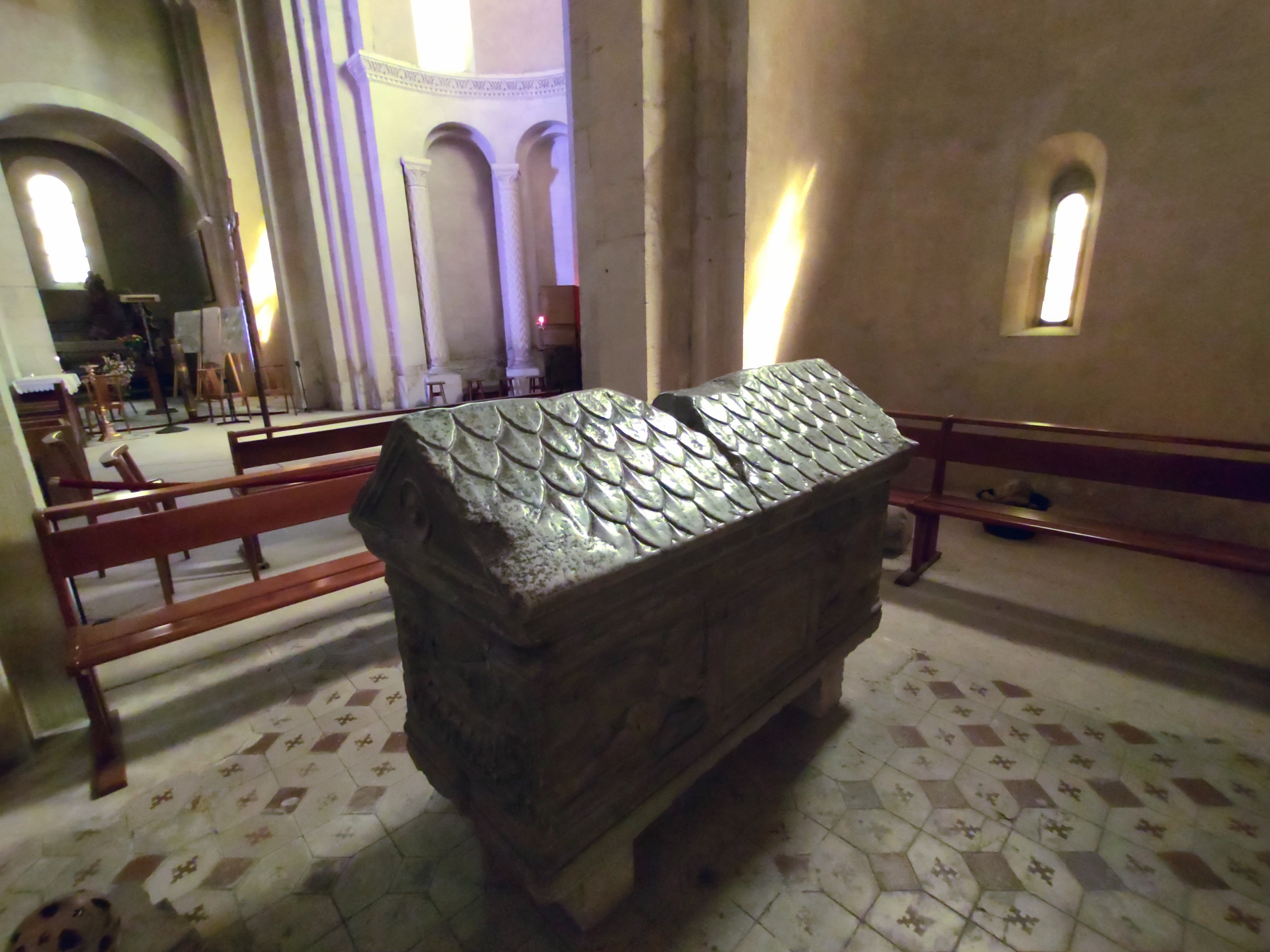 Très belle église avec un sarcophage chargé d'histoire