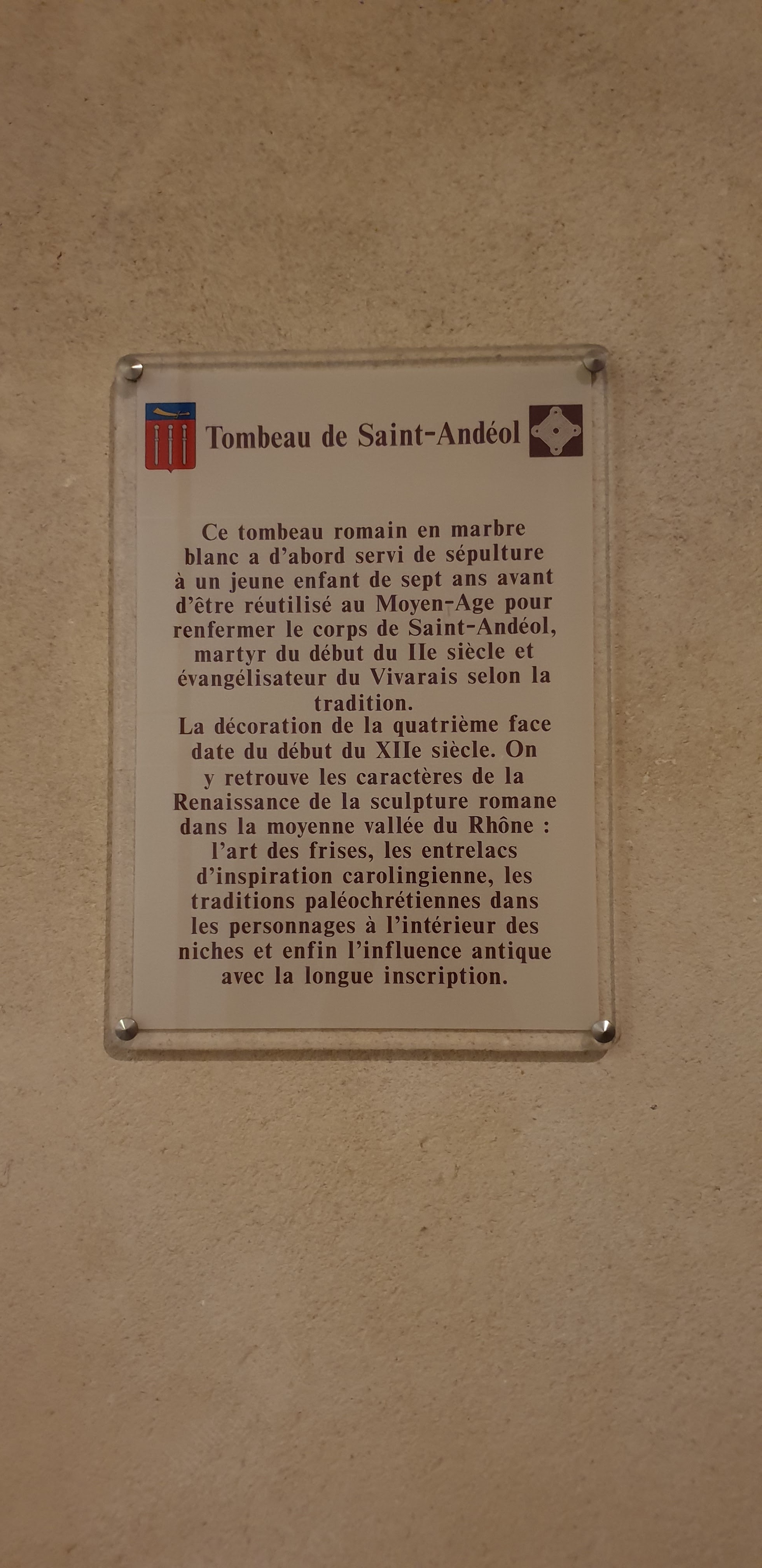 Une belle basilique de style roman du 8ème ou 9ème siècle. L'âge de l'église est impressionnant. A l'intérieur du tombeau de Saint Andéol, il fut baptisé au IIe ou IIIe siècle. Ce tombeau date du 9ème siècle. Visitez également le marché du mercredi matin...en été dans le centre du vieux Bourg..en hiver au bord du Rhône