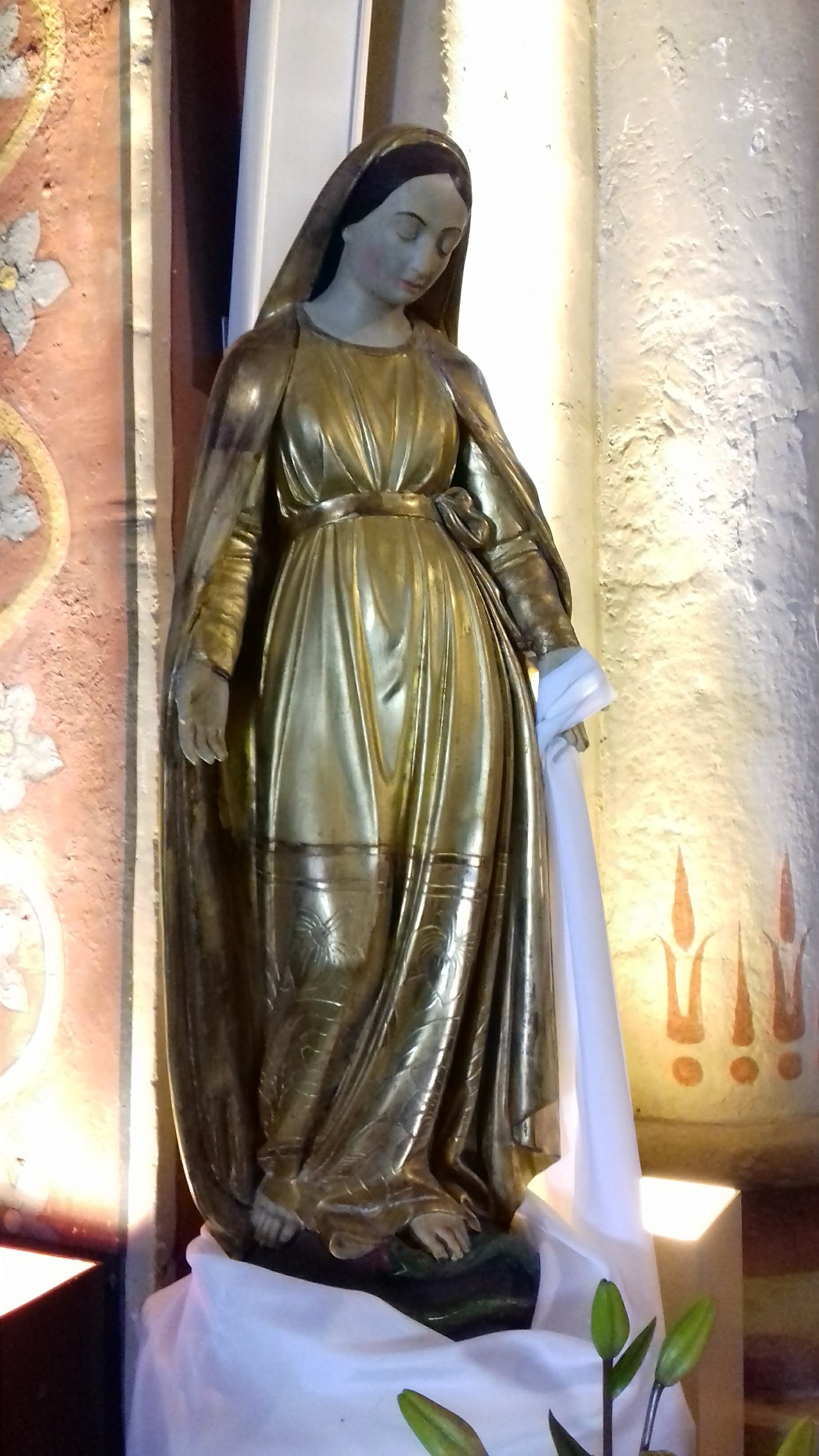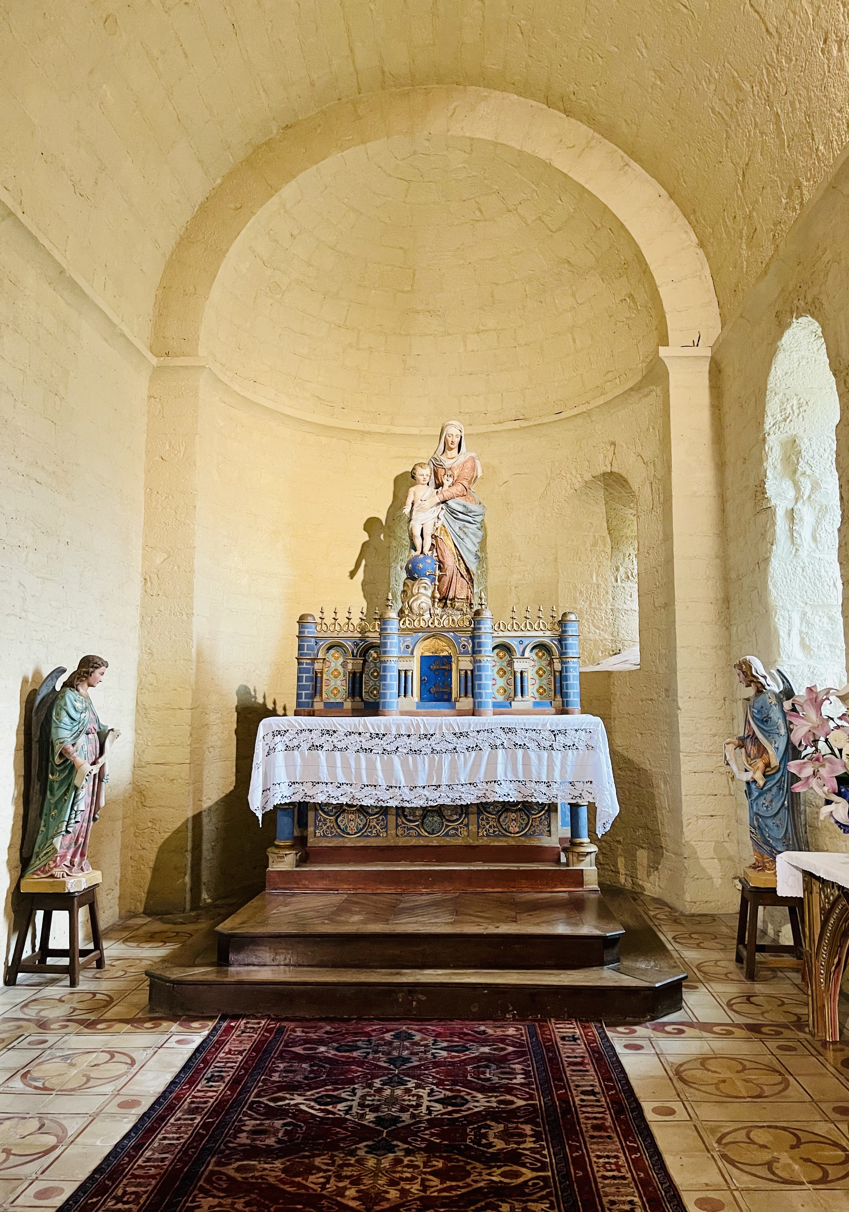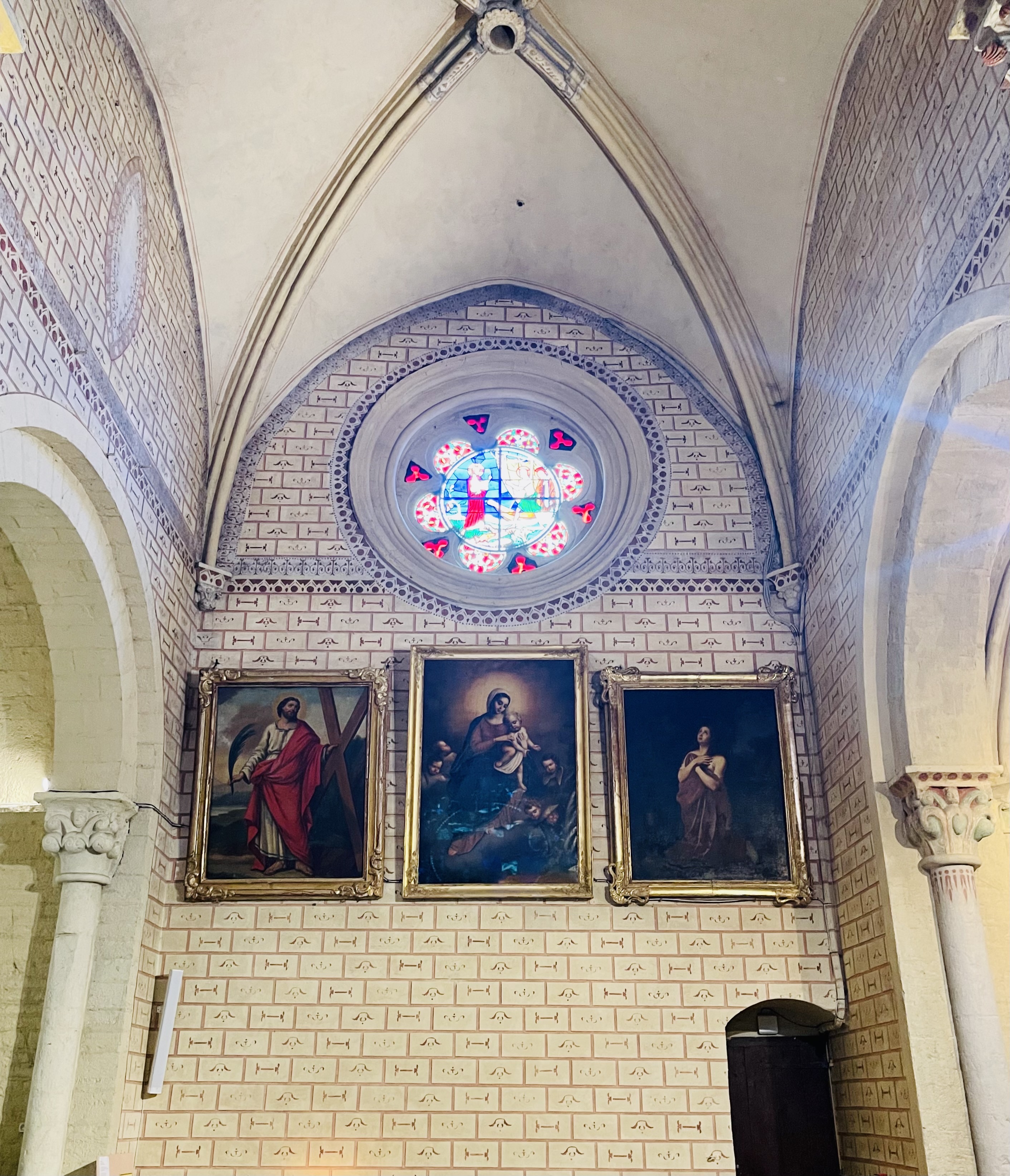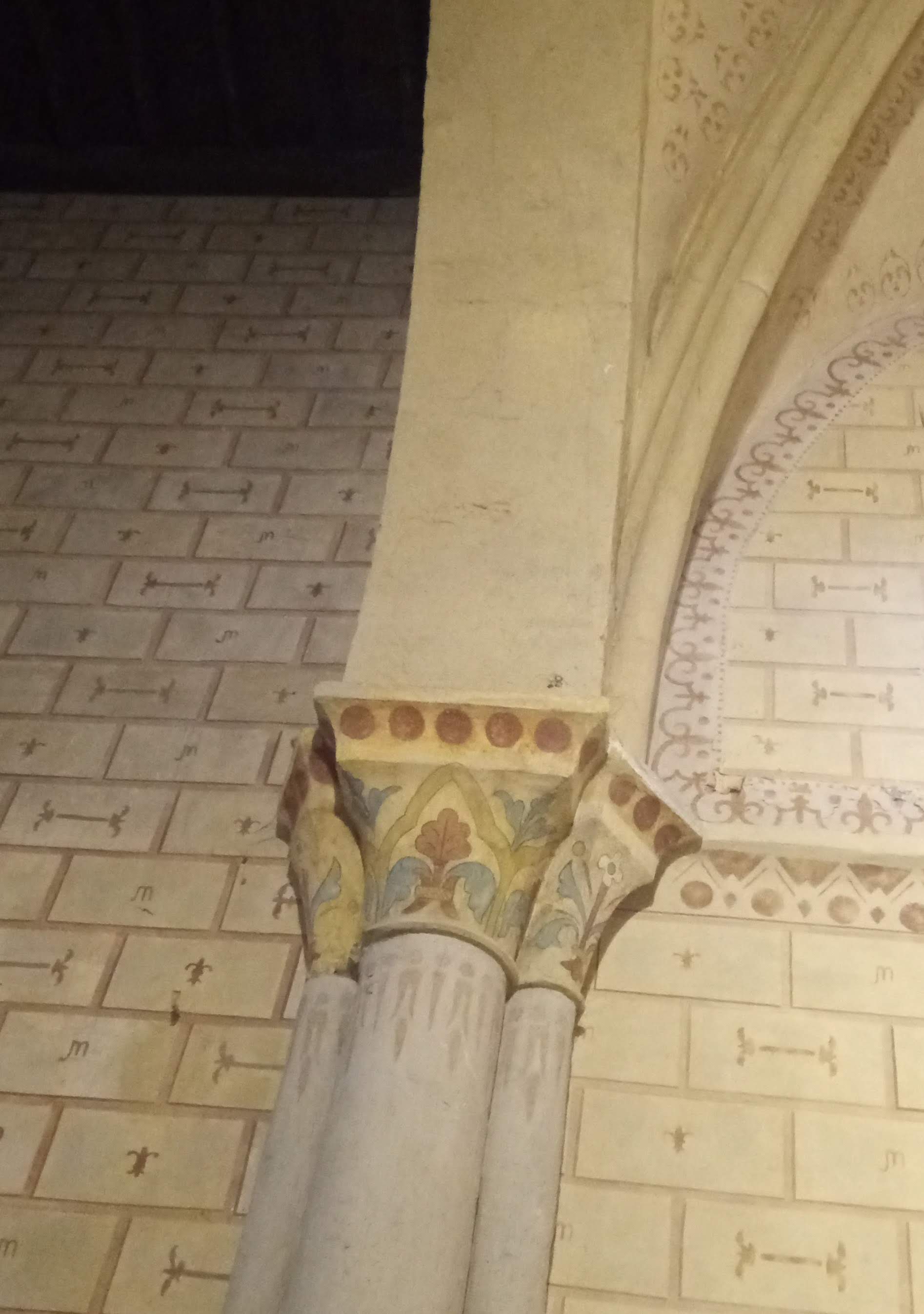 Église medievale de style original. Avec des essais intéressants de restauration de polychromie. Voir aussi des capitaux de colonnes originaux.