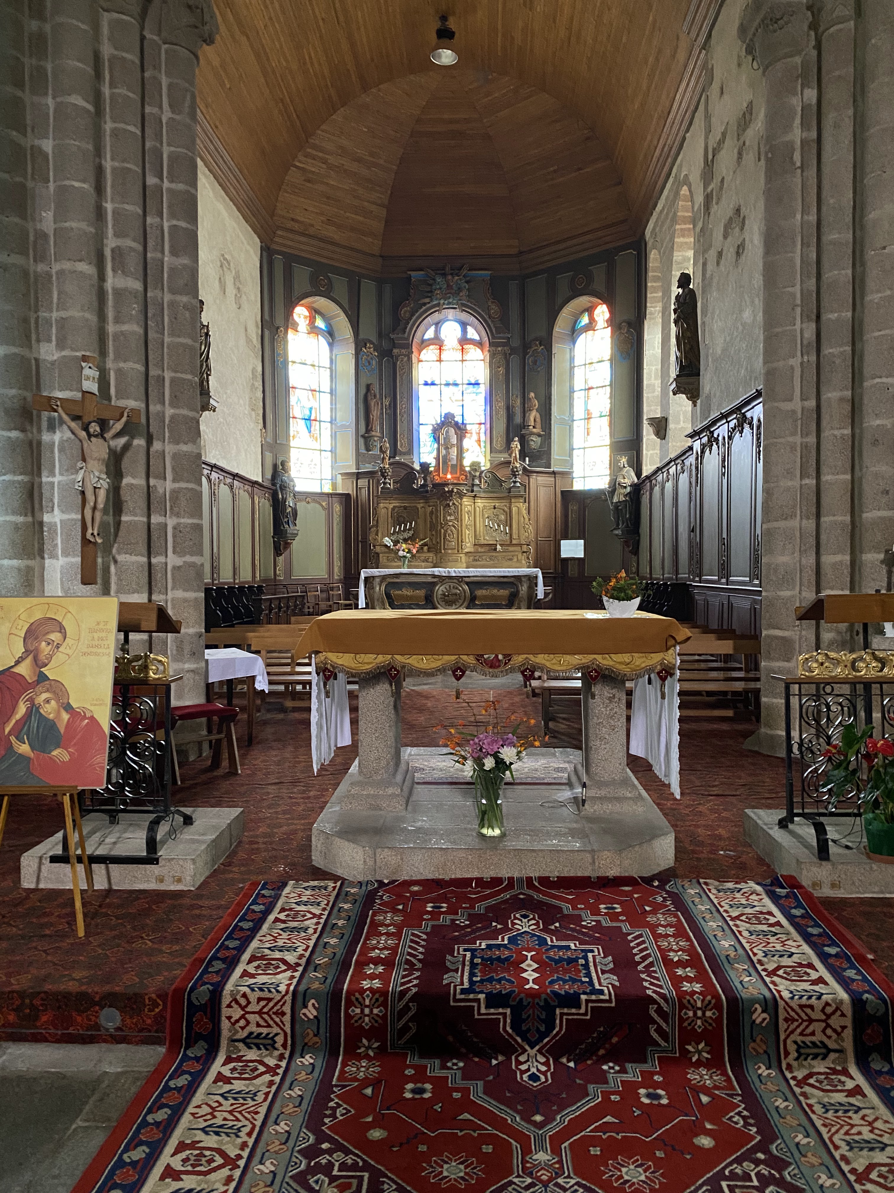 Très belle église en pierre et bois à l'intérieur à voir absolument