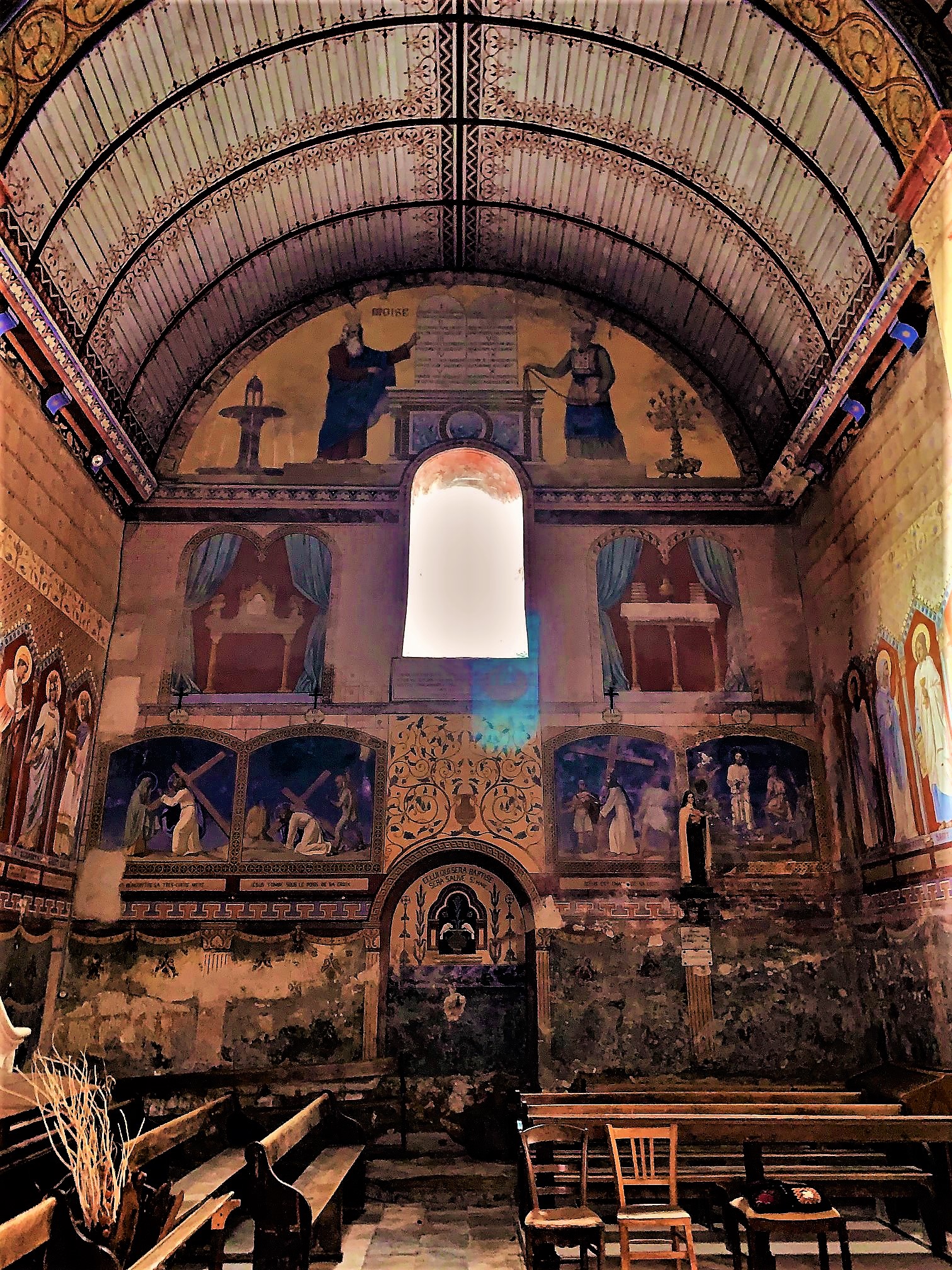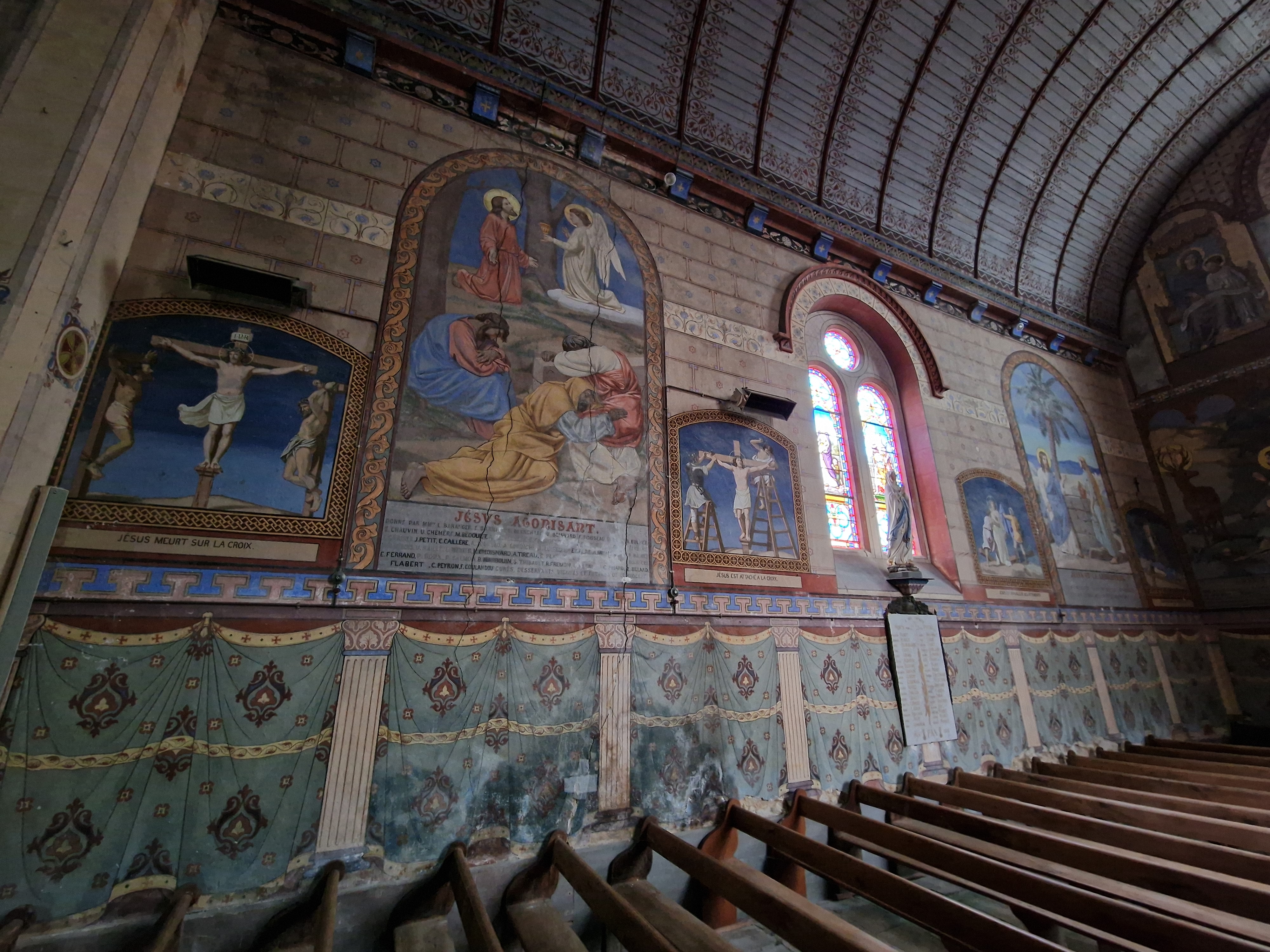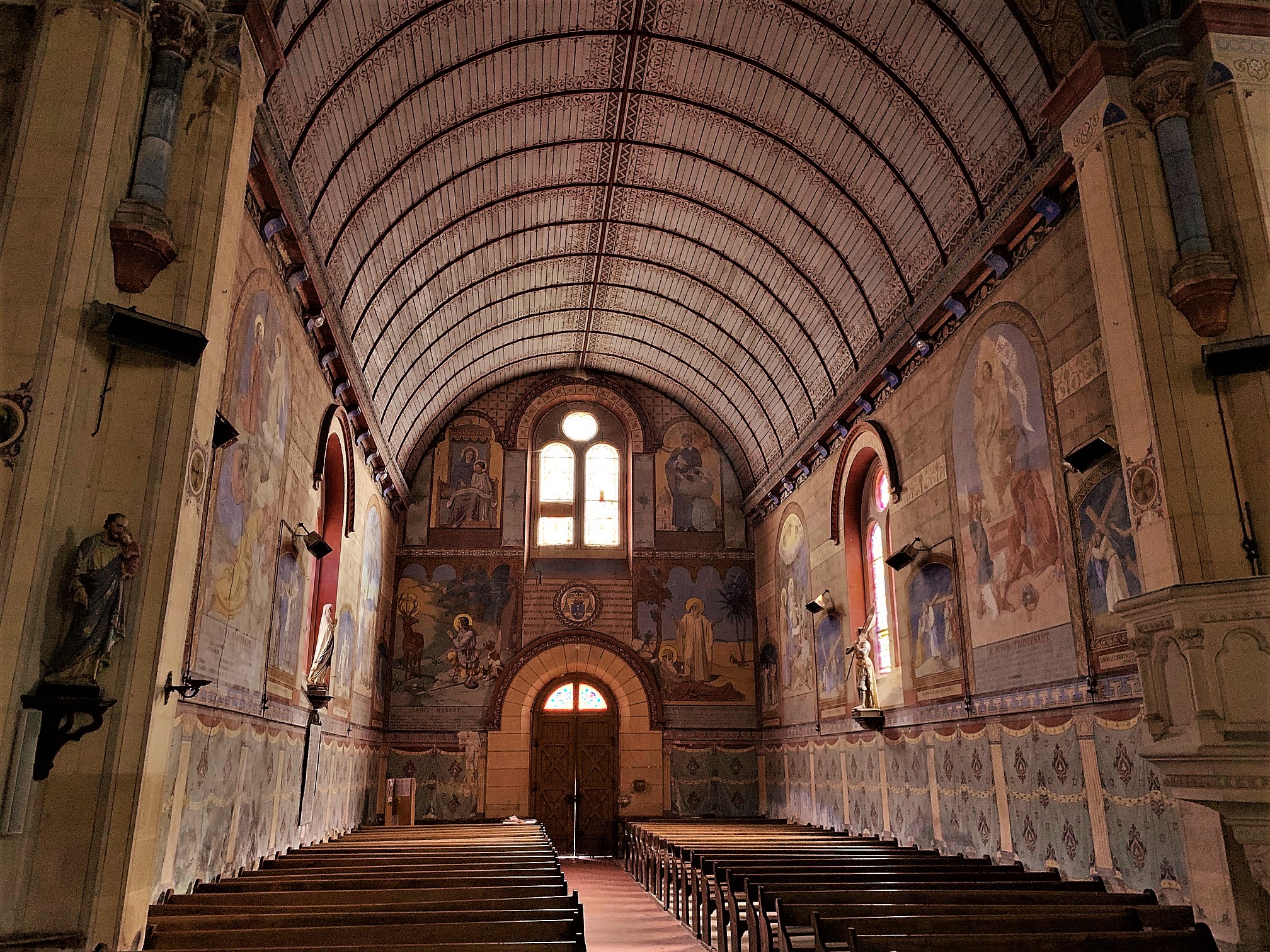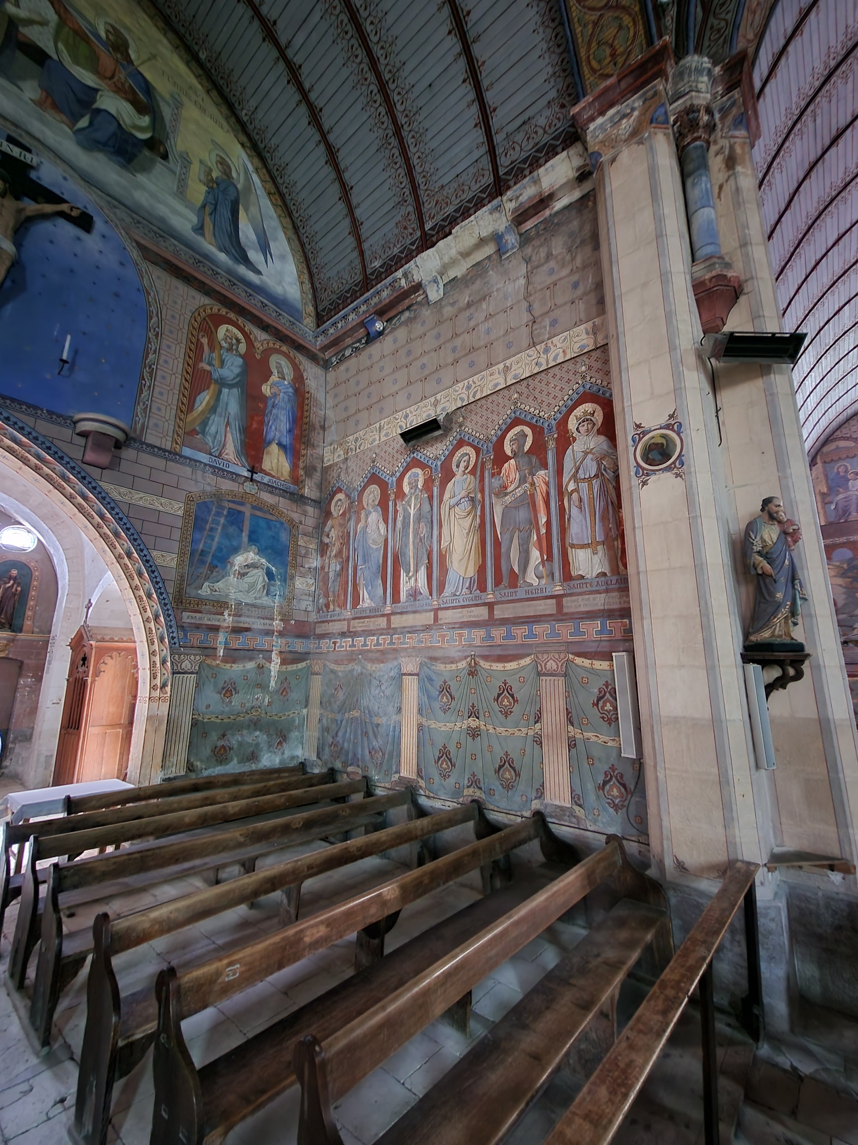 Église qui semble banale de l'extérieure mais qui cache un petit trésor. Dès que vous passerez le pas du seuil, vous découvrirez un décor exceptionnel. Tous les murs et plafond sont peints. Pour y pénétrer, allez prendre la clé au musée de la vannerie.