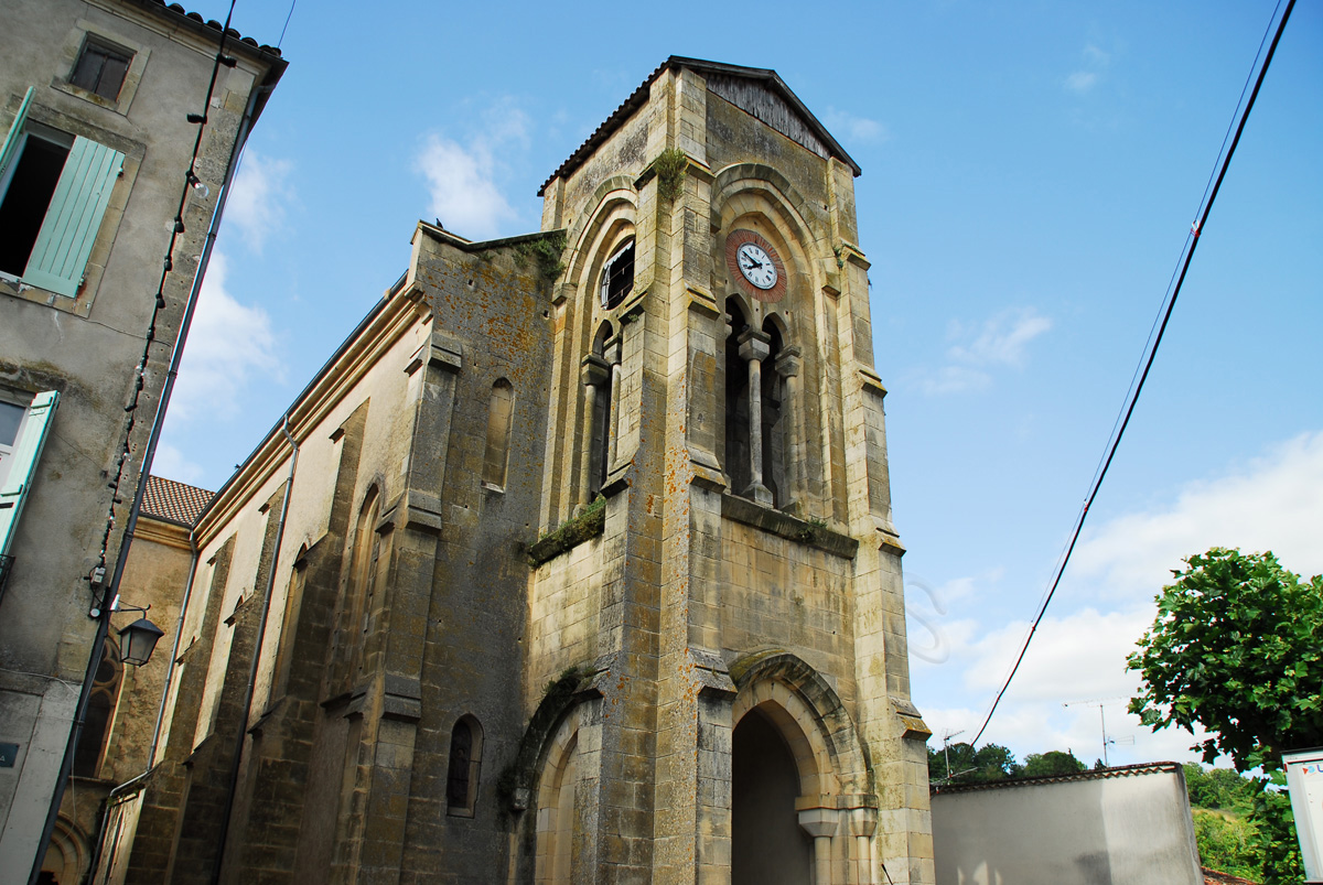 Sa construction remonte aux années 1250-1290 et elle constitua une partie importante de la défense de cette bastide, étant l'un de ses points forts. Les vitraux correspondent au XVIIème siècle. Les volutes furent remaniées en 1715 et les voûtes restaurées en 1864.